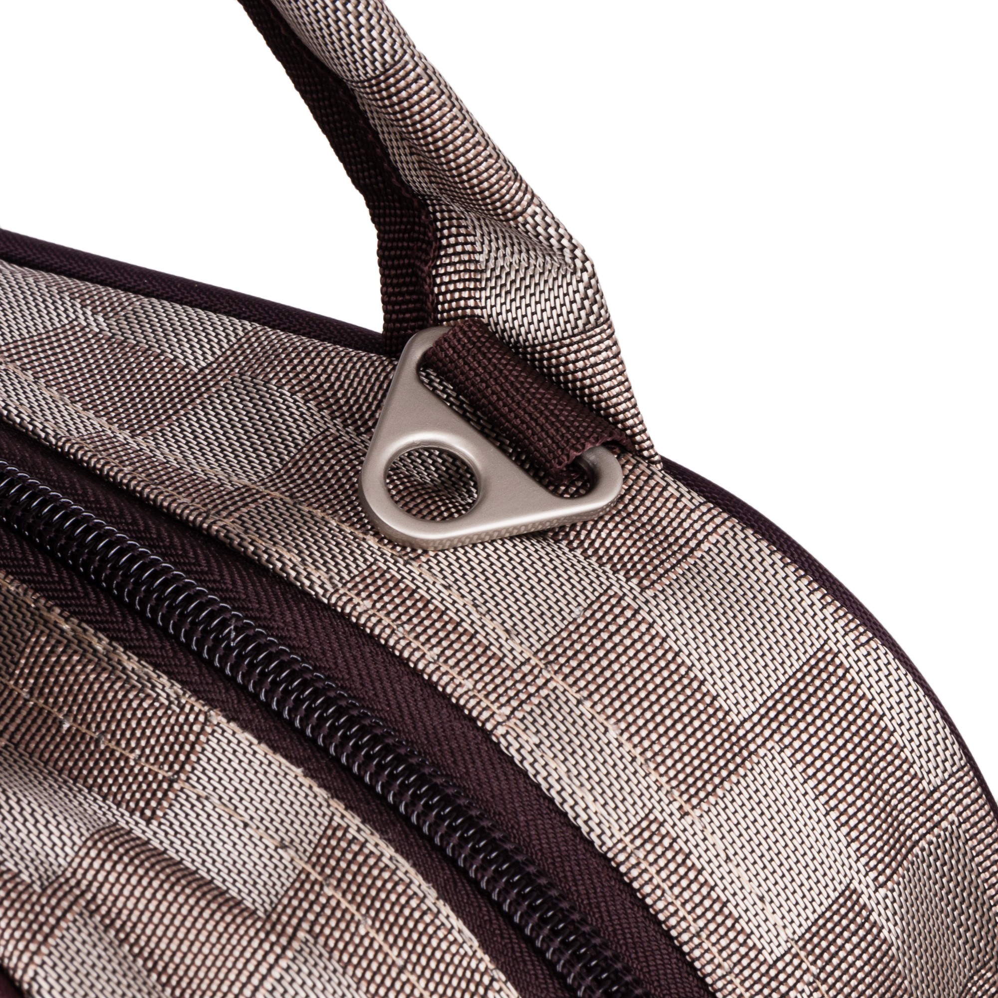 На задней стенке сумки предусмотрено крепление на ручку чемодана.