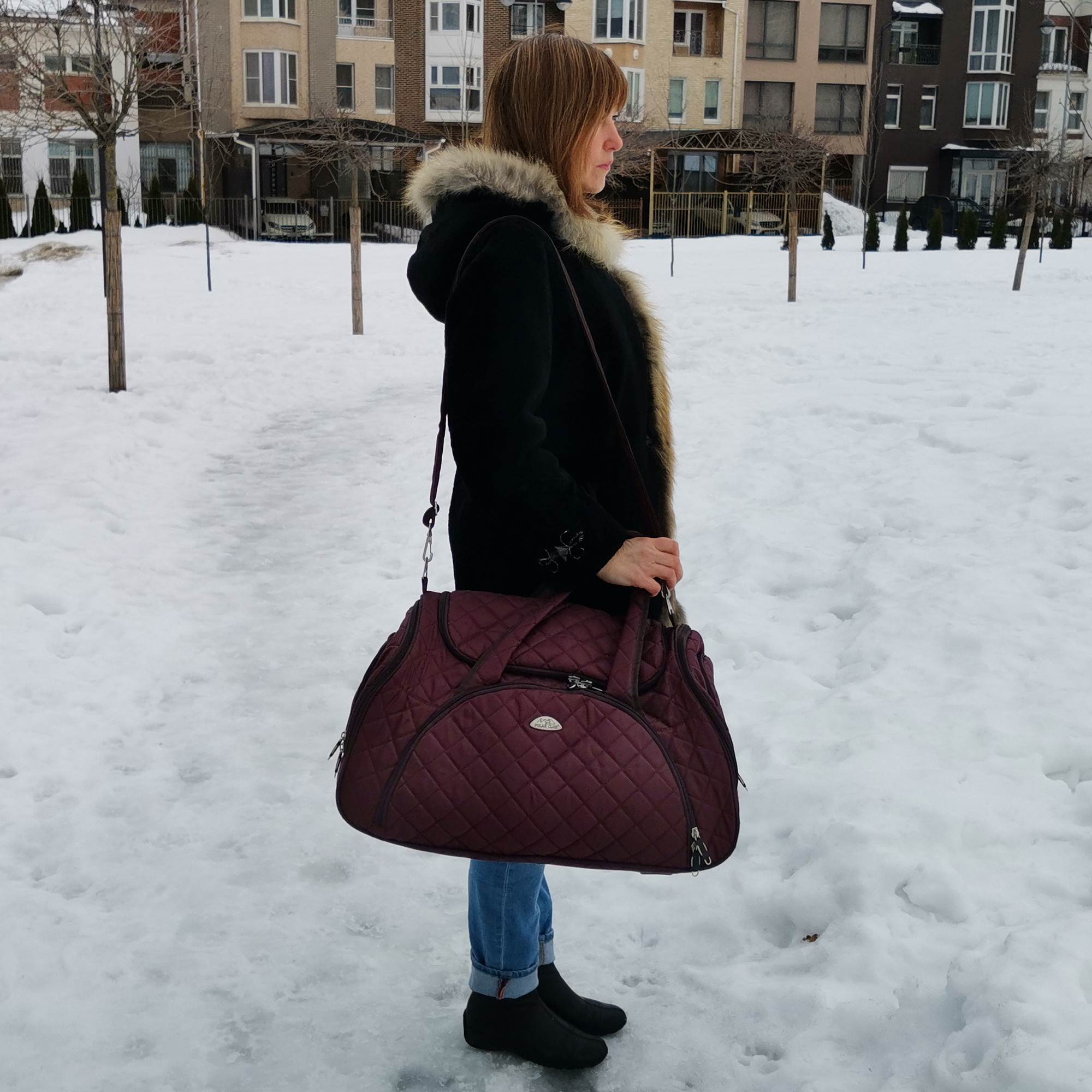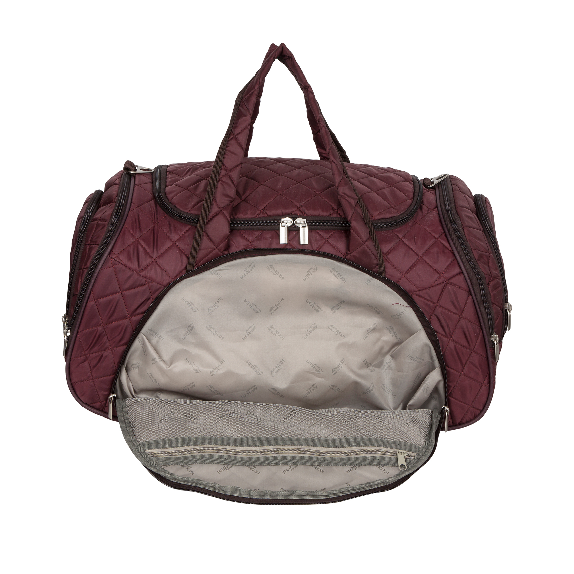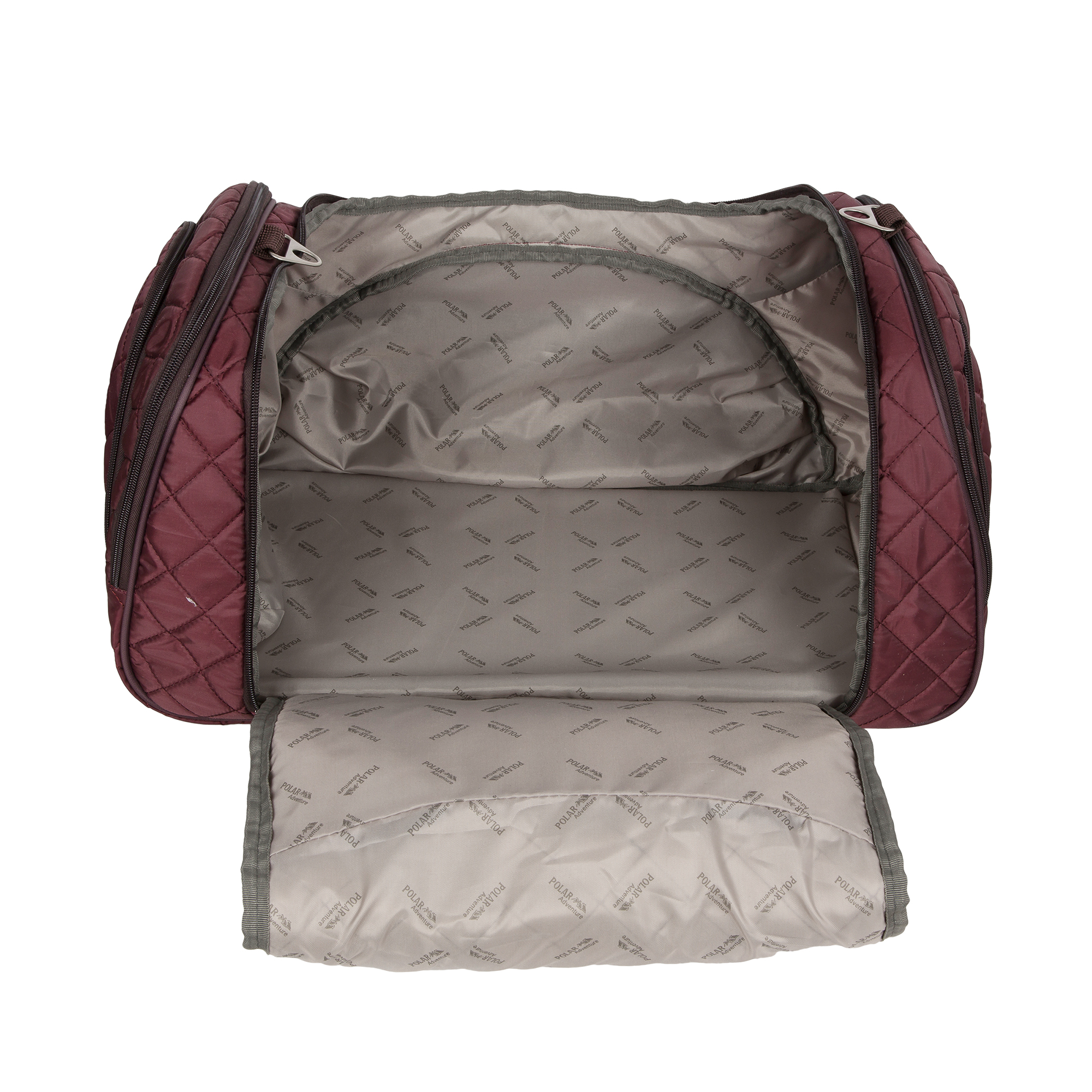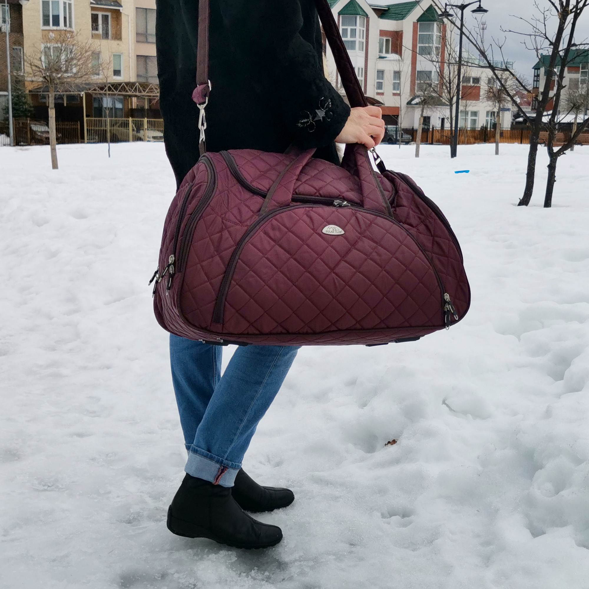 Вместительная и удобная дорожная сумка Polar . Материал - Стеганый Полиэстер с подложкой синтепона.Основное отделение закрывается на молнию. Один из боковых карманов предназначен для обуви. Дополнительно снаружи большой карман на молнии спереди сумки и небольшие карманы по бокам. Сумка имеет мягкую конструкцию. В комплекте регулируемый съемный плечевой ремень.