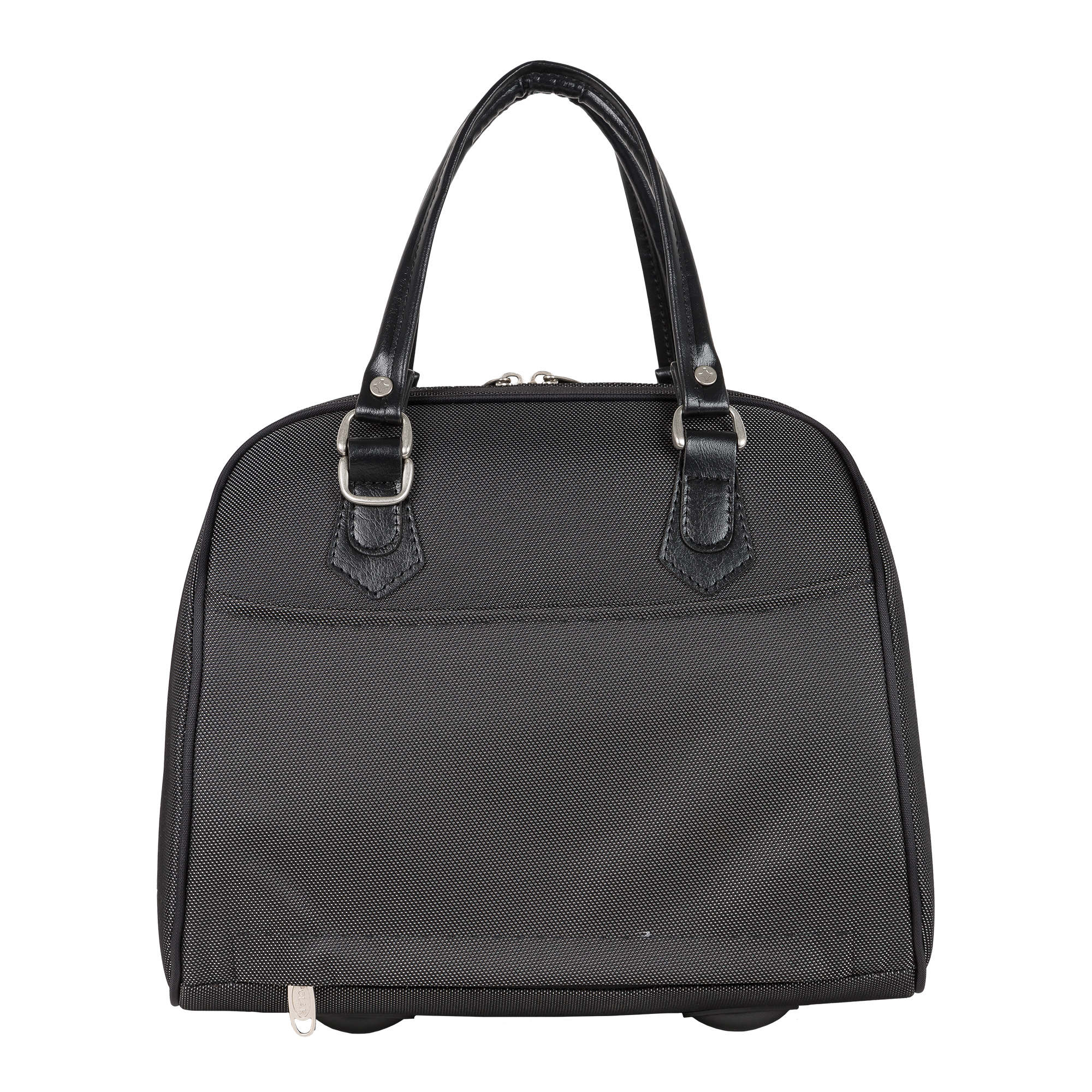 На задней стенке сумки предусмотрено крепление на ручку чемодана, но если вы застегнете молнию, то получите дополнительный карман.