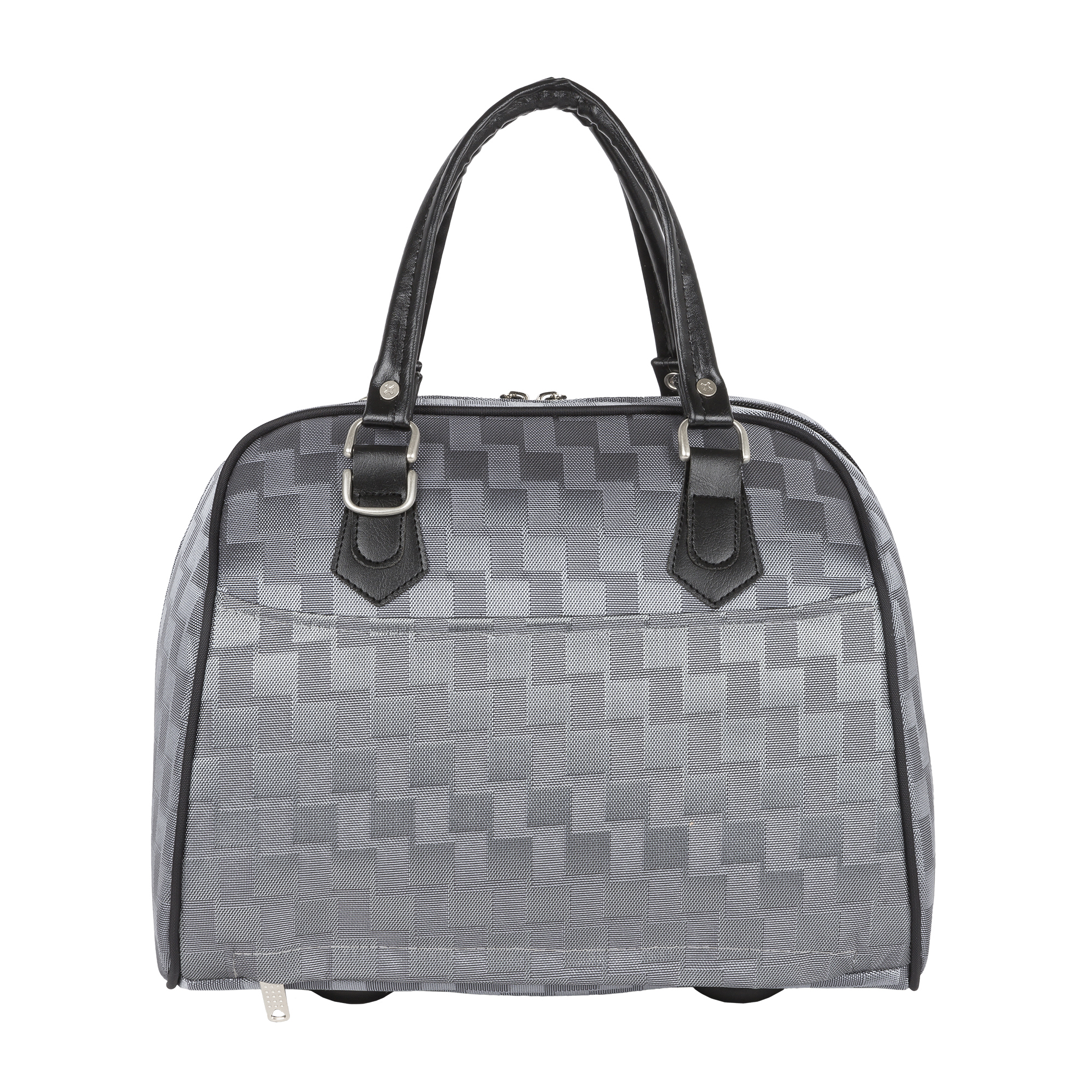 На задней стенке сумки предусмотрено крепление на ручку чемодана, но если вы застегнете молнию, то получите дополнительный карман.