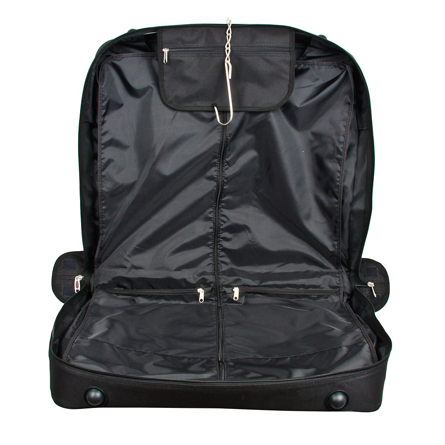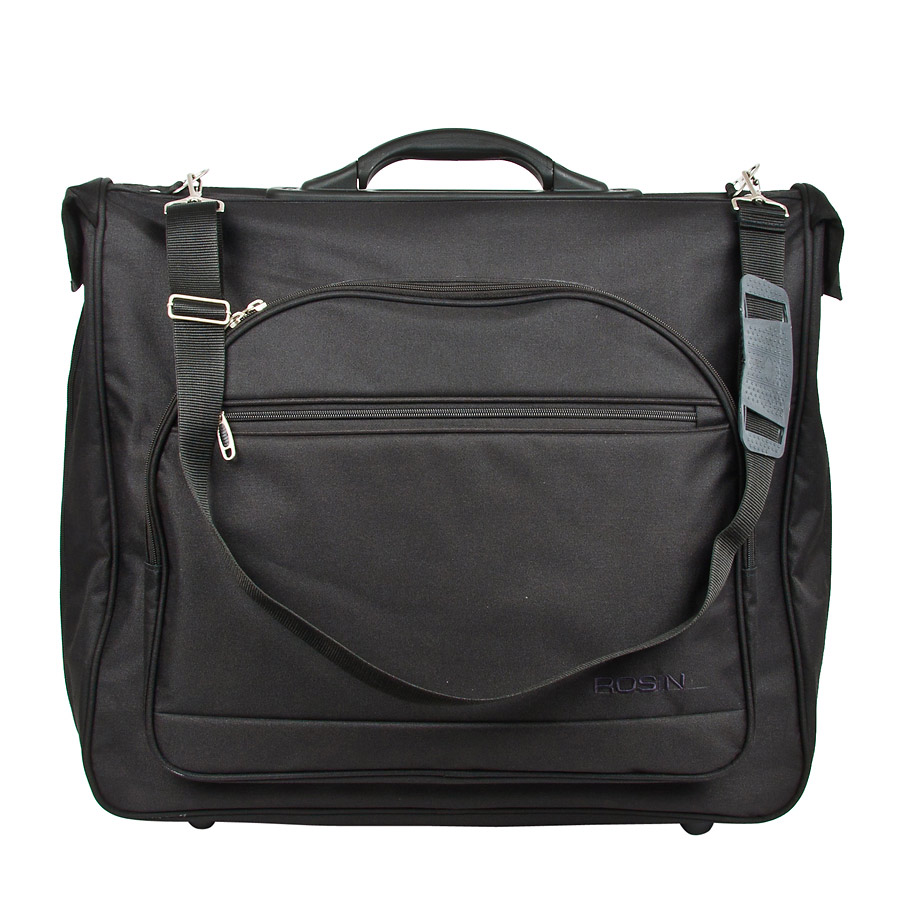 Портплед фирмы Rosin. Материал - капровинил. Удобен для перевозки деловых костюмов в командировке. Это гарантия того, что ваш костюм прибудет в место назначения не только в целости и сохранности, но и сохранит свой презентабельный вид - не помнется и не испачкается. Основной отдел в форме чехла с вешалкой. Внутри - три маленьких кармашка для мелких принадлежностей. Снаружи, на передней части портпледа, имеются объёмный и плоский карманы на молнии. Снабжен плечевым ремнем и ручкой для переноски. Есть крючек для хранения портпледа в шкафу.
