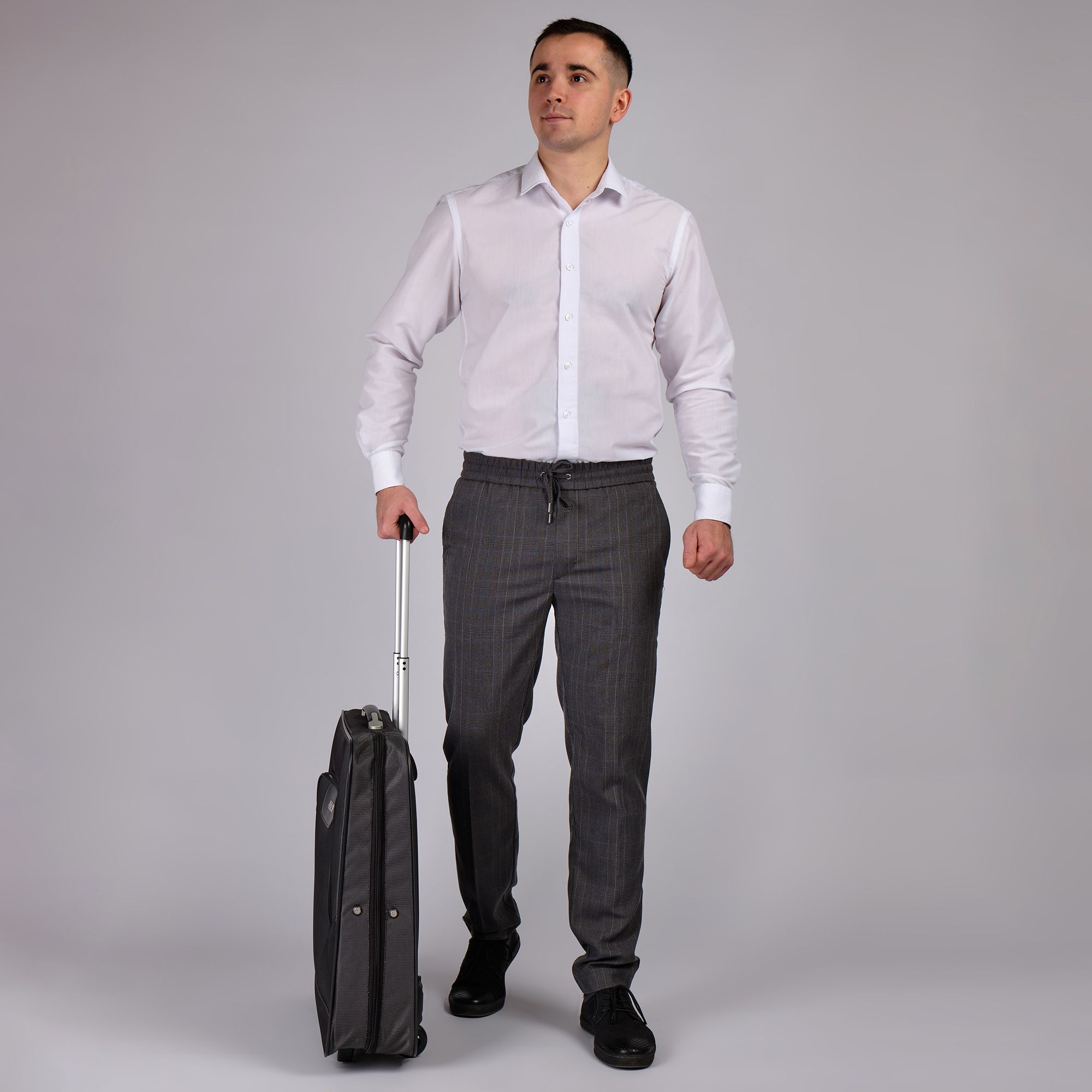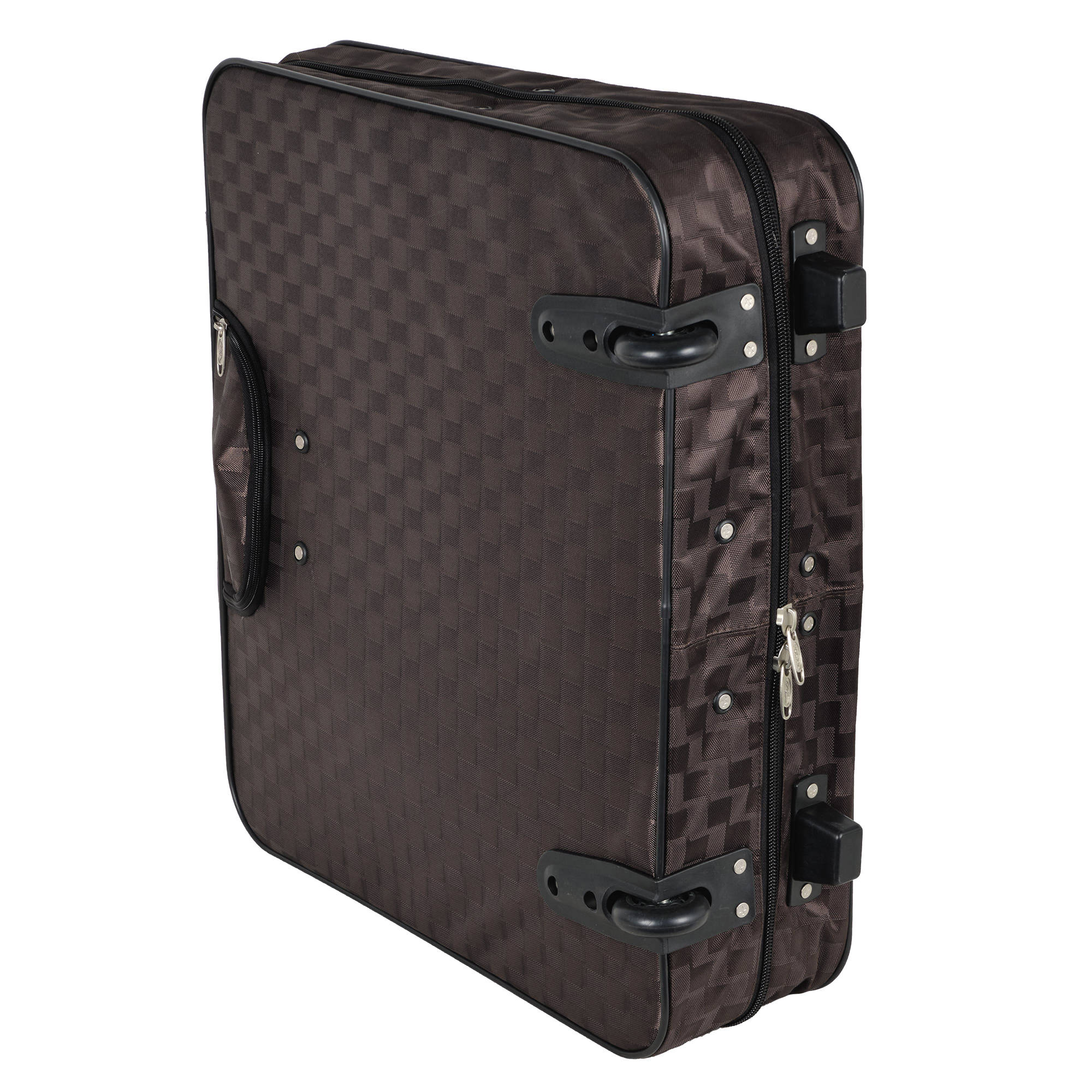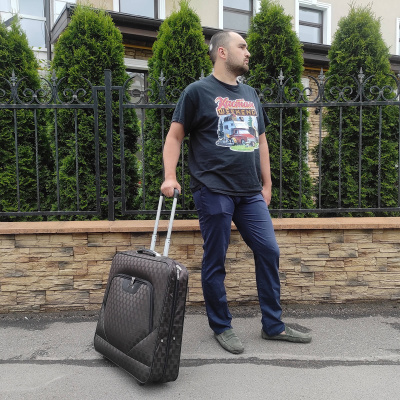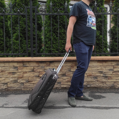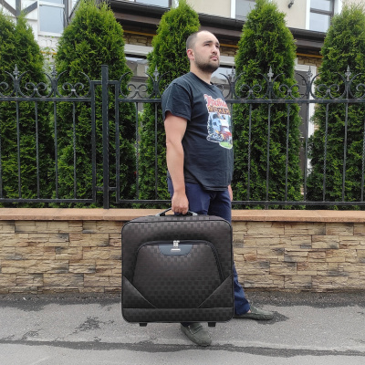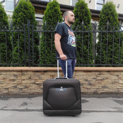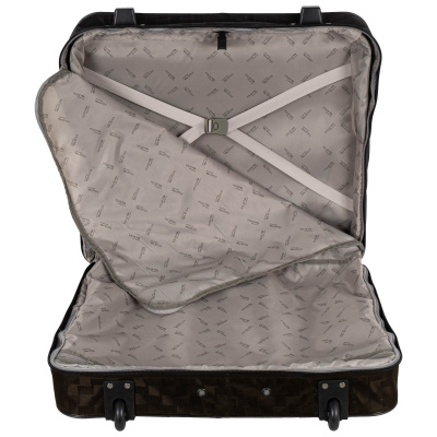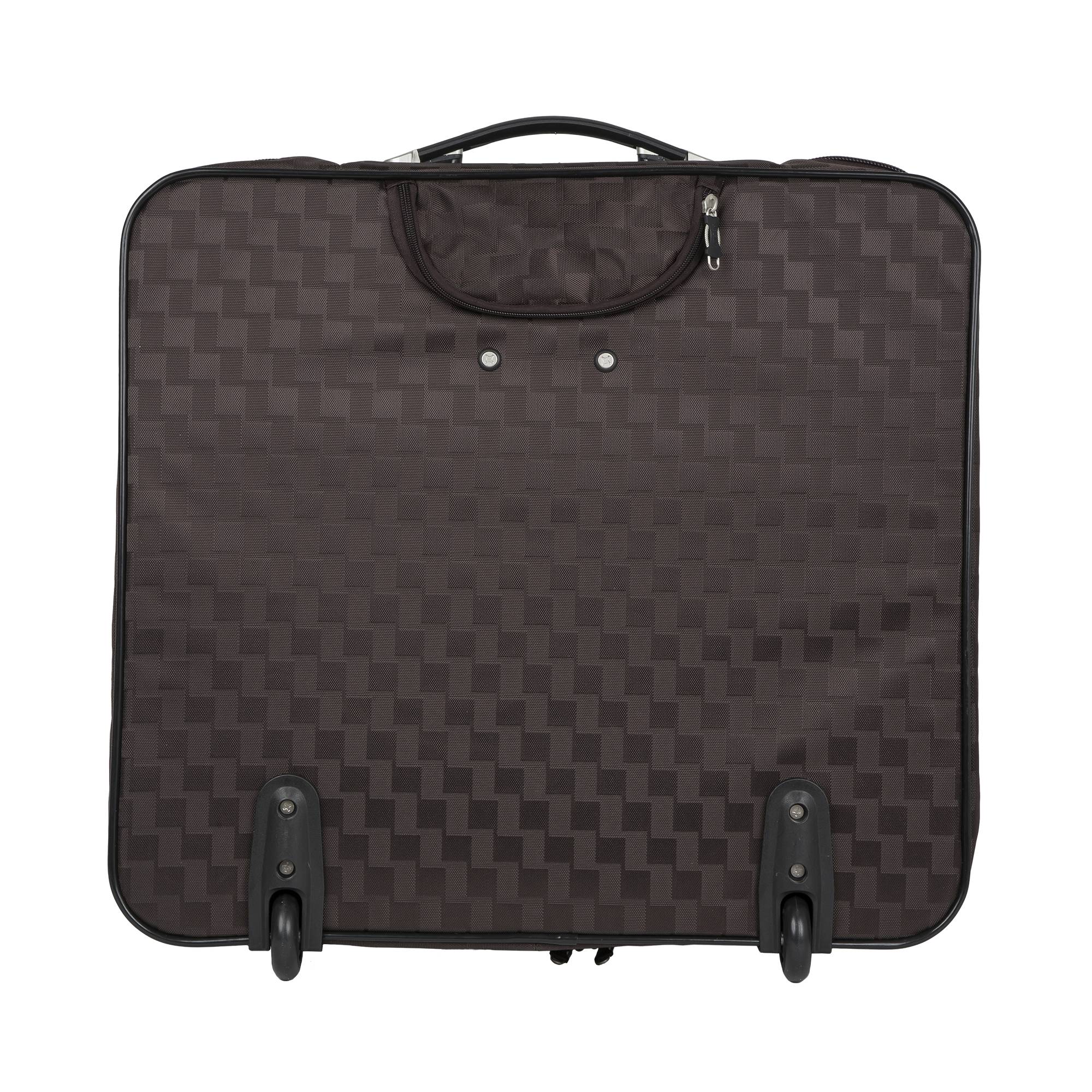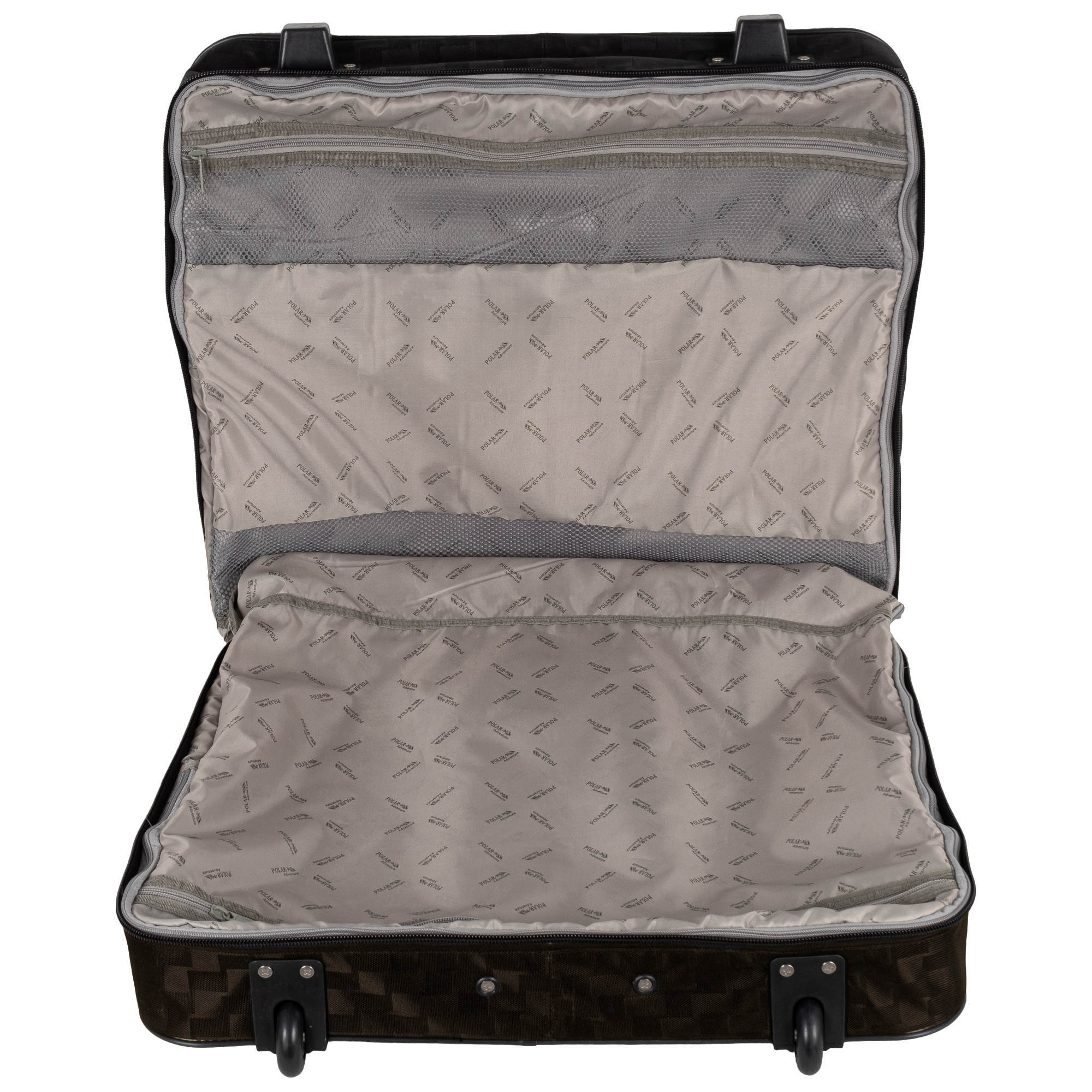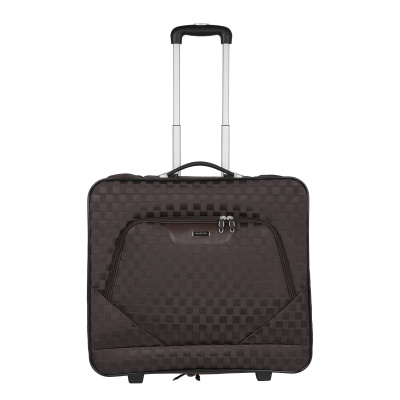 Портплед фирмы Polar на двух колёсах выполнен из полиэстера и предназначен для перевозки деловых костюмов в командировке. Портплед состоит из основного отделения в форме чехла , внутри основного отделения расположен фиксатор багажа. Снаружи, на передней части портпледа, имеется объёмный накладной карман на молнии. У портпледа есть две ручки (ручка для переноски и выдвижная ручка для перевозки, максимальная высота которой составляет 48см, а также крючок для хранения портпледа в шкафу).