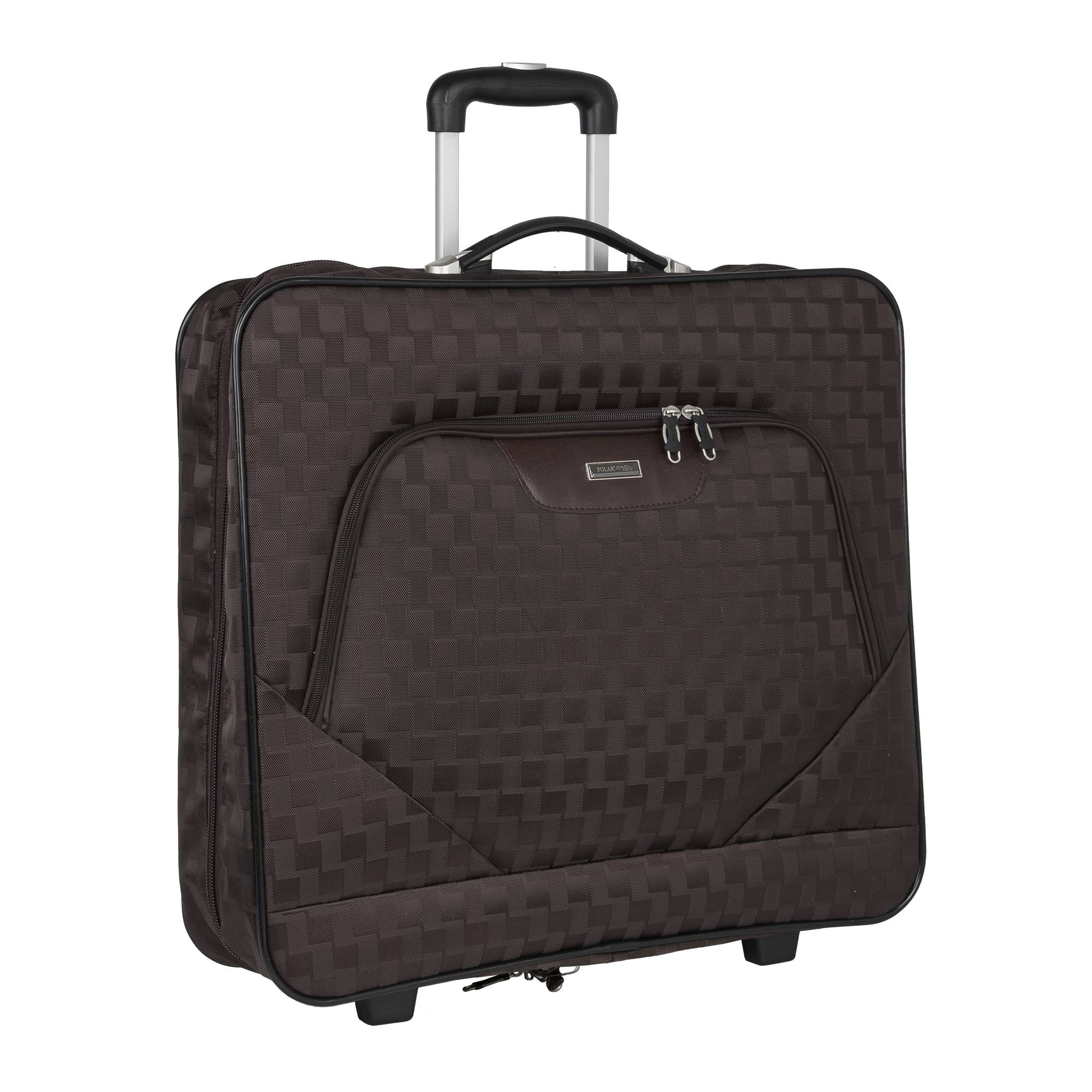 Портплед фирмы Polar на двух колёсах выполнен из полиэстера и предназначен для перевозки деловых костюмов в командировке. Портплед состоит из основного отделения в форме чехла , внутри основного отделения расположен фиксатор багажа. Снаружи, на передней части портпледа, имеется объёмный накладной карман на молнии. У портпледа есть две ручки (ручка для переноски и выдвижная ручка для перевозки, максимальная высота которой составляет 48см, а также крючок для хранения портпледа в шкафу).