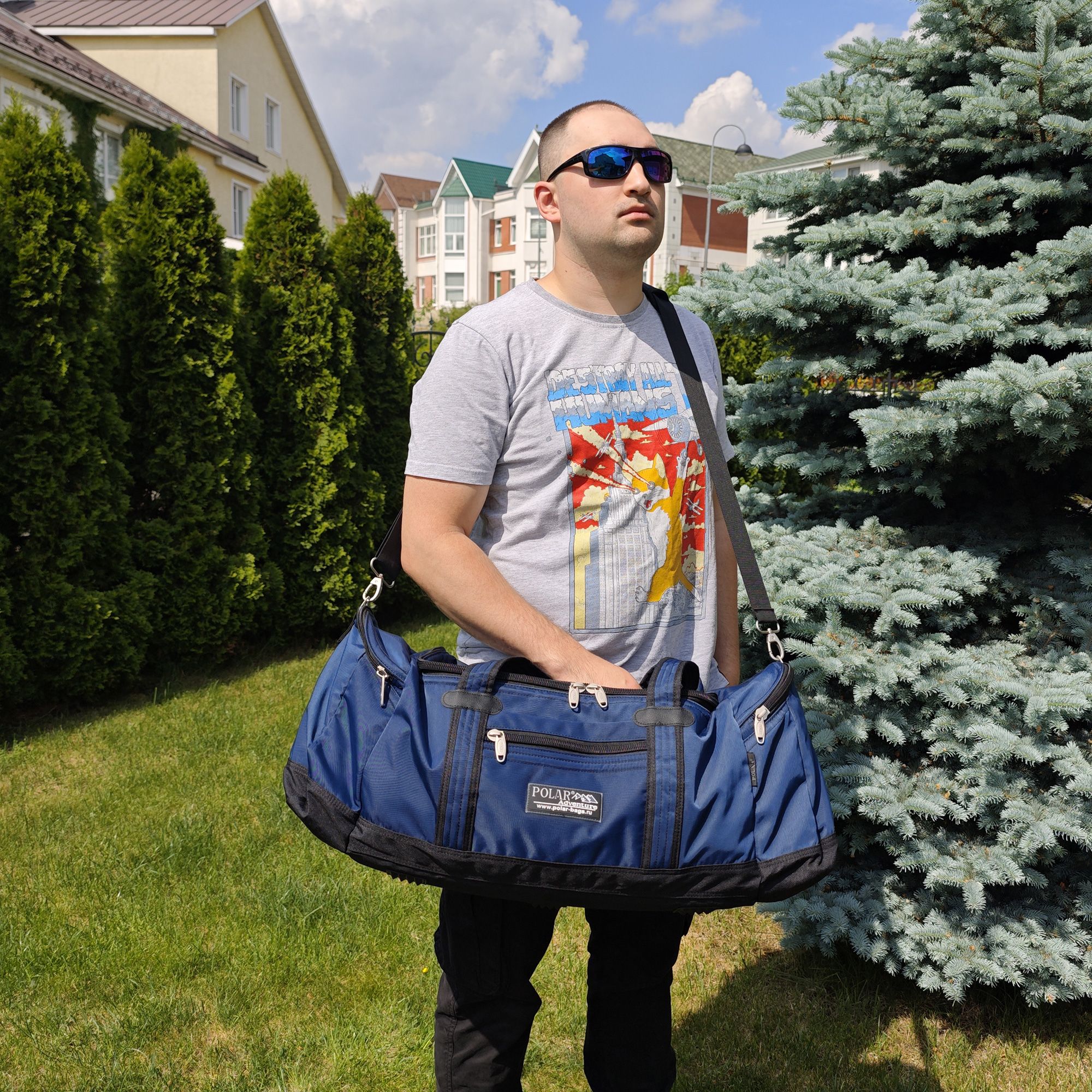 Спортивная сумка фирмы Polar. Большое отделение для Ваших вещей. Внутри - кармашек на молнии под документы. Снаружи - два кармашка на молнии по бокам сумки. Один карман на молнии спереди сумки. Имеется плечевой ремень.