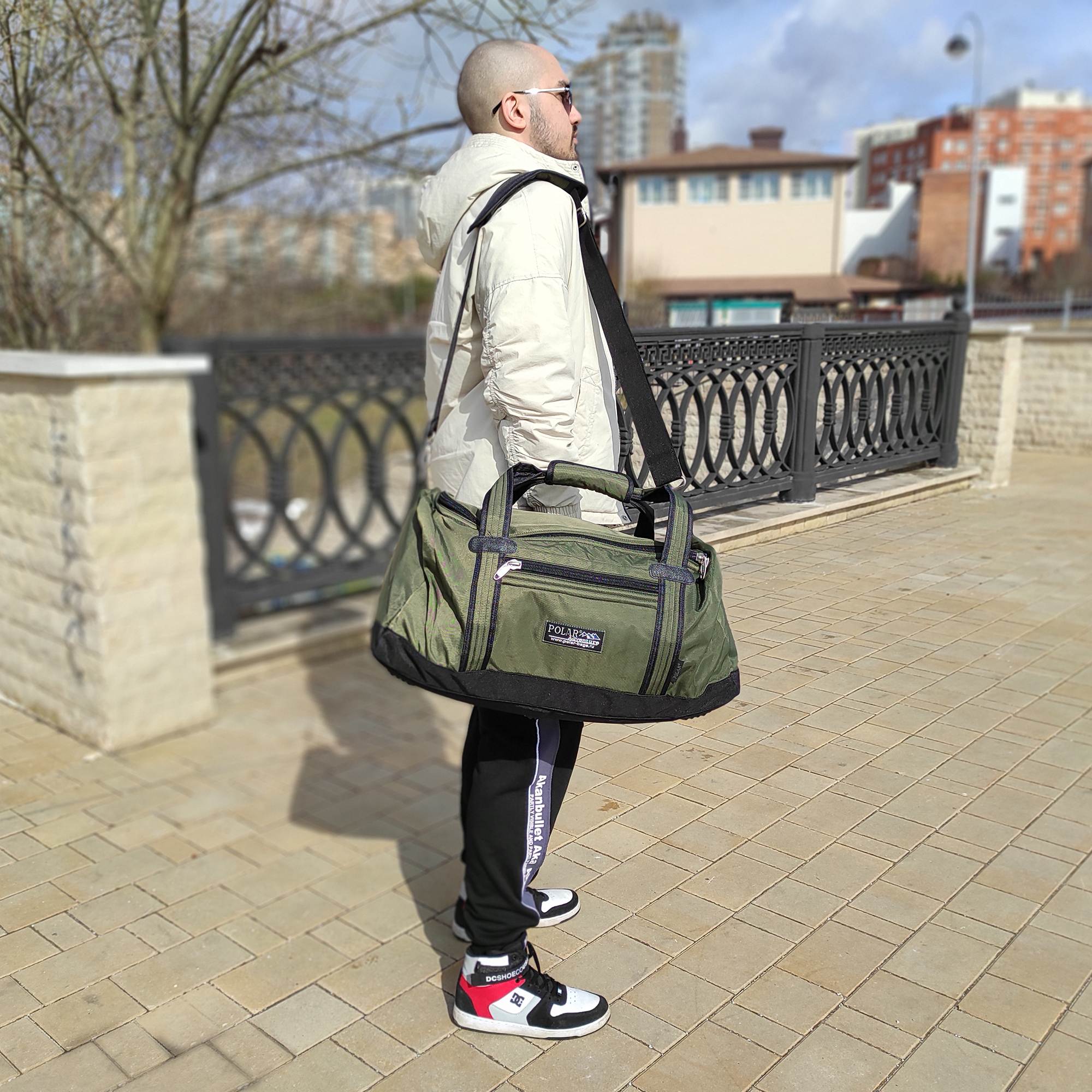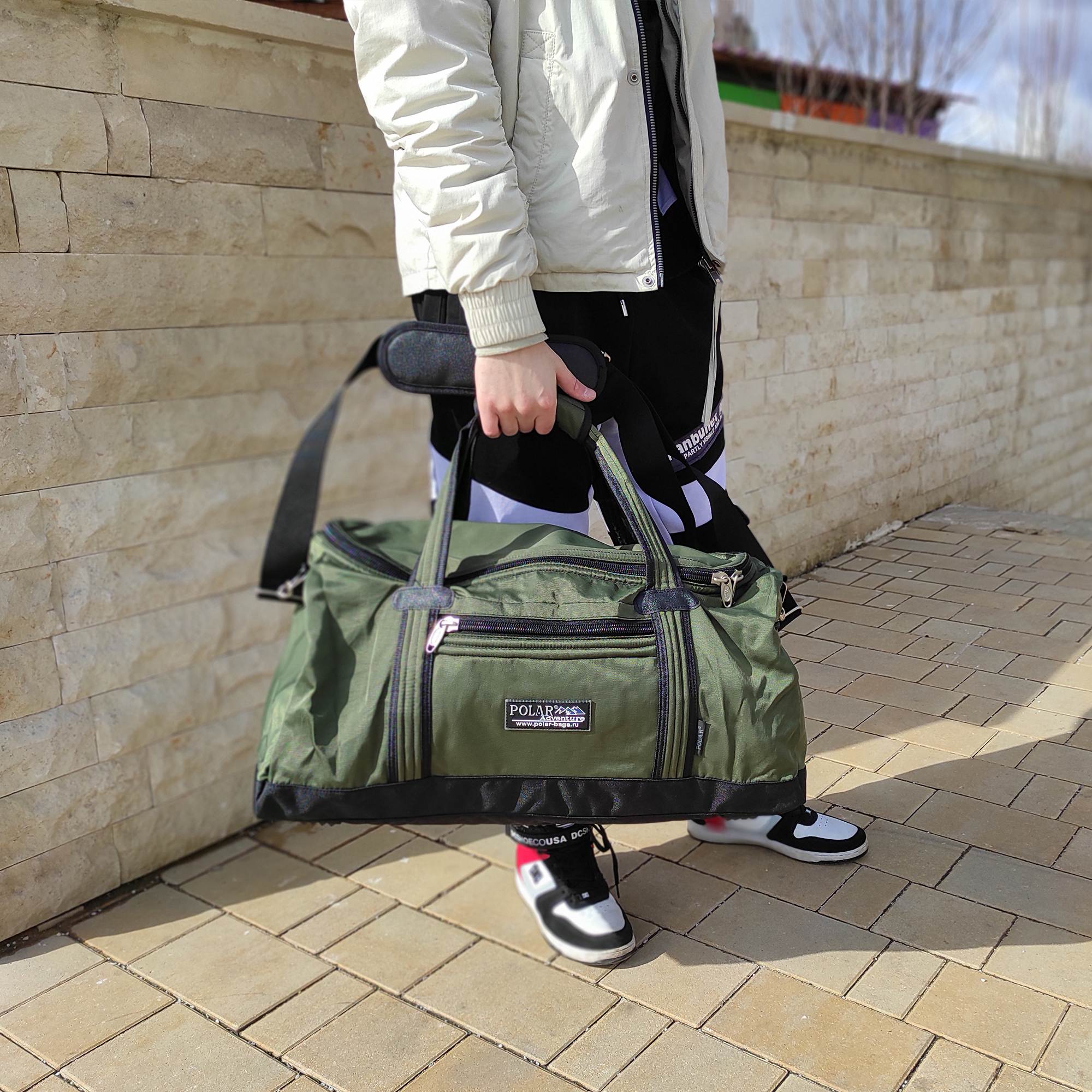 Спортивная сумка для ваших вещей фирмы Polar. Материал- полиэстер с водоотталкивающим покрытием. Большое основное отделение для Ваших вещей. Карман на молнии спереди сумки и сбоку. Имеется плечевой ремень.