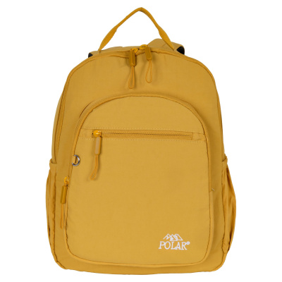 Городской рюкзак фирмы Polar выполнен из полиэстера. Рюкзак состоит из основного отделения, предназначенного для стандартного ежедневного набора вещей, состоящего из кошелька, документов, мобильного, телефона, очков и ключей, внутри основного отделения есть два открытых кармашка и карман на молнии. Отделение рюкзак свободно вмещает формат А4. Спереди накладной карман на молнии. По бокам расположены два открытых кармана на резинке. Лямки регулируются по длине 90 см. Сверху расположена ручка высотой 7 см.