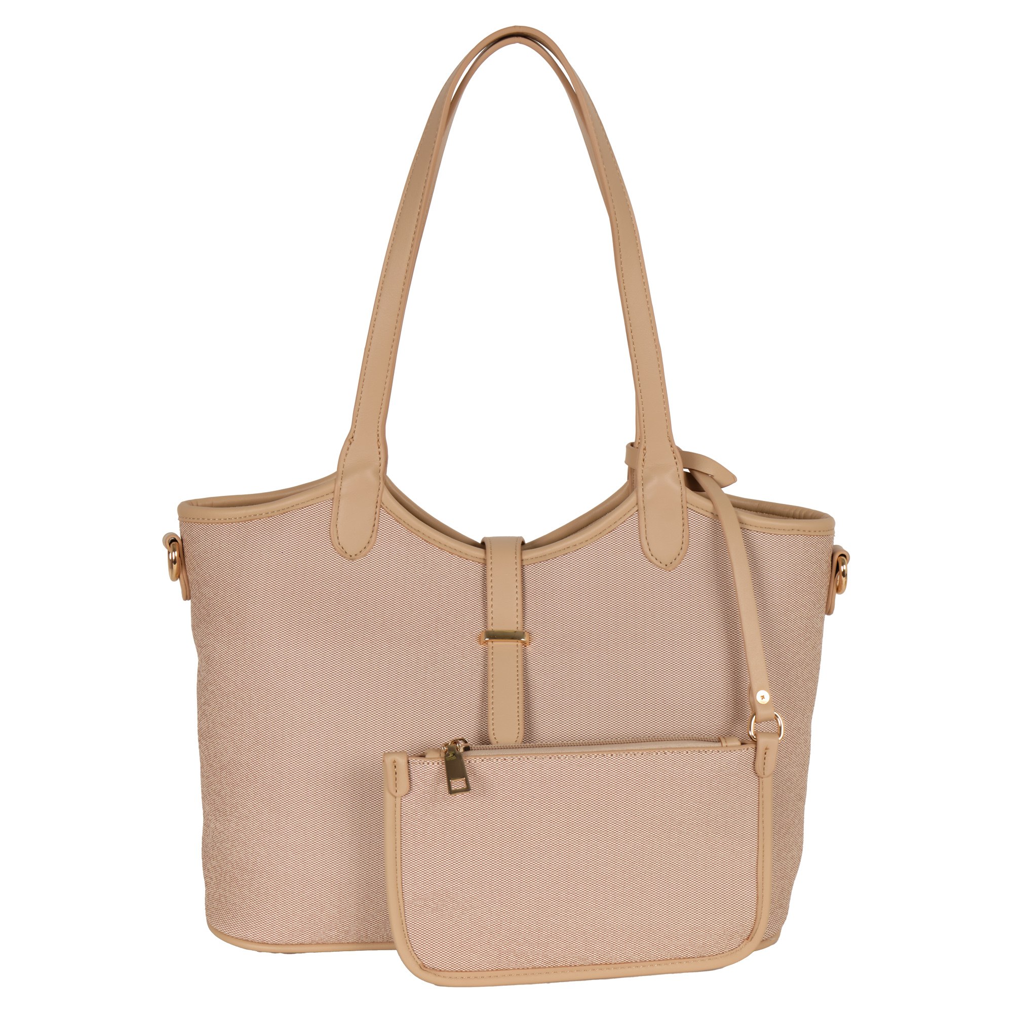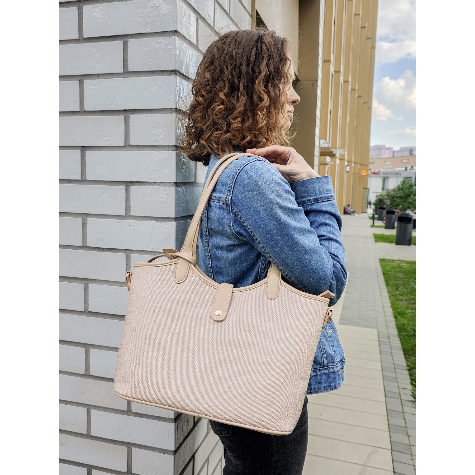Женская сумка фирмы Pola выполнена из экокожи (канвас). К сумке дополнительно идет косметичка. Эта сумка является идеальным выбором для тех, кто ценит комфорт и практичность. Она станет незаменимым аксессуаром для повседневной жизни, позволит вам всегда иметь при себе все необходимое. Основное отделение закрывается на магнитную кнопку и молнию. Внутри основное отделение разделено карманом на молнии и дополнительно маленький карман на молнии и открытый карман. Вмещает формат А4. Максимальная длина съемного регулируемого ремня составляет 136 см, высота ручки 30 см. Цвет фурнитуры-золото.