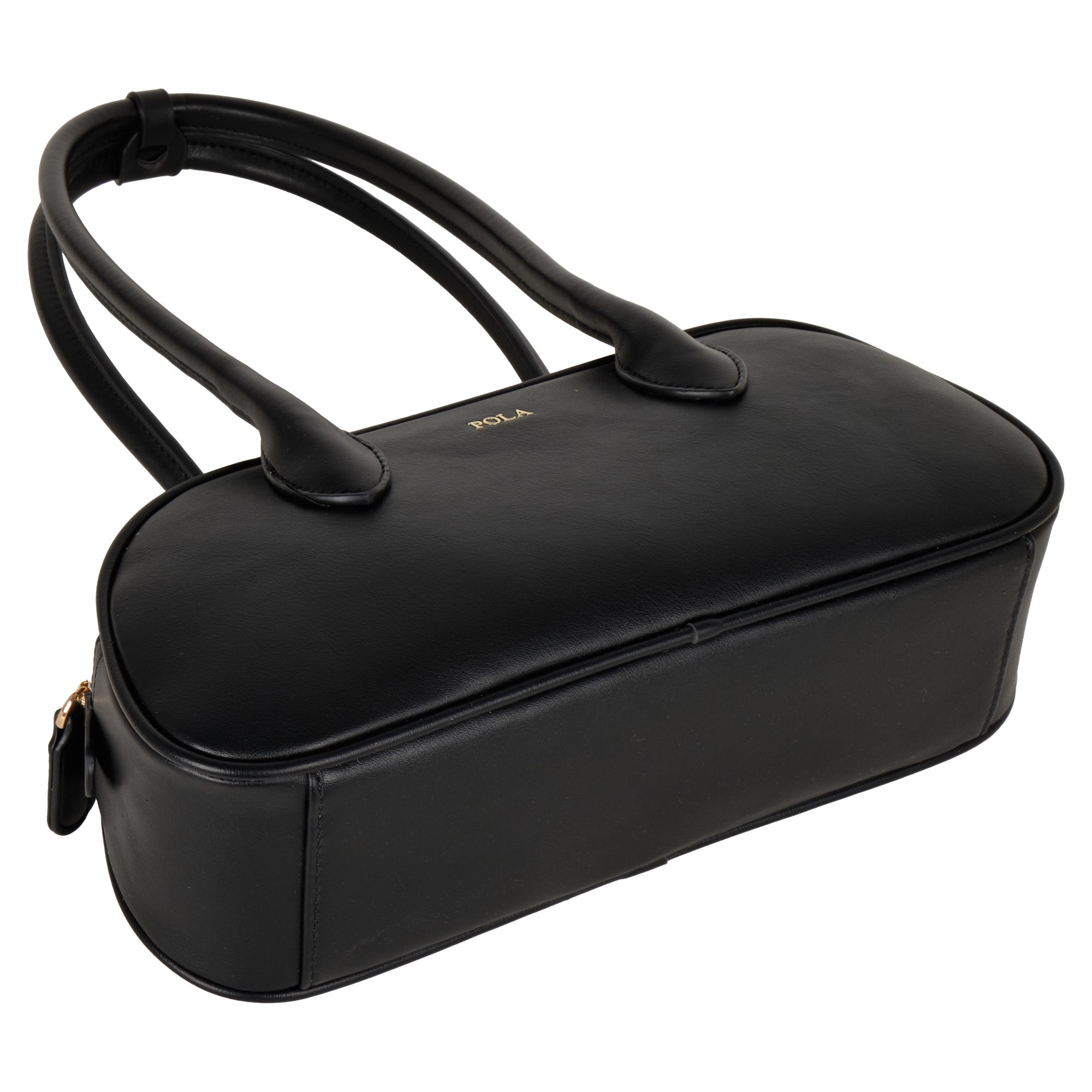 Сумка женская длинный багет — это стильный и необычный аксессуар фирмы POLA выполнена из экокожи. Сумка станет отличным дополнением к вашему образу. Сумка выполнена в форме боулер, что делает ее уникальной и привлекательной. Основное отделение закрывается на молнию. Внутри есть один карман на молнии и два открытых кармана. Удобные ручки высота 25 см, которые позволяют легко носить ее на плече или в руке. Ручки обеспечивают удобство при носке, а миниатюрный размер делает ее идеальной для вечерних выходов или повседневного использования. Цвет фурнитуры-золото.