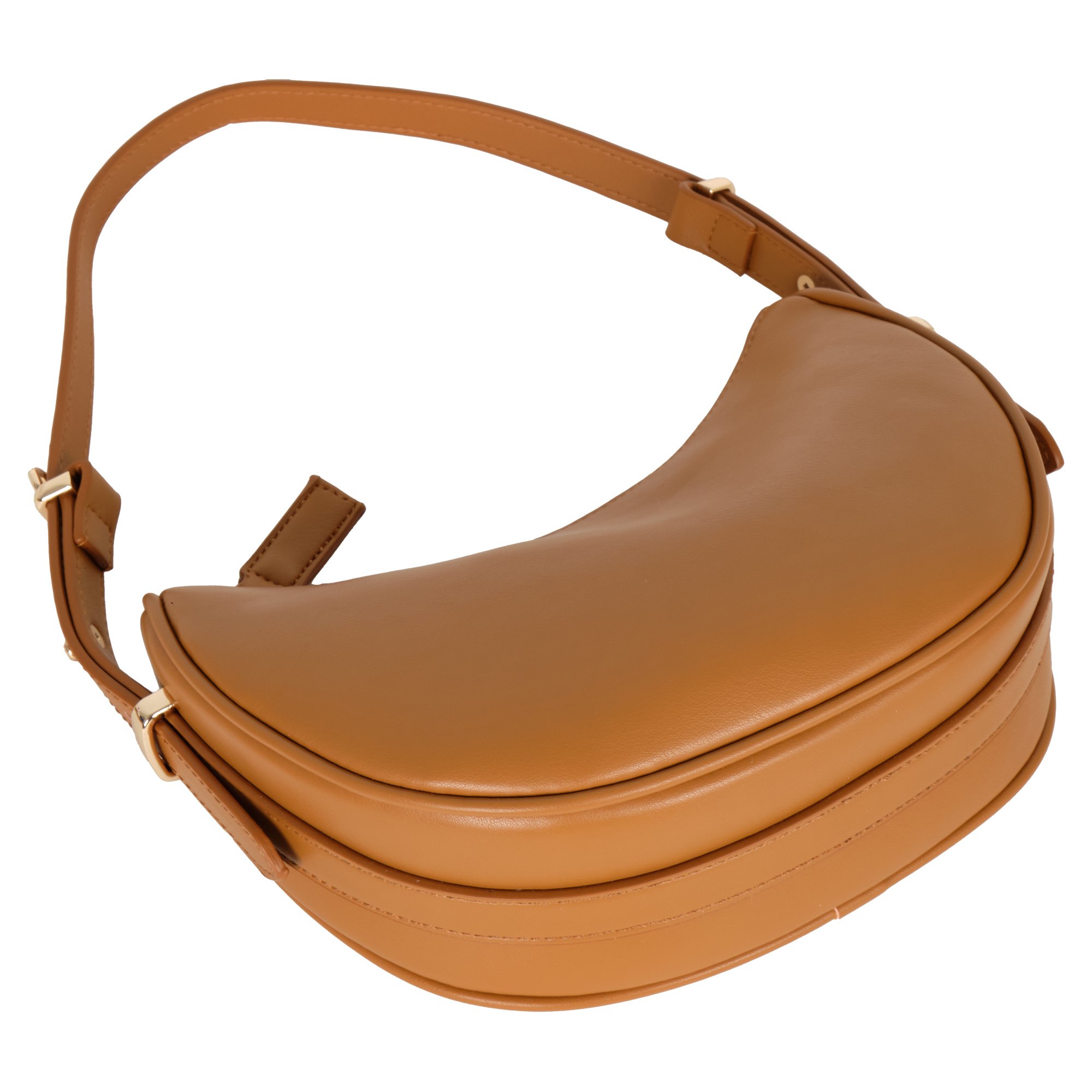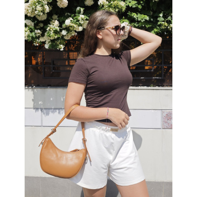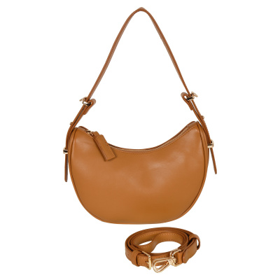 Стильная сумка хобо фирмы POLA выполнена из экокожи, одна из самых трендовых и востребованных сумочек. Сумка по размеру маленькая, но компактная, подойдёт как для выхода в театр, ресторан, так и для прогулки в будние дни в качестве повседневной сумки в виде полумесяца. Основное отделение закрывается на молнию. Внутри один открытый карман. У данной модели два варианта переноски, съемный ремешок максимальная длина 126 см и высота ручек 27 см. Цвет фурнитуры-золото.