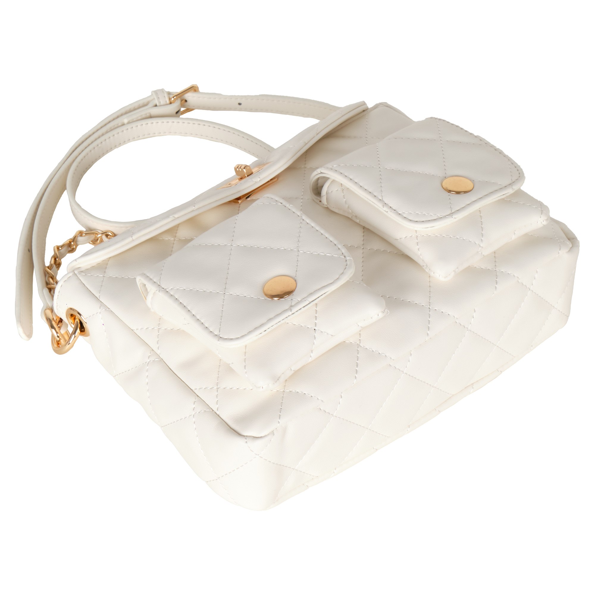 Стеганая сумка фирмы POLA выполнена из экокожи. Это идеальный аксессуар для стильных и практичных людей. Сумка сочетает в себе элегантность и функциональность. Закрывается поворотным замком. Внутри основного отделения кармашек на молнии и один открытый. На лицевой стороне сумки два небольших накладных кармана на магнитной кнопке. Сумку можно носить на плече или в руке, ручка сумки декорирована золотой цепочкой высота 20 см, максимальная длина съемного регулируемого ремня составляет 115 см. Цвет фурнитуры-золото.