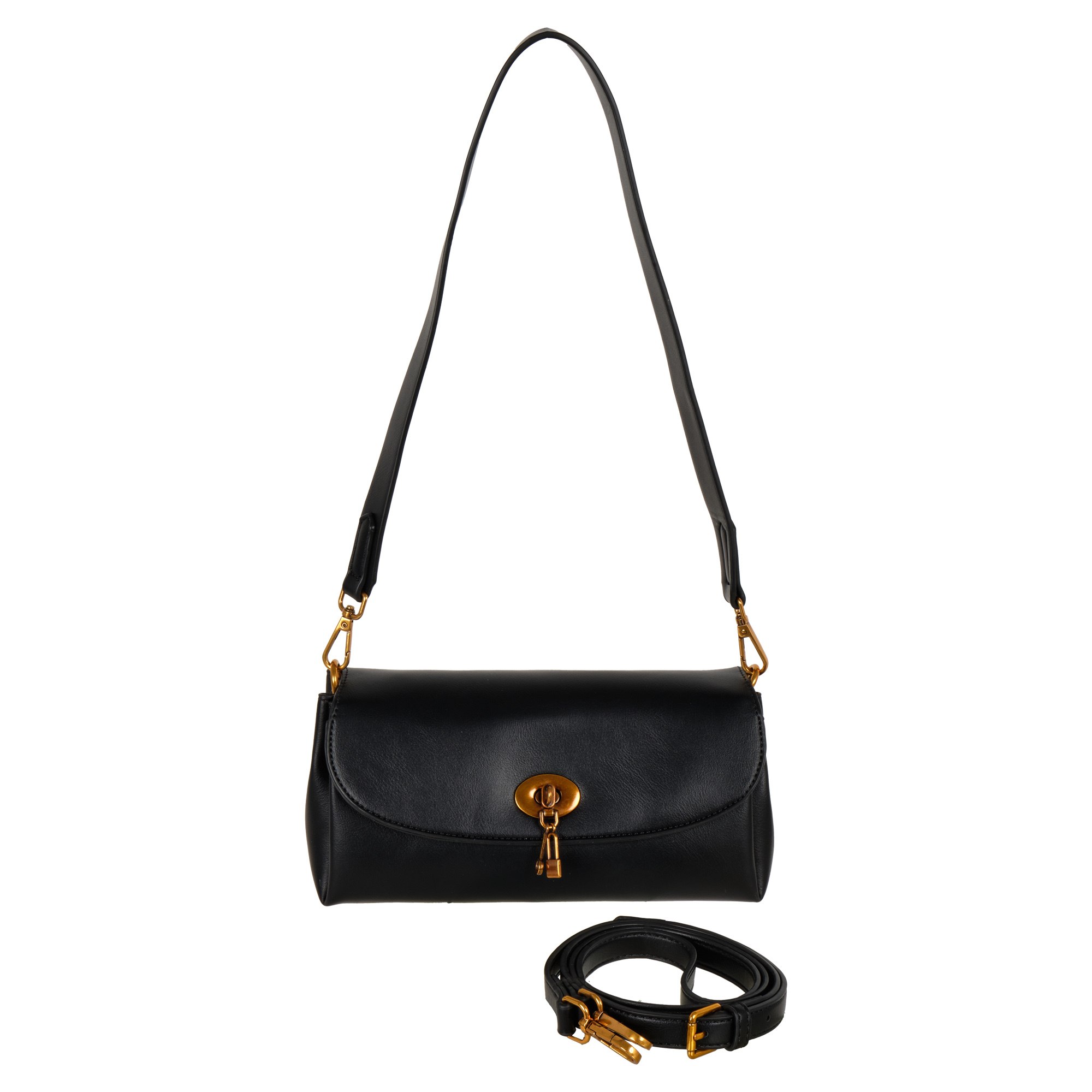 Стильная сумочка Pola выполнена из экокожи. Сумка состоит из одного основного отделения, которое закрывается поворотным замком. Внутри основного отделения кармашек на молнии и два открытых кармана. Данная модель отлично подойдет для повседневного образа. Максимальная длина съемного регулируемого ремня составляет 126 см, высота ручки 33 см. Цвет фурнитуры-латунь.