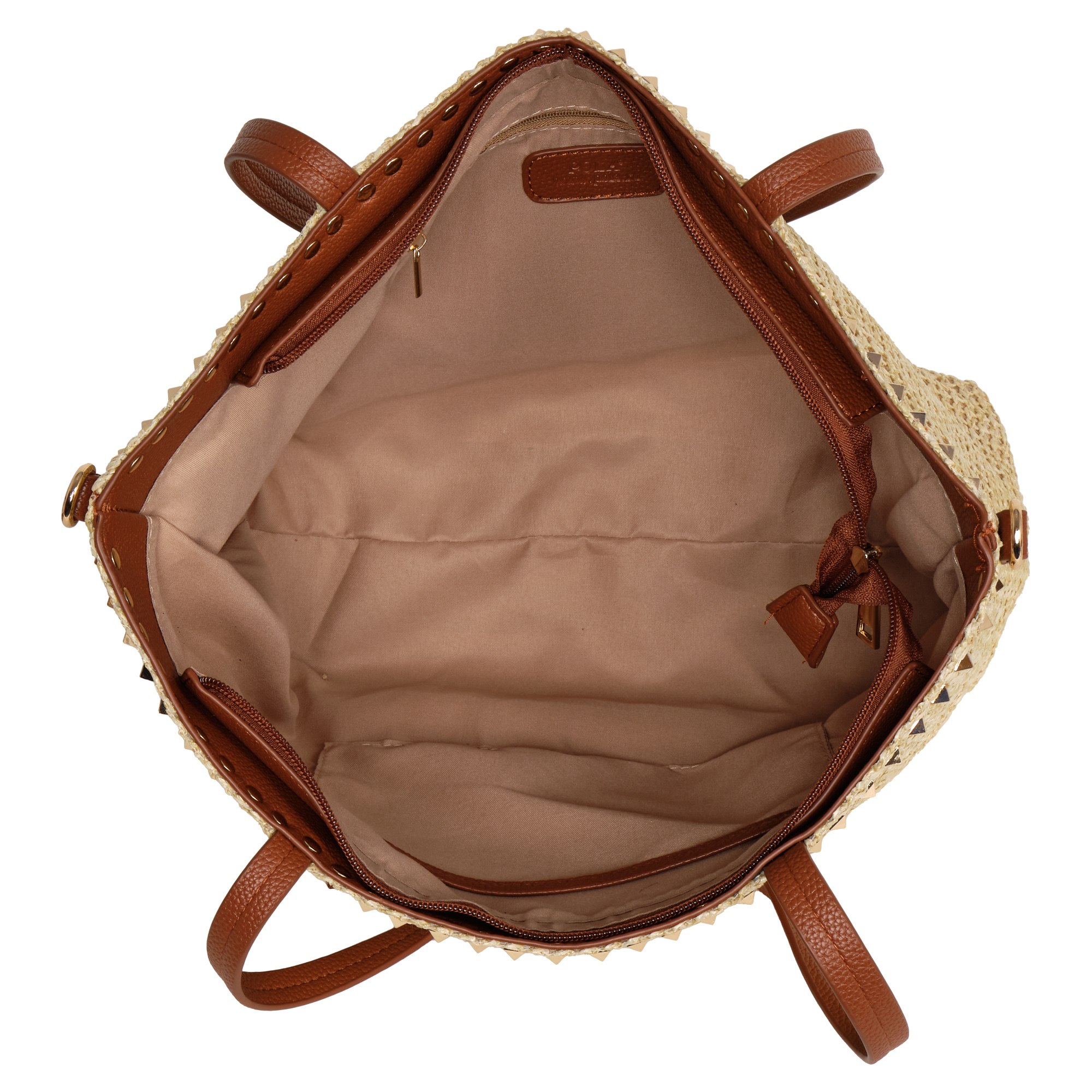 Пляжная сумка фирмы POLA выполнена из искусственного рафия . Cтильный и практичный аксессуар для летнего отдыха. она идеально подходит для поездок на море, прогулок по городу и повседневного использования. Легкая, вместительная. Основное отделение закрывается на молнию. Внутри один карман на молнии и один открытый кармашек. Модель с ручками из кожи на плечо высота 24 см. Длина съемного регулируемого ремня 134см. Цвет фурнитуры-золото.