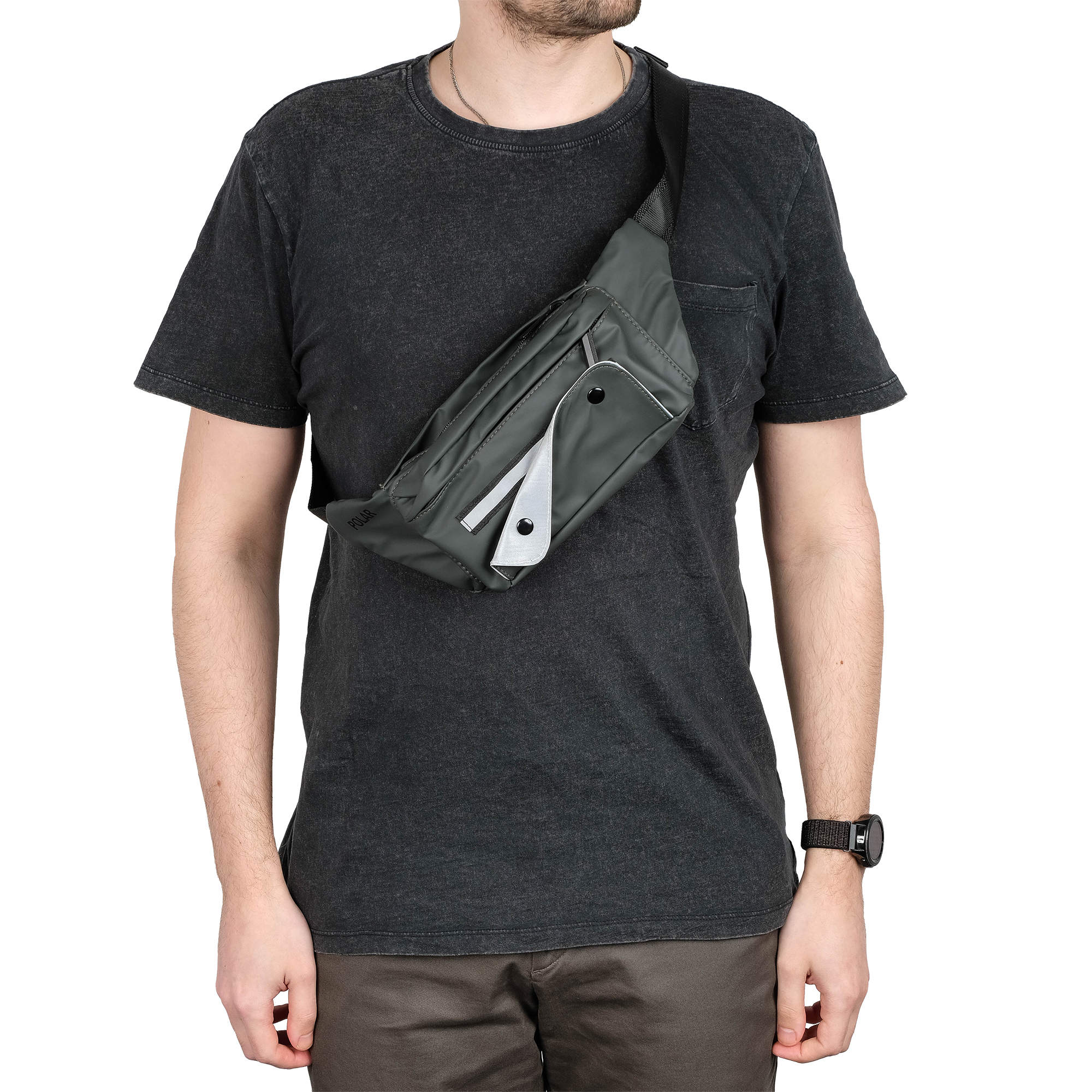 Поясная молодёжная сумка POLAR выполнена из водоотталкивающего полиэстера прекрасно подходит для пеших прогулок. Сумка состоит из двух отделений, которые закрываются на пластиковую молнию. Спереди небольшой накладной карман на магнитной кнопке. Сзади карман на пластиковой молнии Модель очень удобная и комфортная. Максимальная длина ремня 118 см.