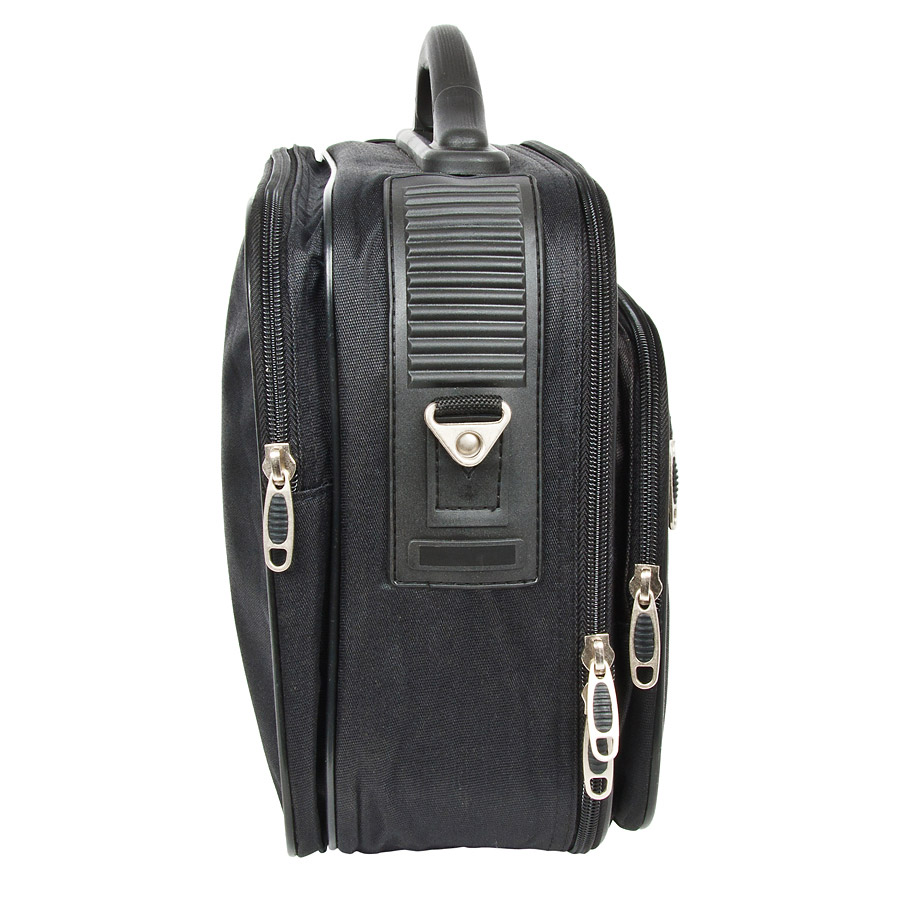 Кейс фирмы Rosin. Основное отделение с открытым карманом и органайзером. На задней стенке есть большой карман на молнии. Спереди карман на молнии. В комплекте — регулируемый плечевой ремень.