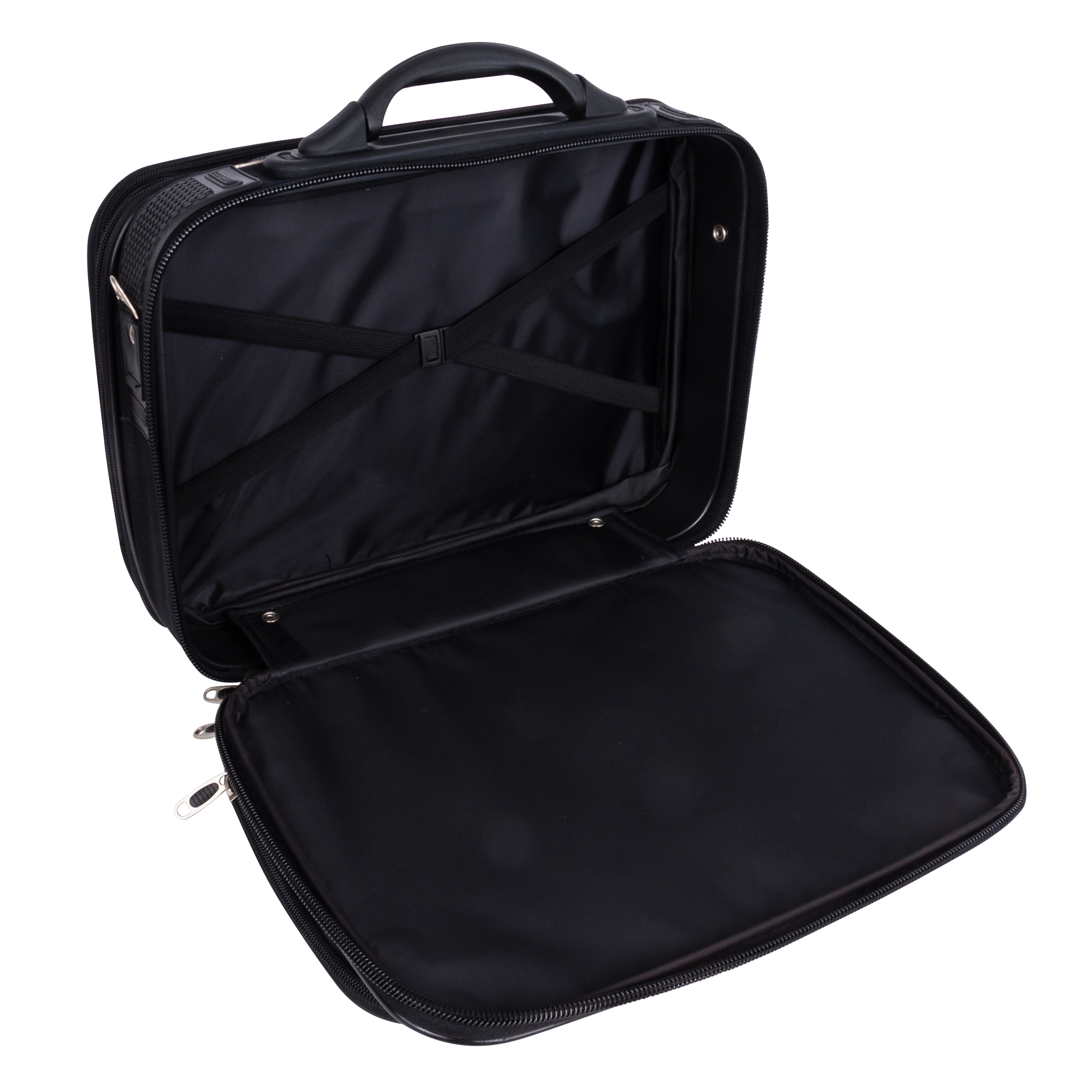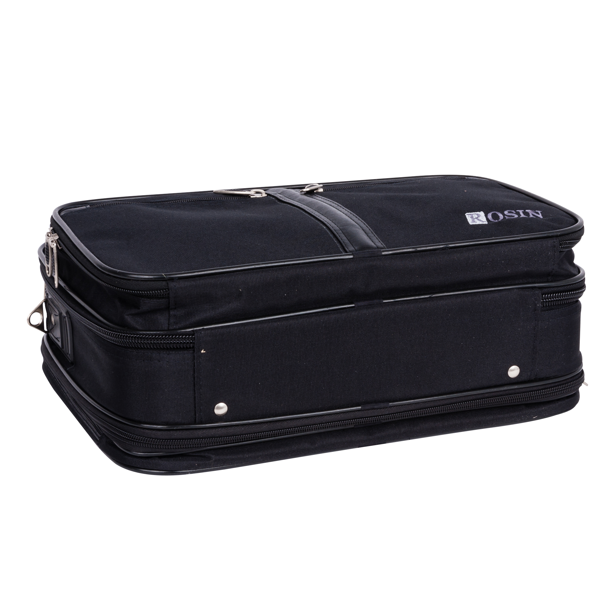 Кейс раздвижной фирмы Rosin. Внутри большое отделение с фиксатором под документы. Спереди большой карман на молнии, внутри которого органайзер, и два небольших кармана на молнии. Сзади большой карман на молнии с двумя секциями под бумаги и документы. Основное отделение увеличивается в объеме на 5 см. В комплекте идет плечевой ремень.