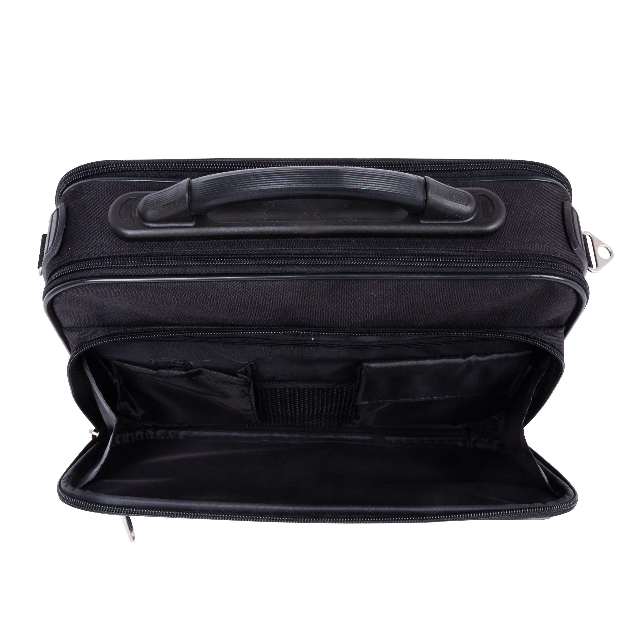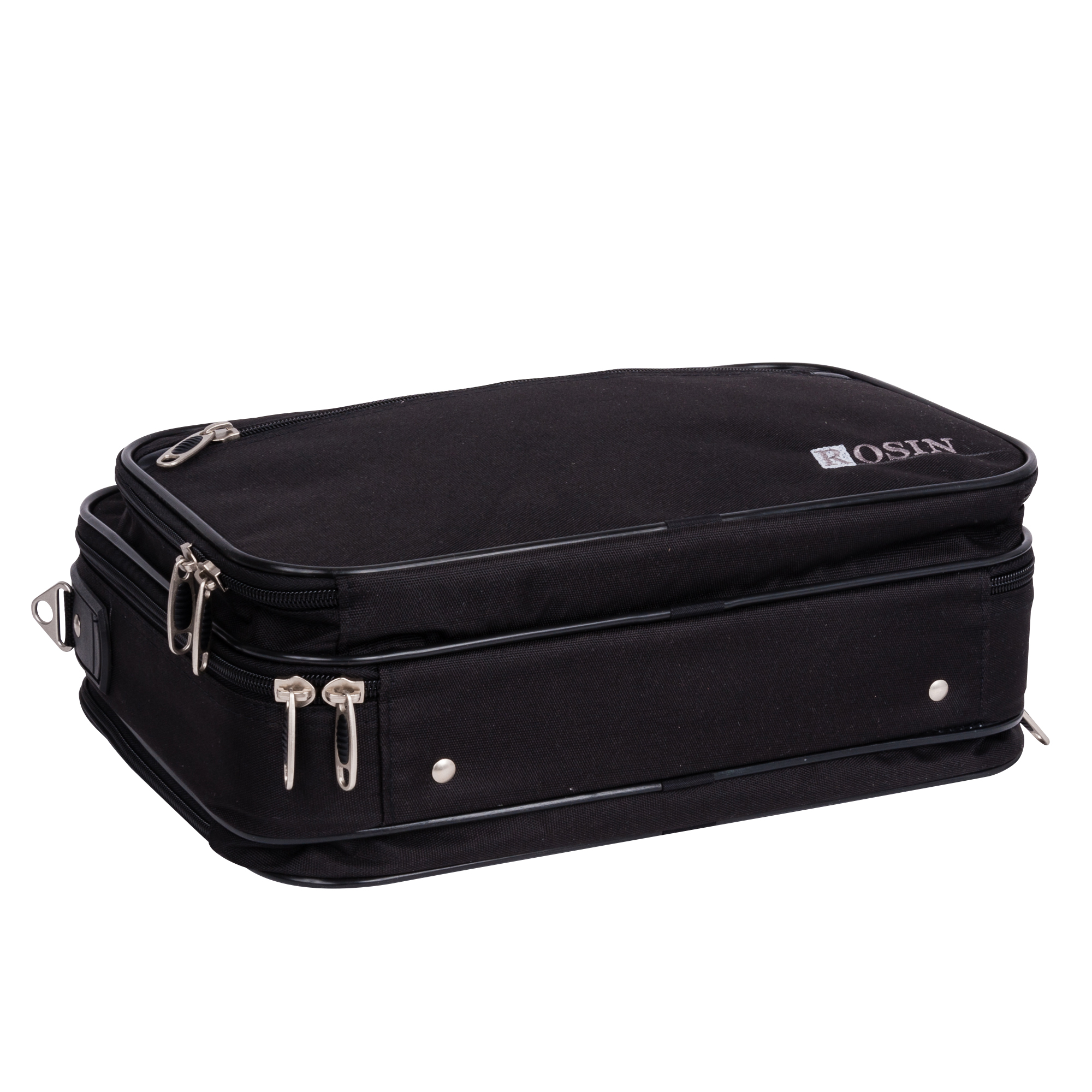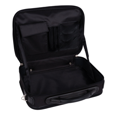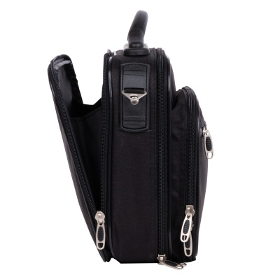Кейс тканевый компании ROSIN. Внутри основного отдела расположен органайзер и карман на липучке. Спереди два кармана на молнии для документов и личных вещей. Сзади расположен большой карман на молнии для бумаг и документов. В комплекте плечевой ремень.