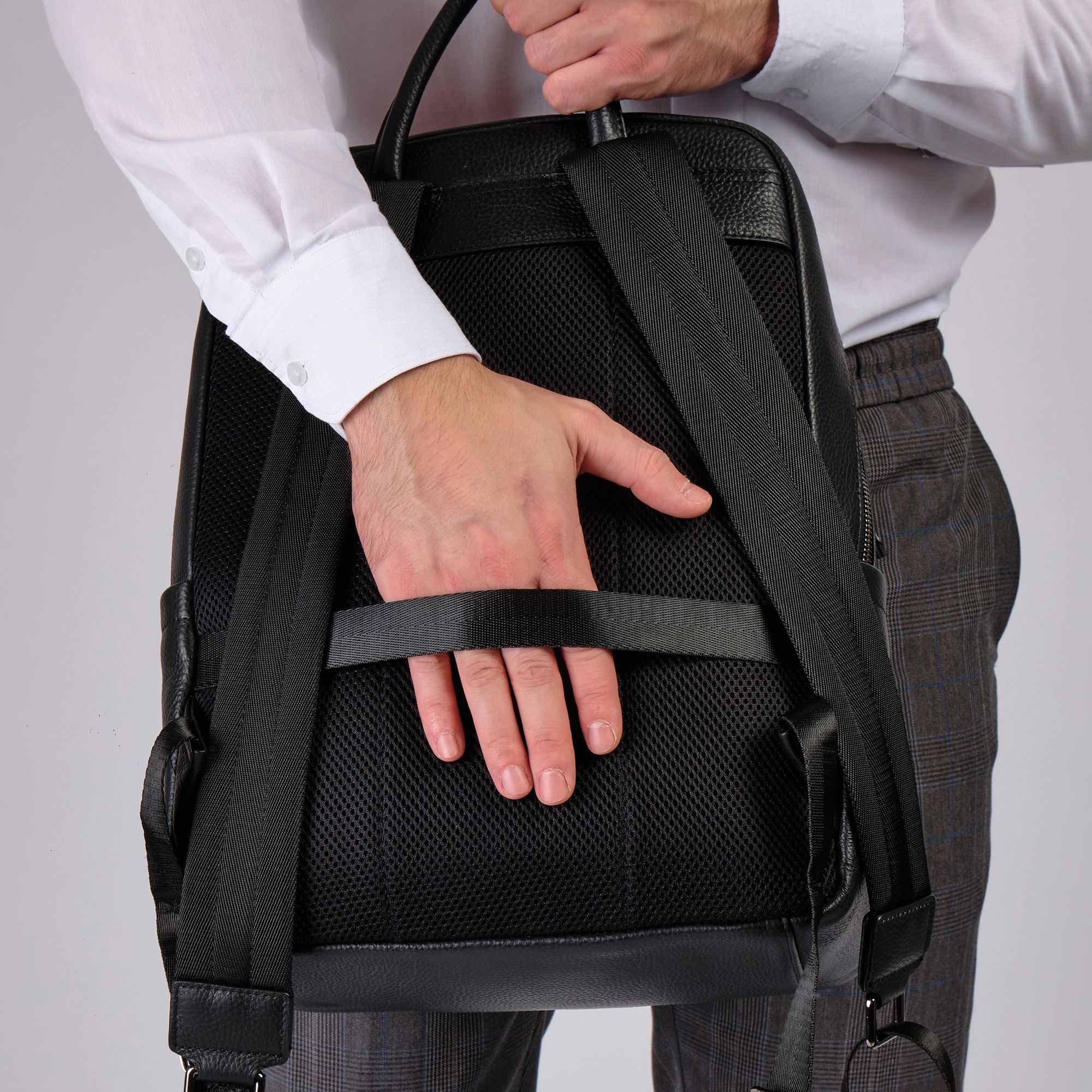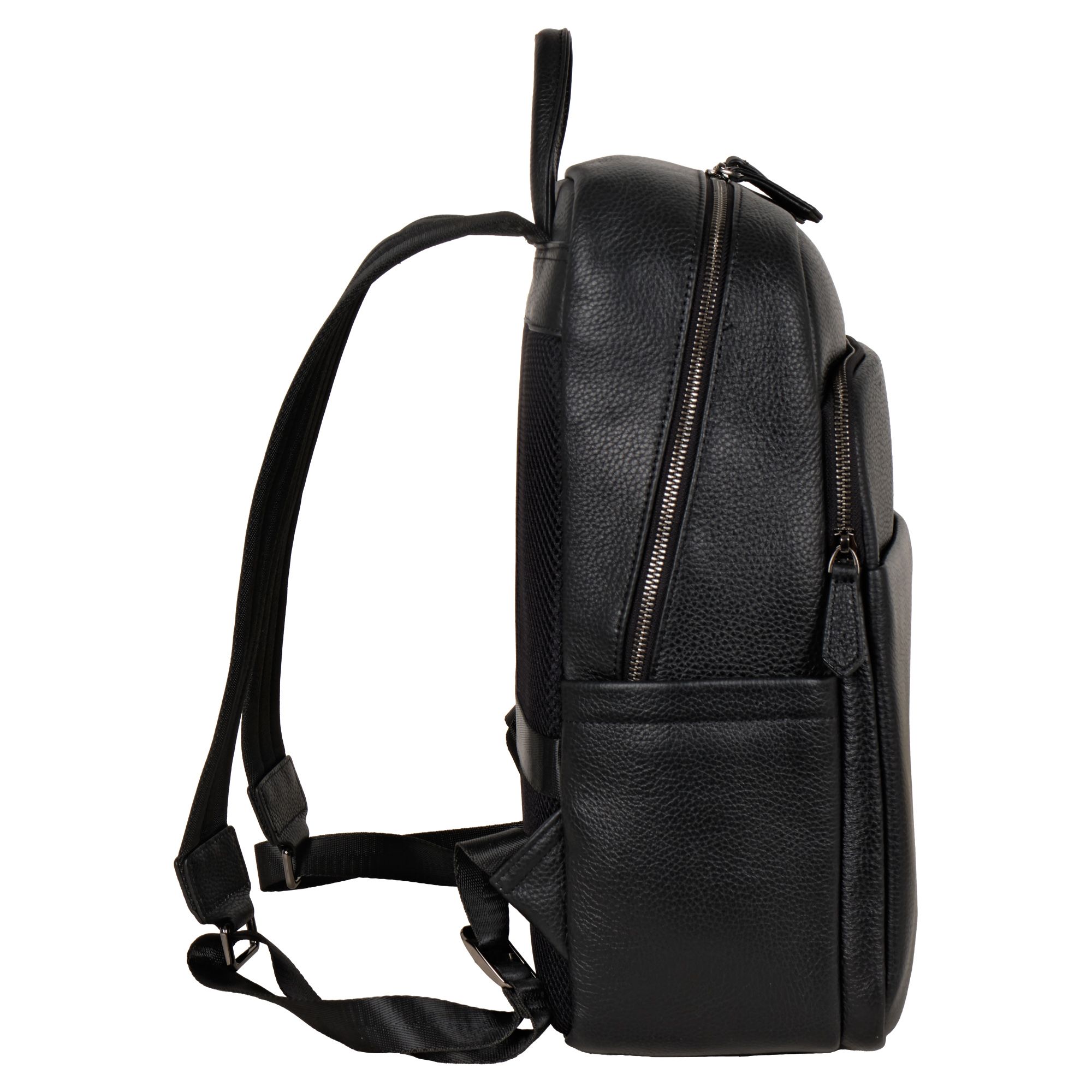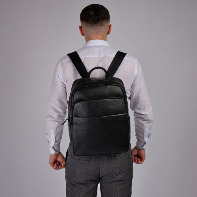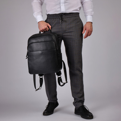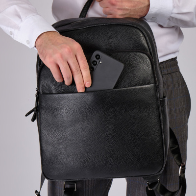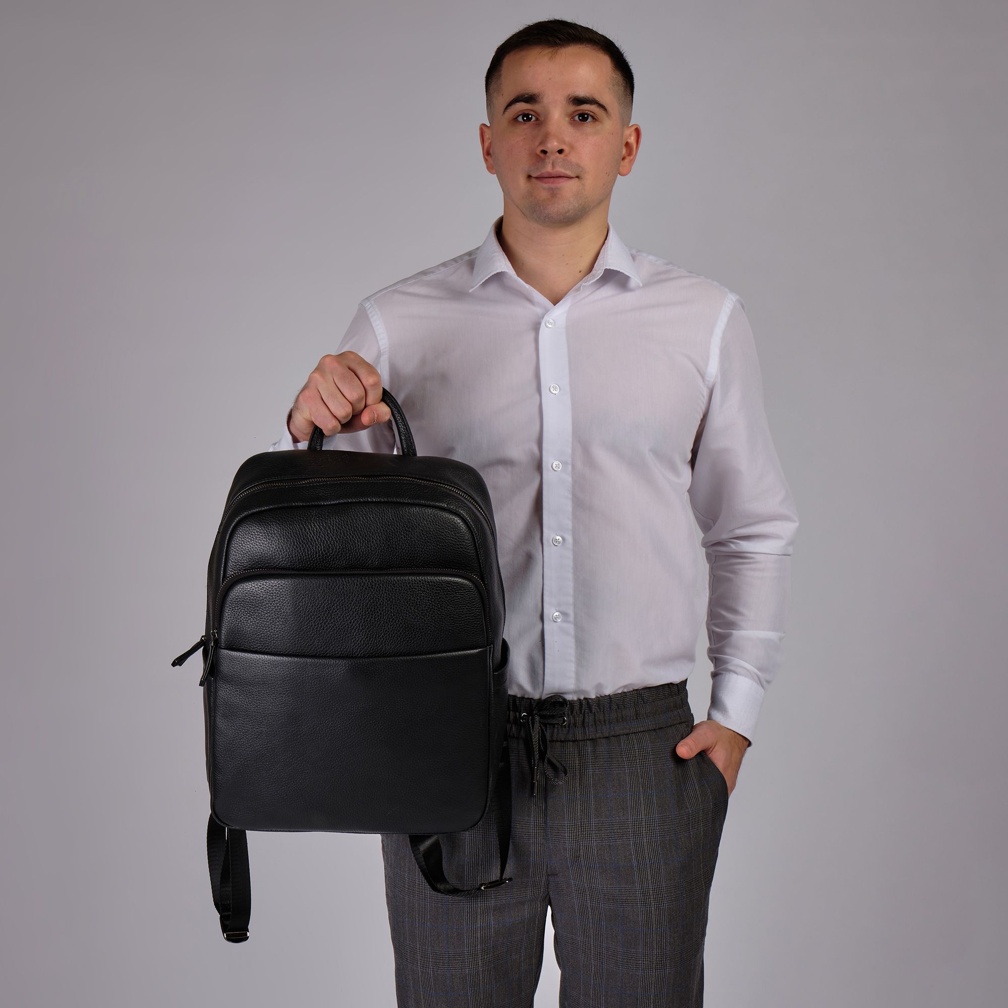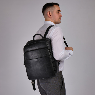 Стильный мужской рюкзак фирмы Polar из высококачественной натуральной кожи. Подходит для деловых встреч, офисной работы, для учебы в институте и командировок. Модель отлично подойдет для повседневного ношения, прогулок с друзьями. Основное отделение закрывается на металлическую молнию. Внутри небольшой карман на молнии для карточек, ключей и один открытый кармашек. На передней стенке рюкзака два накладных кармана, один закрывается на молнию, второй на магнитную кнопку. По бокам два открытых кармашка. На обратной стороне рюкзака есть лямка, благодаря которой рюкзак можно прикреплять к выдвижной ручке чемодана. Длина лямок 97 см, высота ручки 10