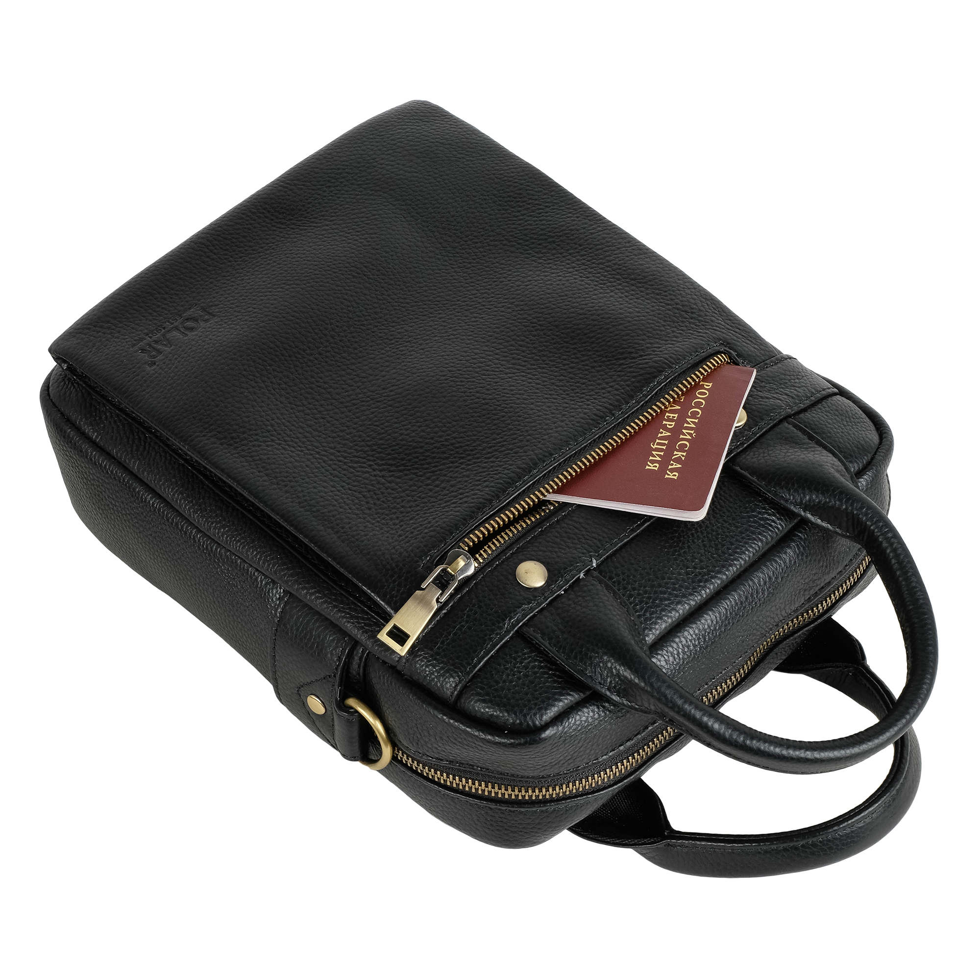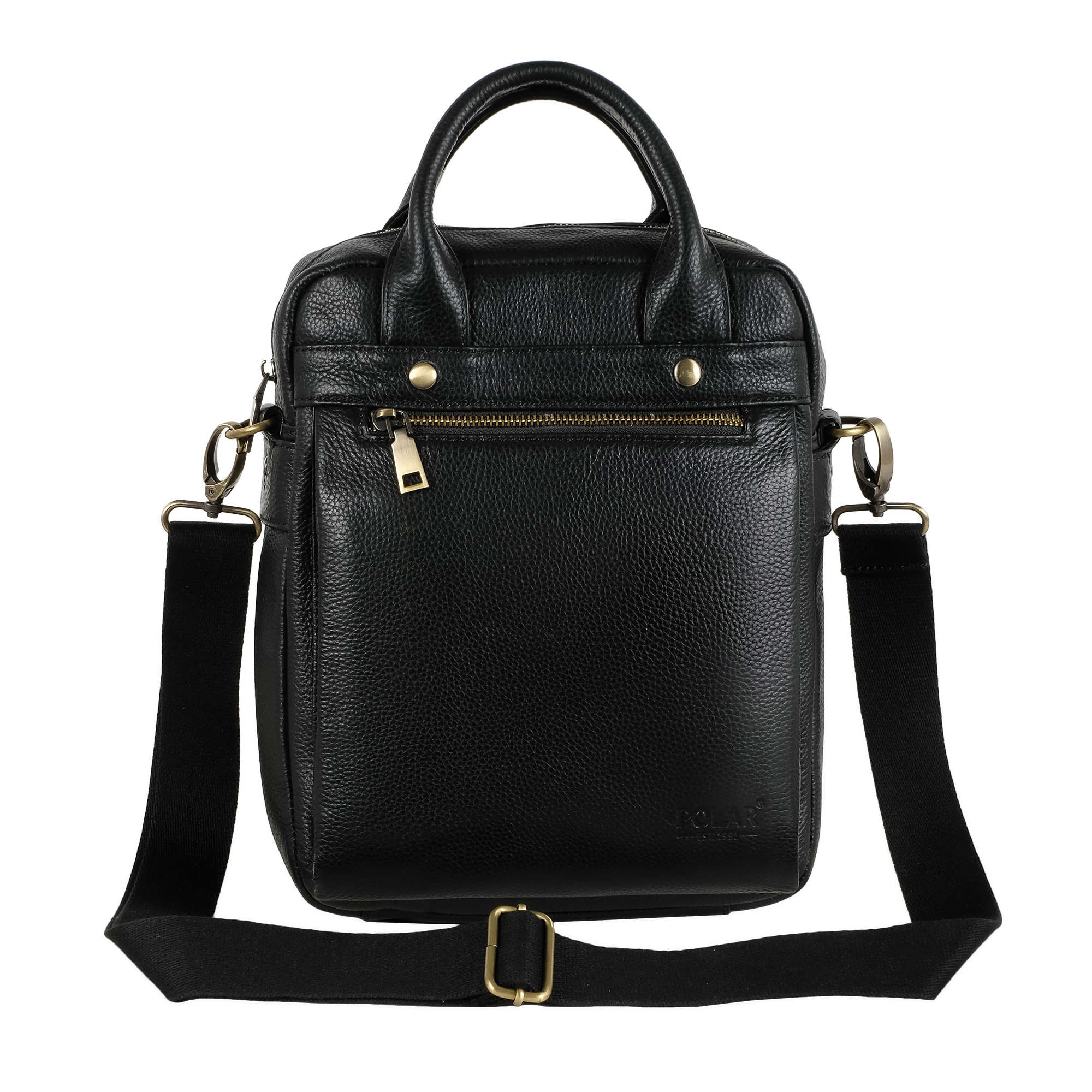 Сумка Polar выполнена из натуральной кожи. Основное отделение закрывается на металлическую молнию. Внутри — два кармана на молнии и органайзер. Снаружи — два кармана на молнии. В комплекте есть съемный, регулируемый плечевой ремень.