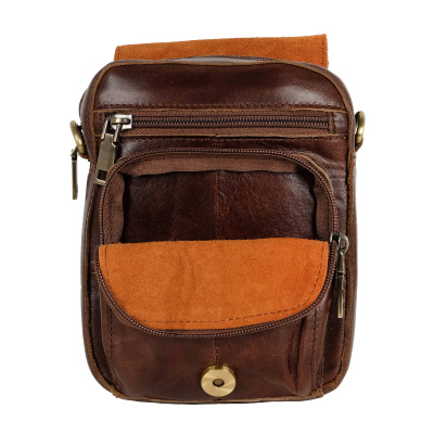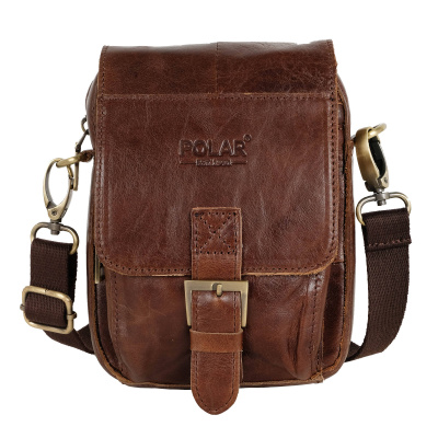 Мужская сумка фирмы Polar из натуральной кожи для документов. Основное отделение закрывается на молнию и клапаном с магнитной кнопкой. Внутри основного отделения один кармашек на молнии и открытый для мелочей. Спереди сумки накладной карман на молнии, на задней стенке также есть карман на молнии для нужных мелочей. Плечевой ремень съемный, регулируемый по максимальной длине 143 см. Сумку можно носить как на поясе, так и на плече. Эта модель отлично подойдет для документов, ключей, мобильного телефона и прочих мелочей.