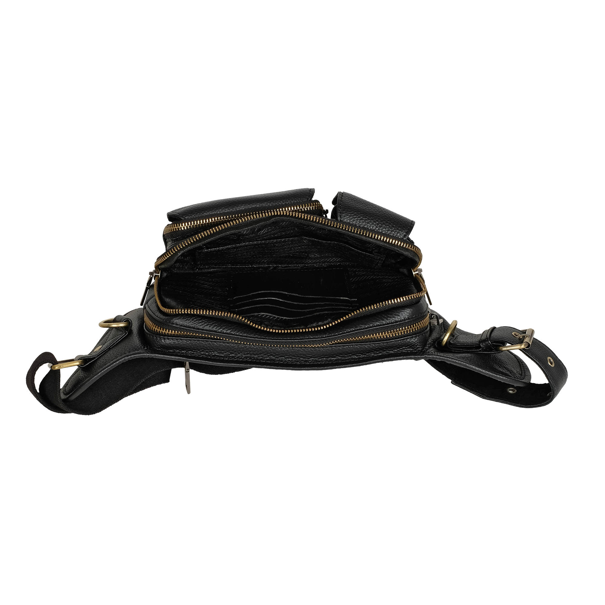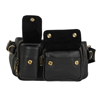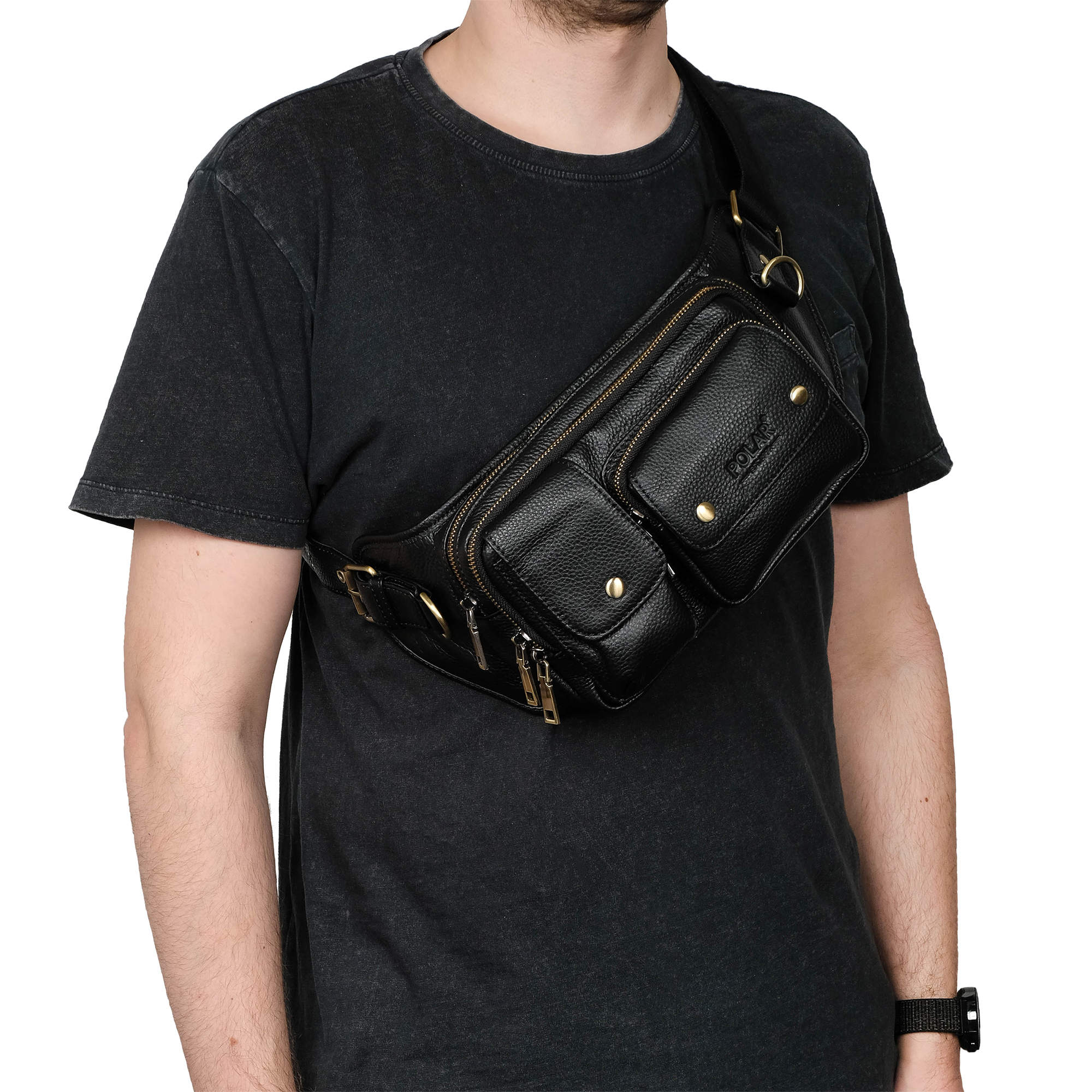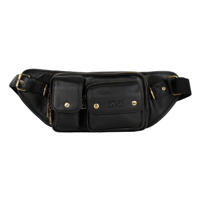 Кожаная мужская сумка Polar на пояс. Состоит из двух отделений на молнии. Внутри — один карман на молнии и два открытых кармана. Снаружи — дополнительный карман на молнии сзади сумки и два кармана спереди сумки. Пояс регулируется, максимальный объем 140 см.
