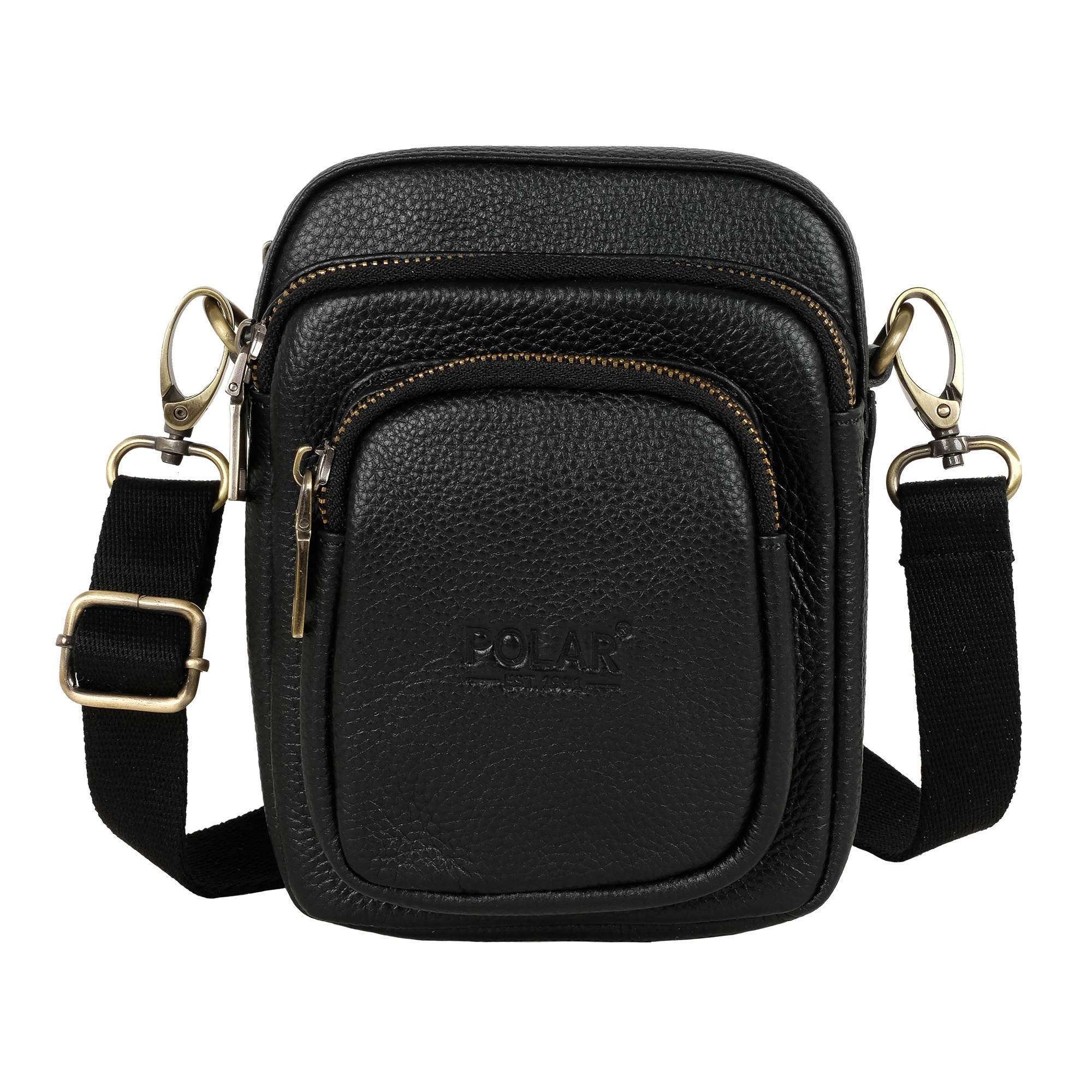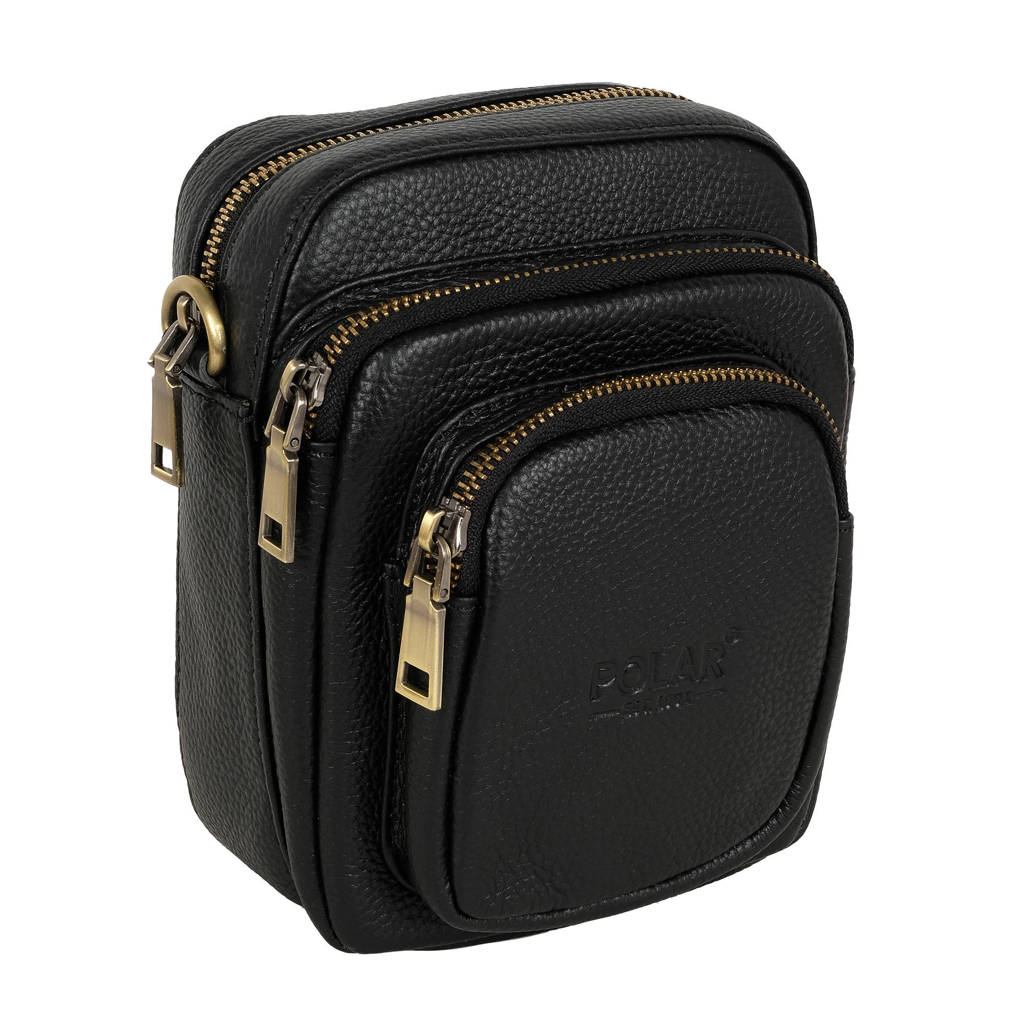 Мужская кожаная сумочка с плечевым ремнем и креплением на ремень.Три отделения на молнии. В основном два кармана, один с молниея. На задней стенке карман на молнии.