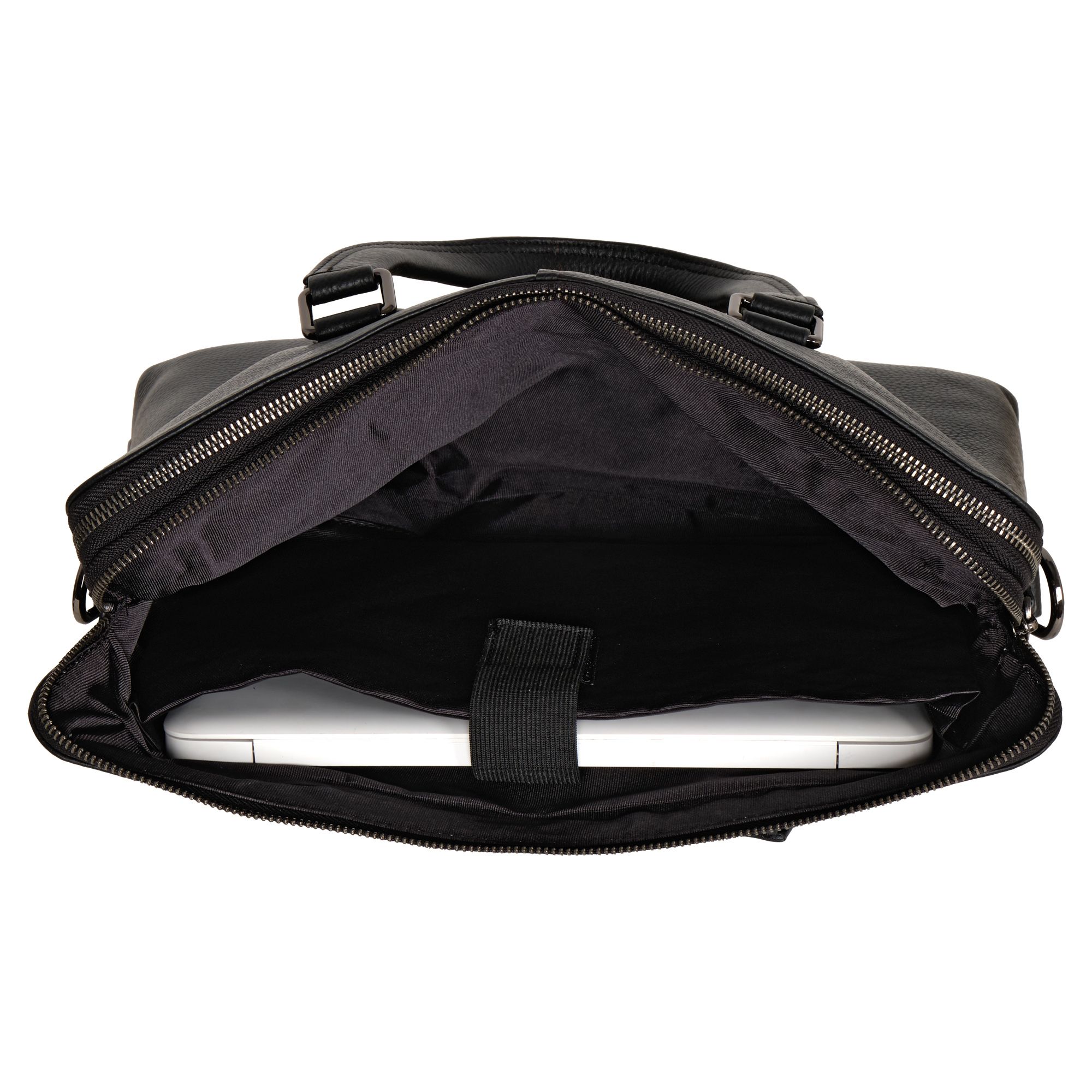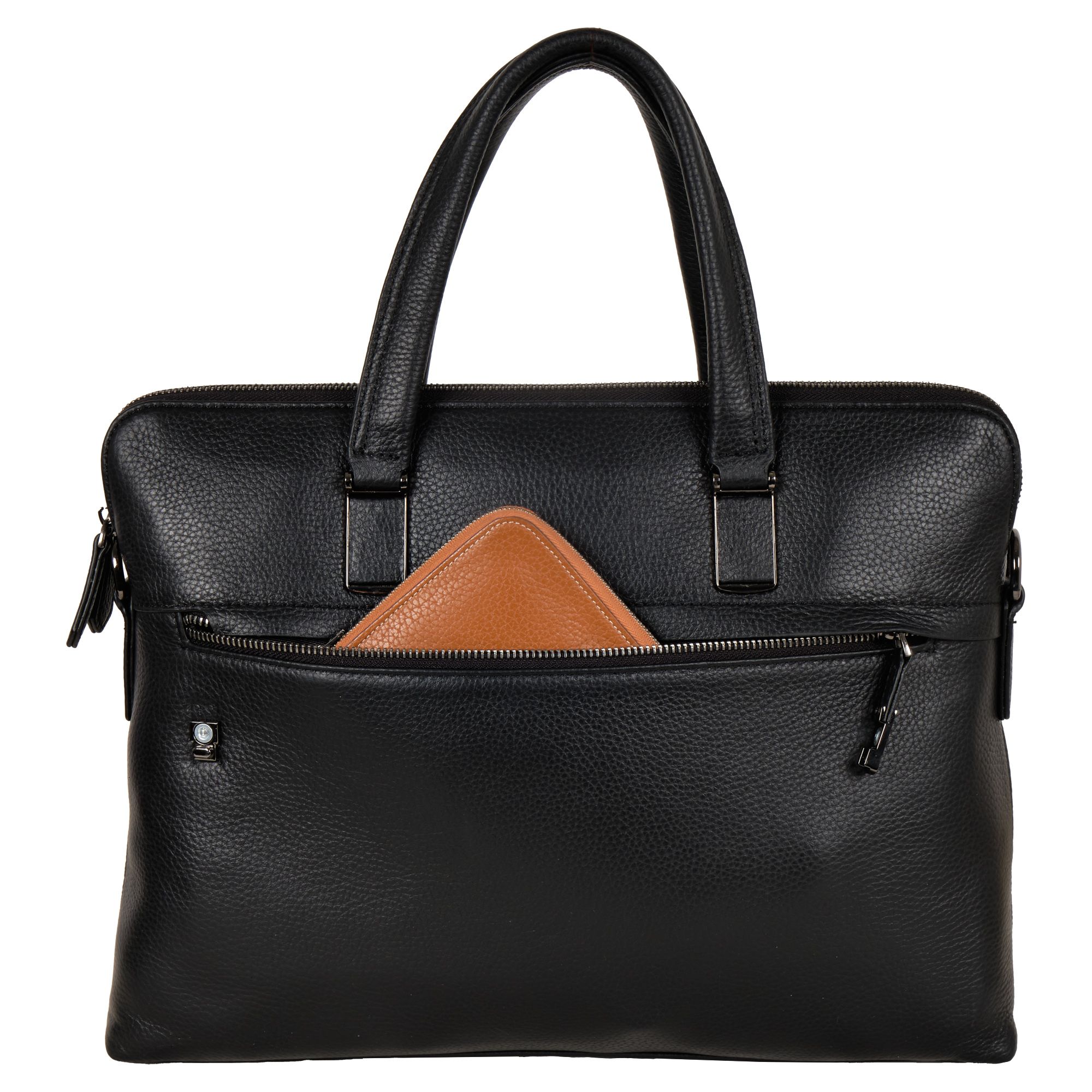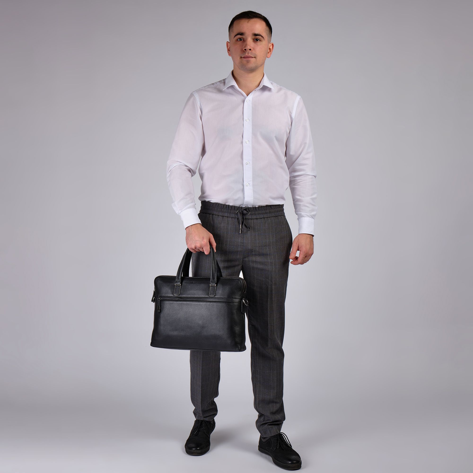 Мужской портфель торговой марки Polar из высококачественной натуральной кожи. Черный цвет подчеркивает его классический вид, а также делает возможным легко сочетать его с любым стилем одежды. Подходит для деловых встреч, офисной работы, для учебы в институт и командировок. Портфель имеет два основных отделения, которые закрываются на металлическую молнию. Внутри отделение для электронных устройств или ноутбука с диагональю до 13,3” и открытый кармашек. Модель вмещает формат A4. На задней стенке сумки есть карман на молнии. Высота ручек 17 см, в комплекте есть регулируемый наплечный ремень с мягким наплечником, максимальная длина 153 см.