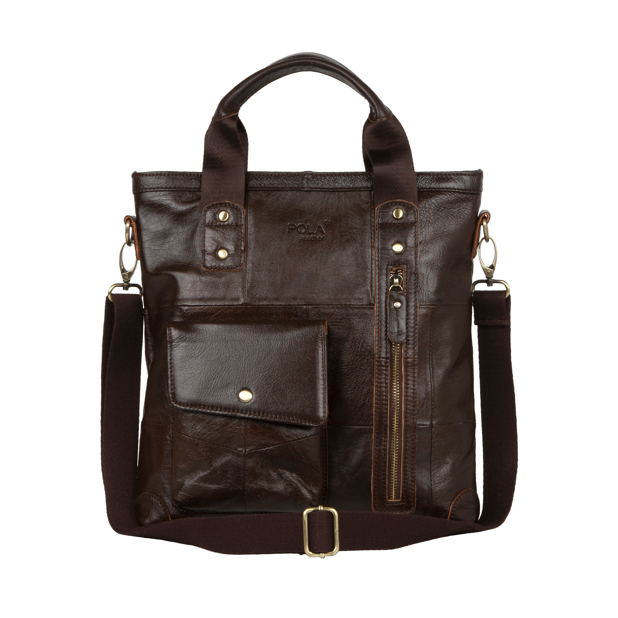 Сумка мужская Pola выполнена из натуральной кожи. Основное отделение закрывается на молнию. Внутри — отделение для документов формата А4, поделено на две части, карман на молнии и два открытых кармашка. Снаружи — карман закрывается клапаном на магнитную кнопку и вертикальный карман на молнии. Карман на молнии сзади сумки. Съемный, удобный плечевой ремень, который регулируется по необходимой Вам длине.