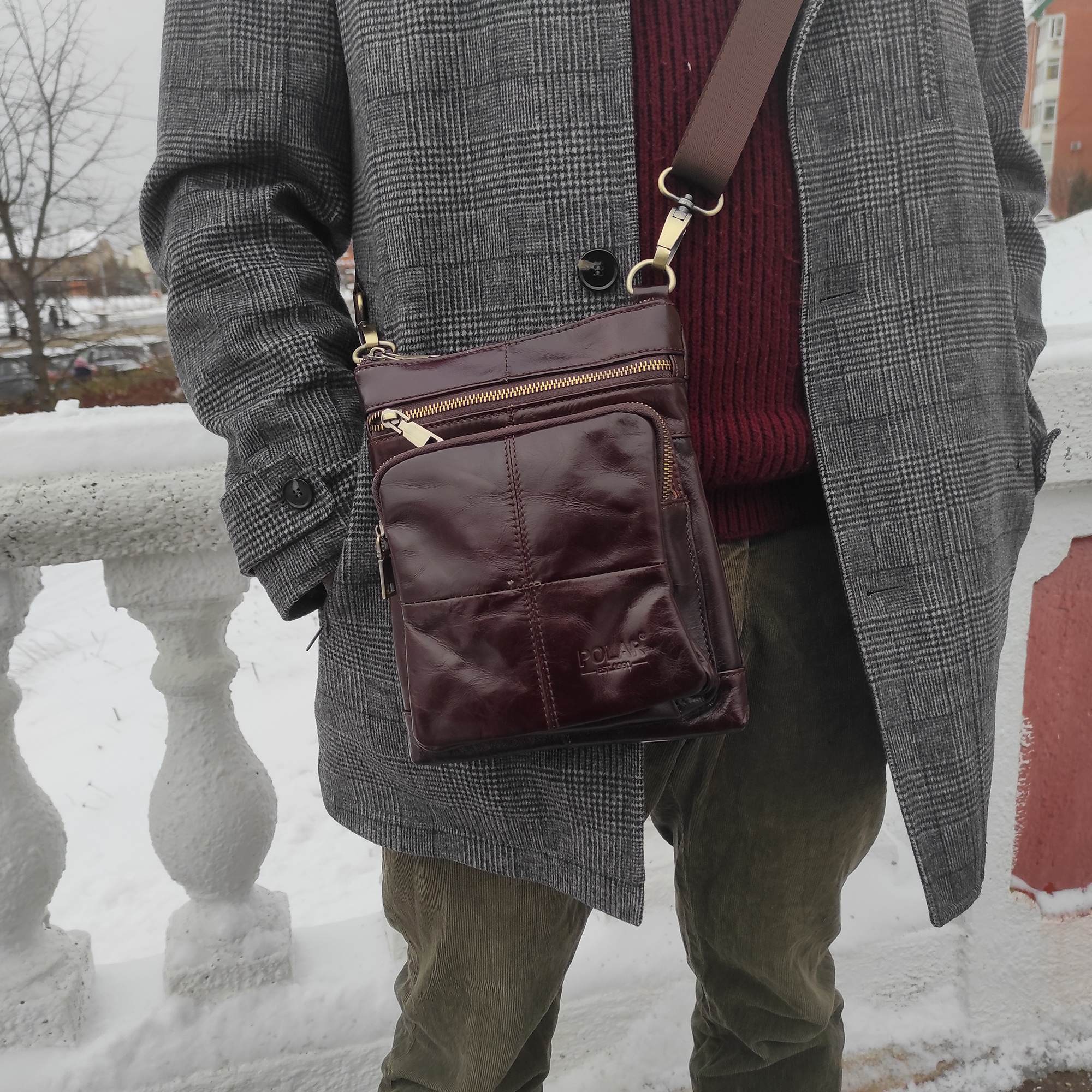 Сумка мужская из натуральной кожи фирмы Polar. Основное отделение закрывается на металлическую молнию. В основном отделении карман на молнии для ценных вещей и открытый кармашек. На передней стенке два вместительных кармана на молнии, а также карман сзади сумки. Плечевой ремень регулируемый по максимальной длине 147 см.