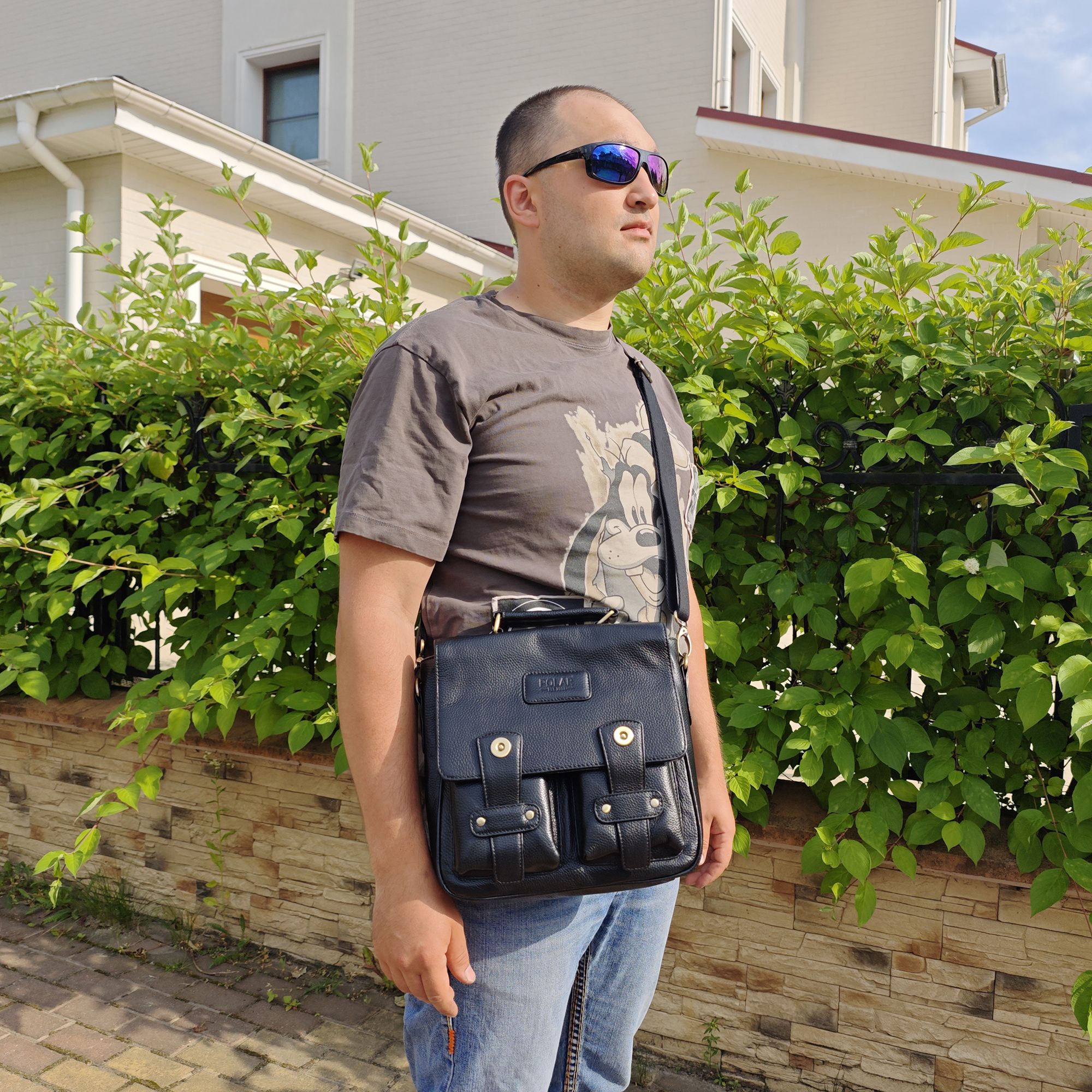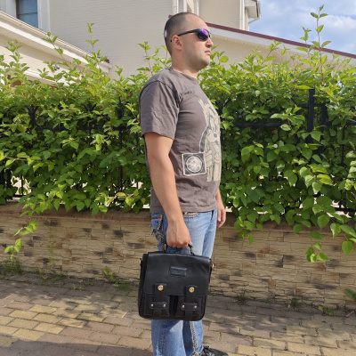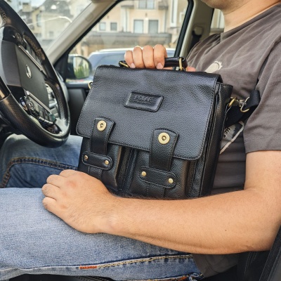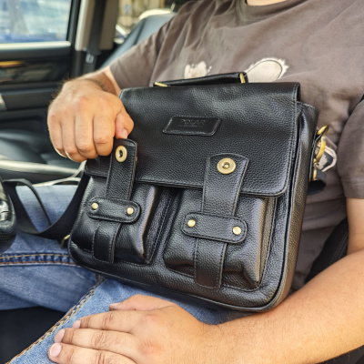 Мужская сумка POLAR из натуральной кожи. Открывается клапан на магнитных кнопках. Одно основное отделение, поделено карманом на молнии. Внутри - карман на молнии под документы и два открытых кармана. Снаружи - карман на магнитной кнопке сзади сумки и два открытых кармашка спереди сумки под клапаном. Удобный плечевой ремень который регулируется по необходимой Вам длине.