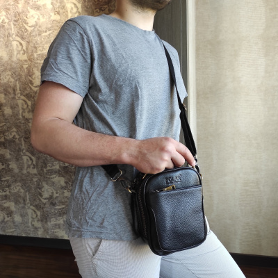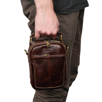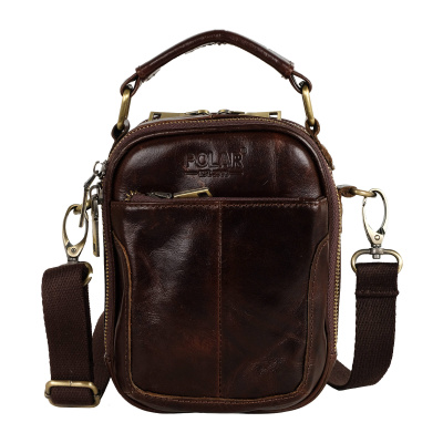Сумка мужская Polar из натуральной кожи малая. Два отдела закрываются на молнию. Внутри — карманы под канцелярию и один карман на молнии. Снаружи карман на молнии и один карман на магнитной кнопке. В комплекте есть съемный регулируемый плечевой ремень, длина 145 см.