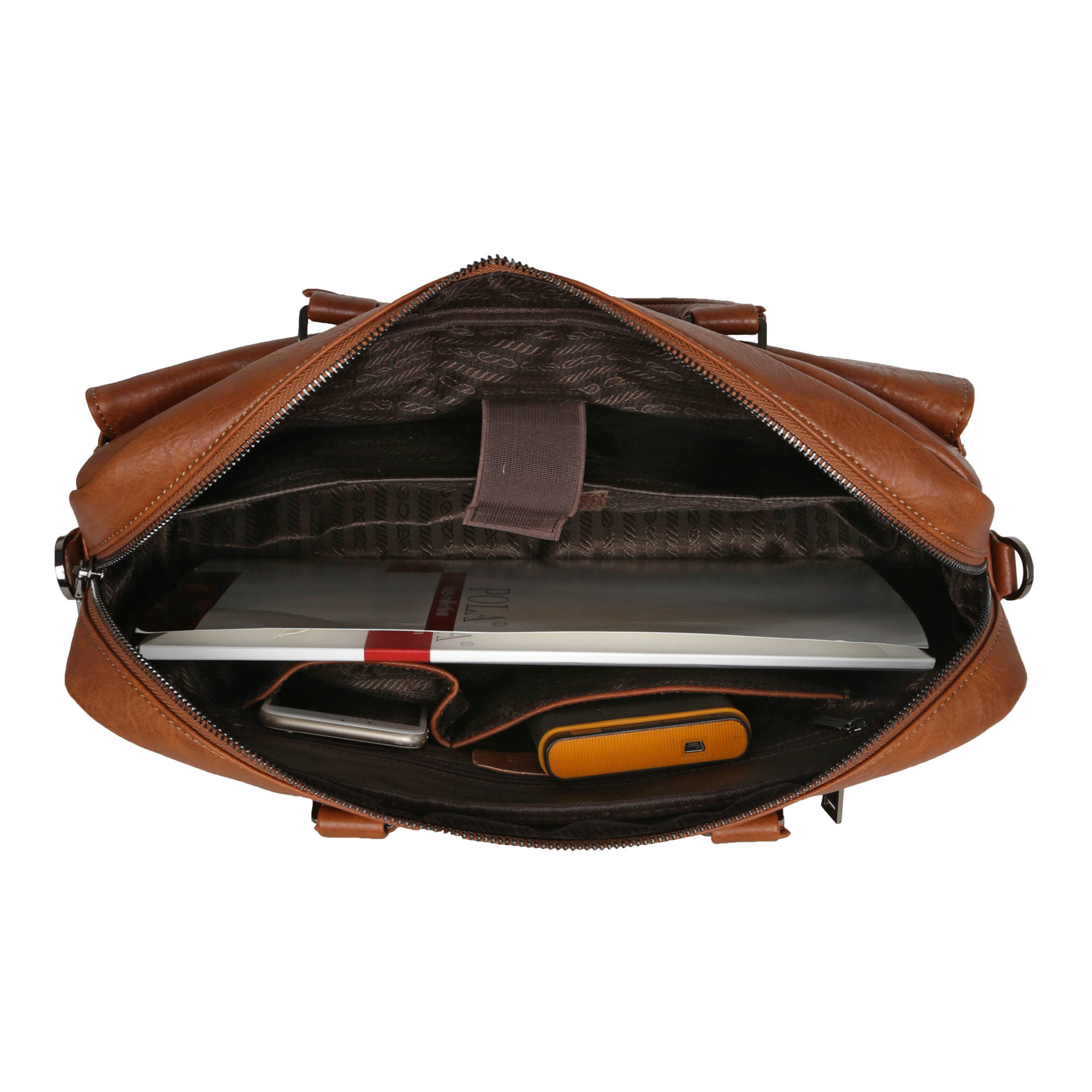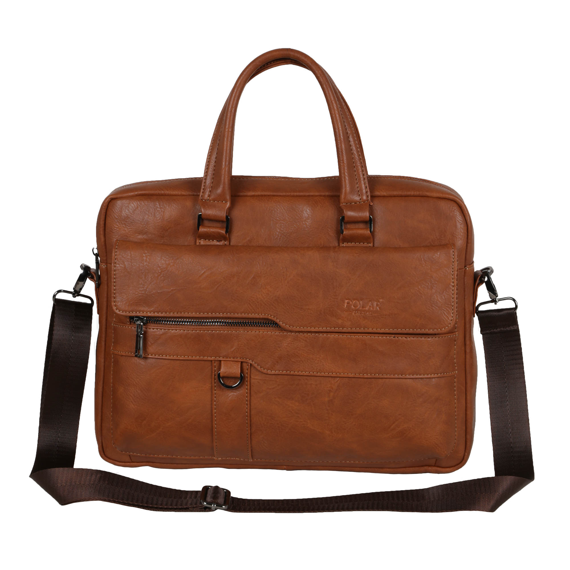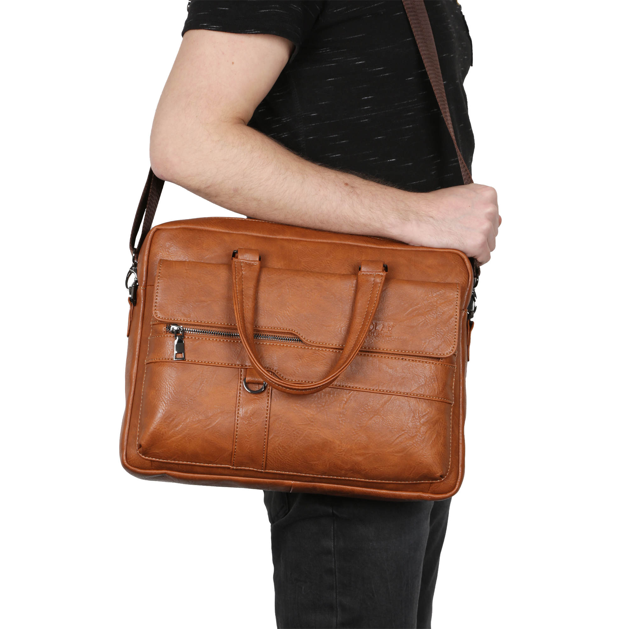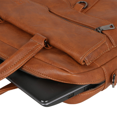 Мужской портфель фирмы Polar выполнен из экокожи. Портфель имеет одно основное отделение, которое закрывается на металлическую молнию. Внутри есть отделение для электронных устройств или ноутбука с диагональю до 15 и открытый кармашек. Модель вмещает формат A4 . На передней и задней стенке сумки есть отделения, которые закрываются на магнитные кнопки и карманы на молнии. Высота ручек 10 см, в комплекте есть регулируемый наплечный ремень, максимальная длина 145 см.