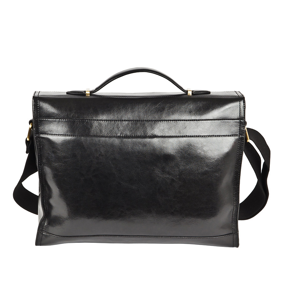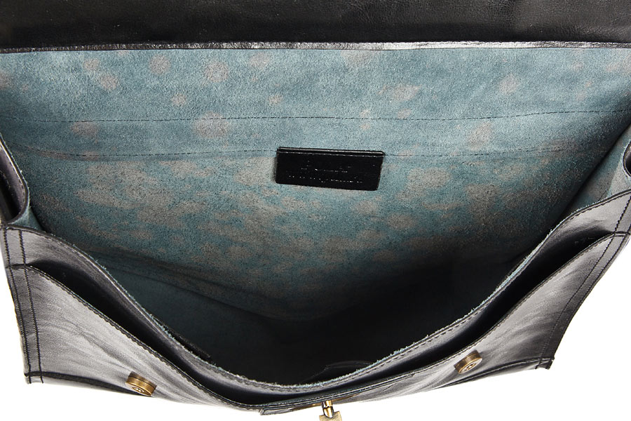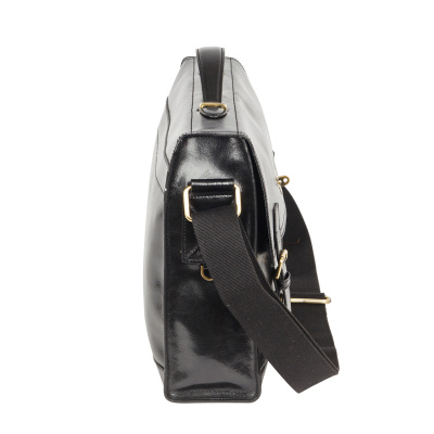 Портфель кожаный Pola. Одно основное отделение и одно впереди дополнительное. В основном отделении один открытый карман для ценных документов и отделение для визиток и телефона. Передний клапан фиксируется на магнитных кнопках. Имеется плечевой ремень из нейлона.