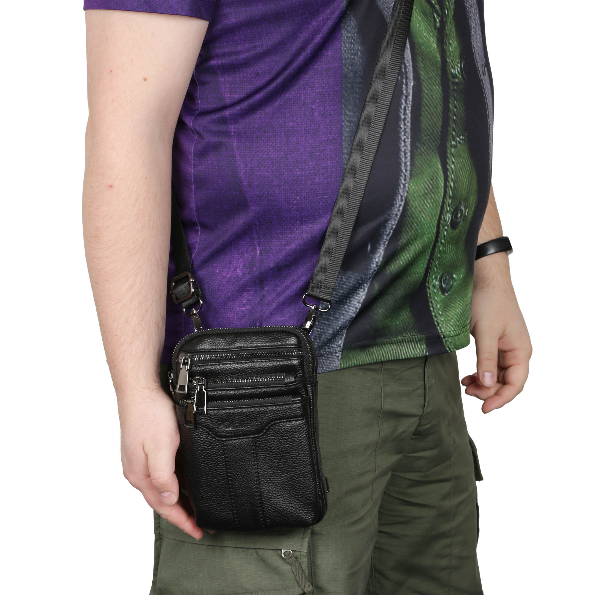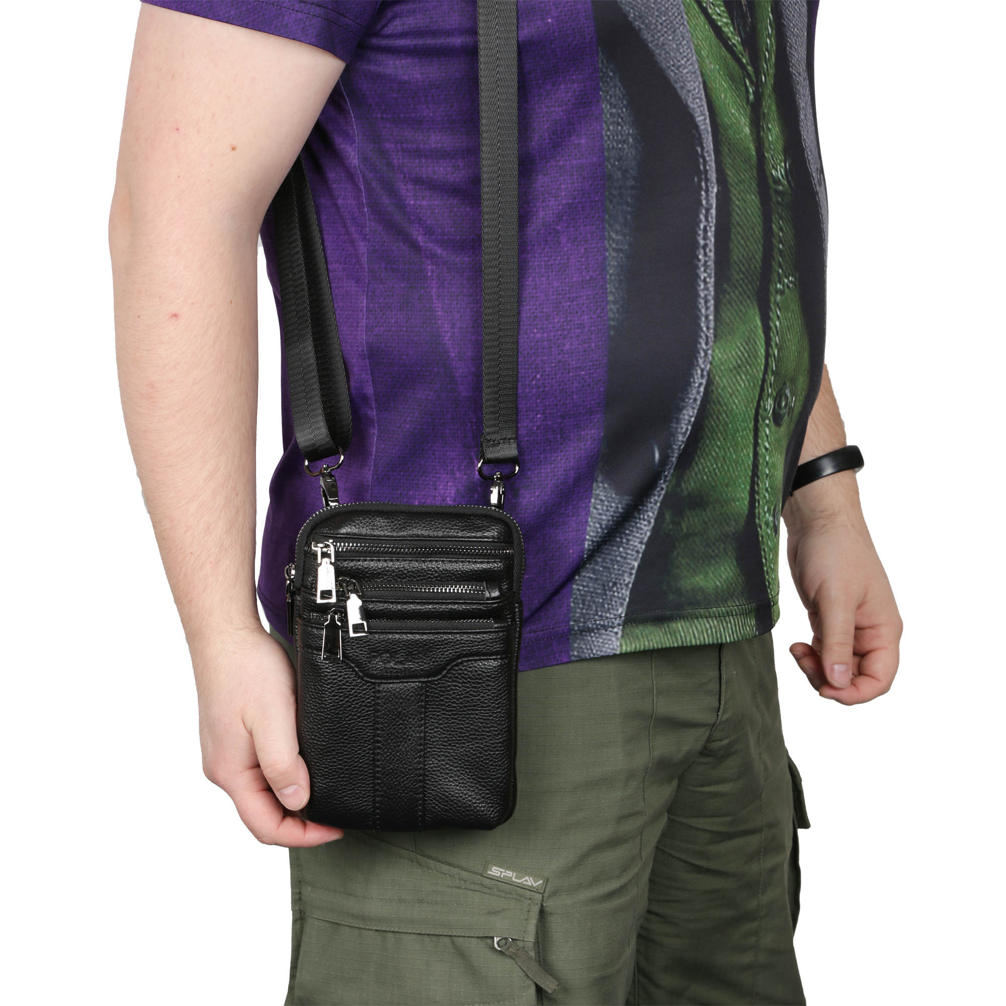 Удобная маленькая сумка для документов изготовлена из высокопрочной натуральной кожи. Сумку можно носить двумя способами: на поясном ремне с помощью поясной манжеты или на плечевом ремне. Ремень съемный, регулируемый по длине.