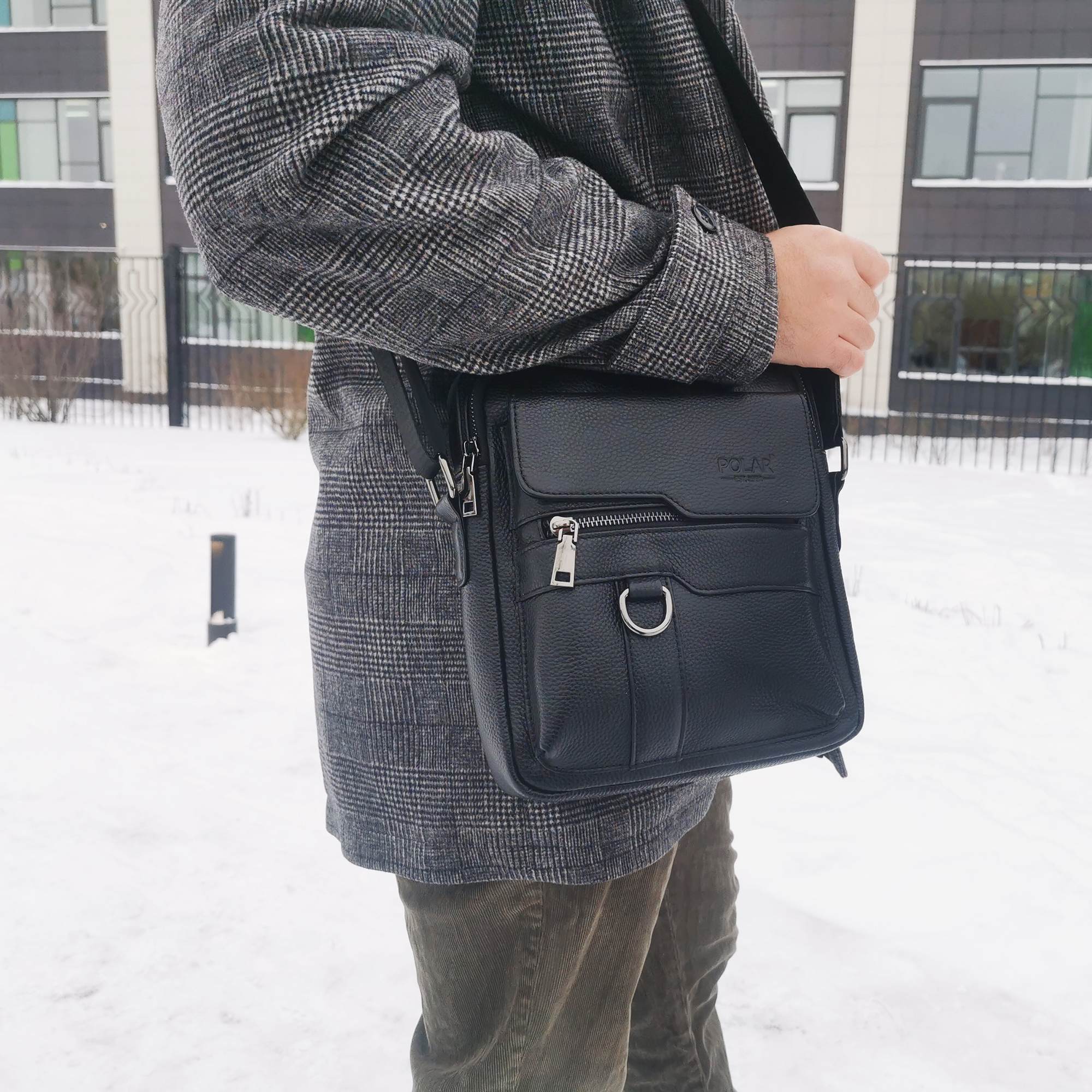 Мужская сумка для документов фирмы Polar изготовлена из натуральной кожи. Основное отделение закрывается на молнию. Внутри два отделения, один карман на молнии и небольшой отрытый кармашек. Снаружи карман закрывается клапан на прижимных магнитах и карман на молнии. С обратной стороны сумки, один карман на молнии. Есть регулируемый плечевой ремень, максимальная длина 145 см. Отлично подойдет для повседневного ношения.