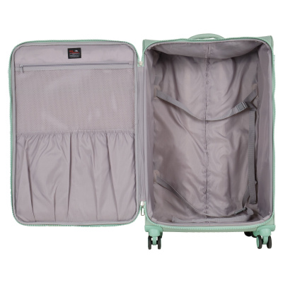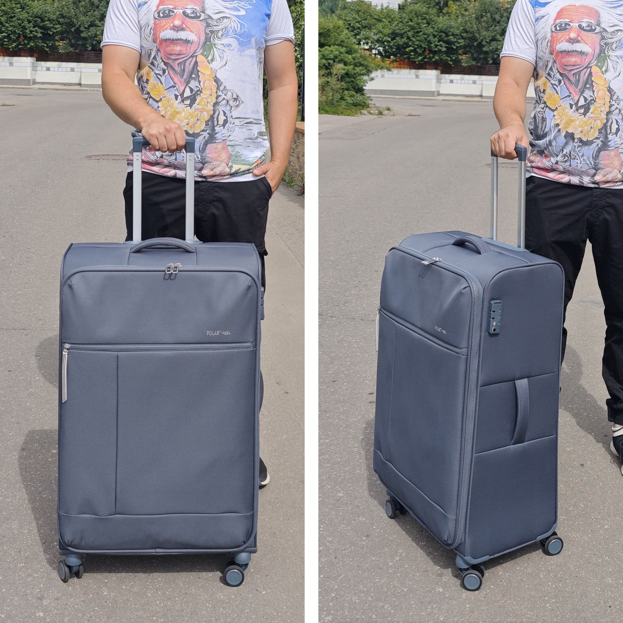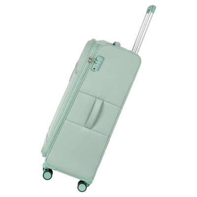 Новый облегченный чемодан фирмы Polar с отделкой колес, тележки , молнии в цвете. Чемодан закрывается по периметру на двухстороннюю широкую молнию. Сверху удобная ручка, есть боковая ручка. Бесшумные и прочные двойные вращающиеся колеса 360 градусов для легкого перемещения и хорошей балансировки. Встроенный кодовый замок TSA, снаружи на передней стенке вместительный карман на молнии. Выдвижная ручка, максимальная высота которой составляет 105 см.