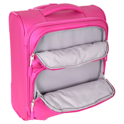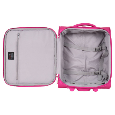 Чемодан фирмы POLAR, выполнен из плотного водоотталкивающего полиэстера, устойчивого к загрязнениям. Внутри- основное отделение с прижимными ремнями и карман на молнии.На лицевой стороне чемодана большой карман и карман для мелких вещей на молнии. Встроенный кодовый замок TSA, снаружи на передней стенке вместительный карман на молнии. Бесшумные, прорезиненные колеса диаметром 7 см. Удобно крепится на выдвижную ручку вашего чемодана,максимальная высота которой составляет 105 см