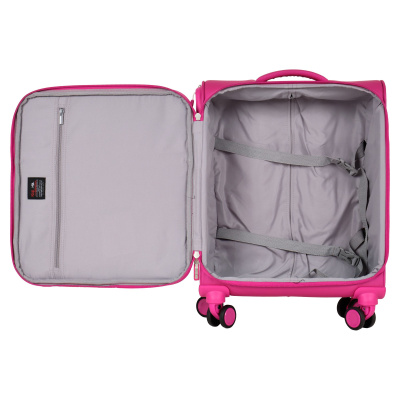 Чемодан фирмы POLAR, выполнен из плотного водоотталкивающего полиэстера, устойчивого к загрязнениям. Внутри- основное отделение с прижимными ремнями и карман на молнии.На лицевой стороне чемодана большой карман и карман для мелких вещей на молнии. Встроенный кодовый замок TSA, снаружи на передней стенке вместительный карман на молнии. Бесшумные и прочные четыре колеса вращаются на 360 градусов для легкого перемещения и хорошей балансировки. Удобно крепится на выдвижную ручку вашего чемодана, максимальная высота которой составляет 105 см.