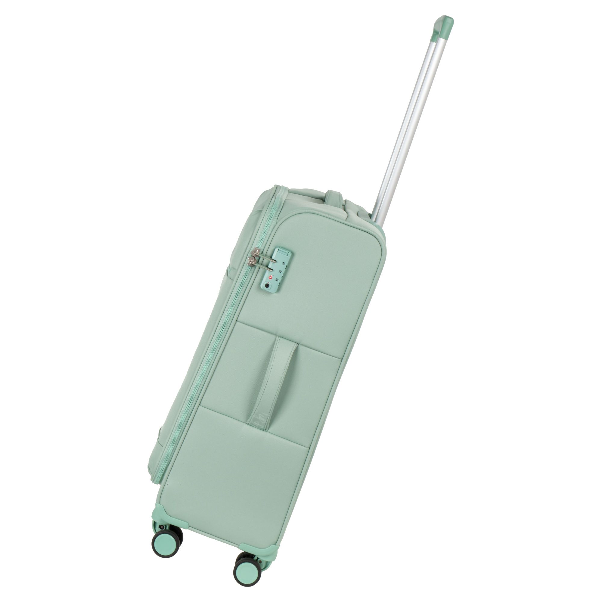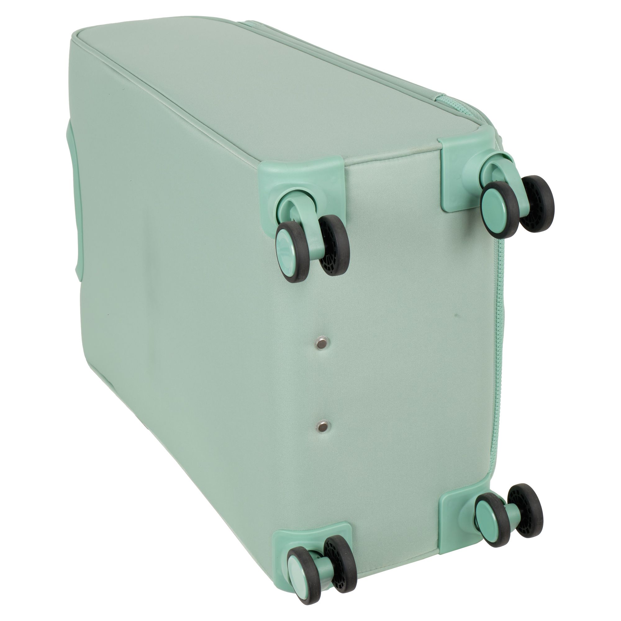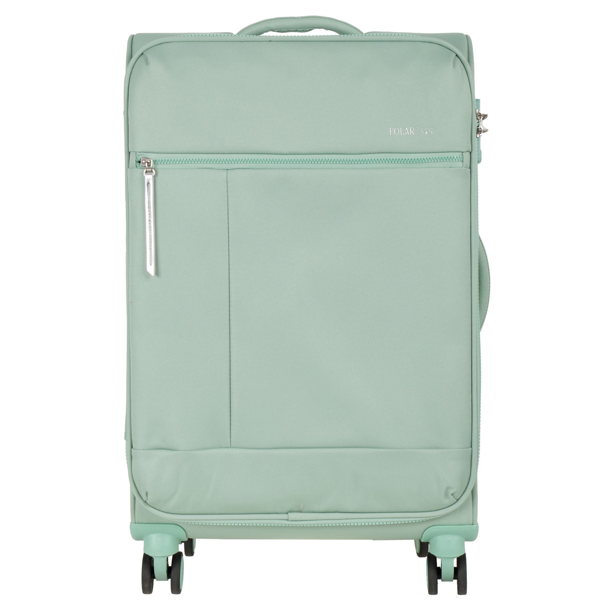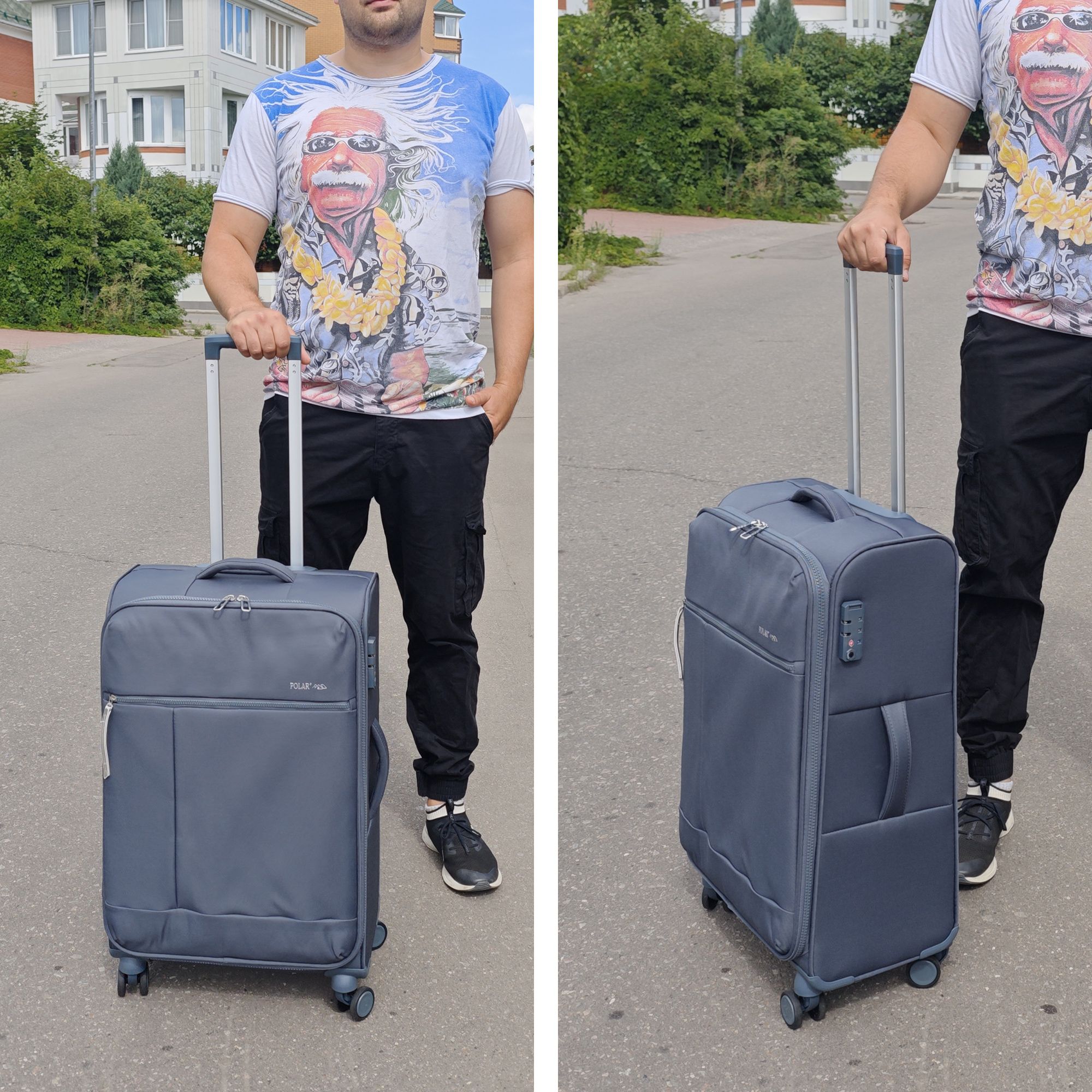 Новый облегченный чемодан фирмы Polar с отделкой колес, тележки , молнии в цвете. Чемодан закрывается по периметру на двухстороннюю широкую молнию. Сверху удобная ручка, есть боковая ручка. Бесшумные и прочные двойные вращающиеся колеса 360 градусов для легкого перемещения и хорошей балансировки. Встроенный кодовый замок TSA, снаружи на передней стенке вместительный карман на молнии. Выдвижная ручка, максимальная высота которой составляет 105 см.