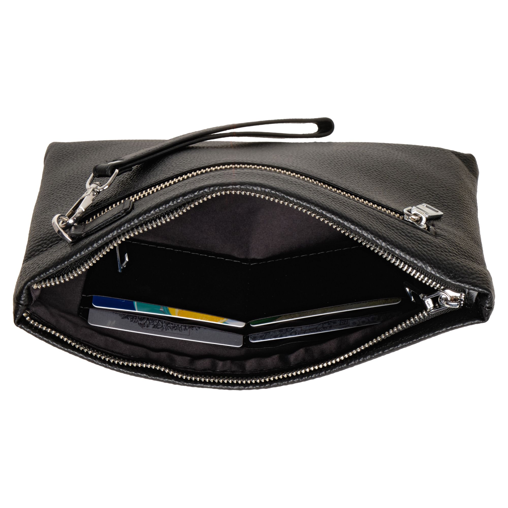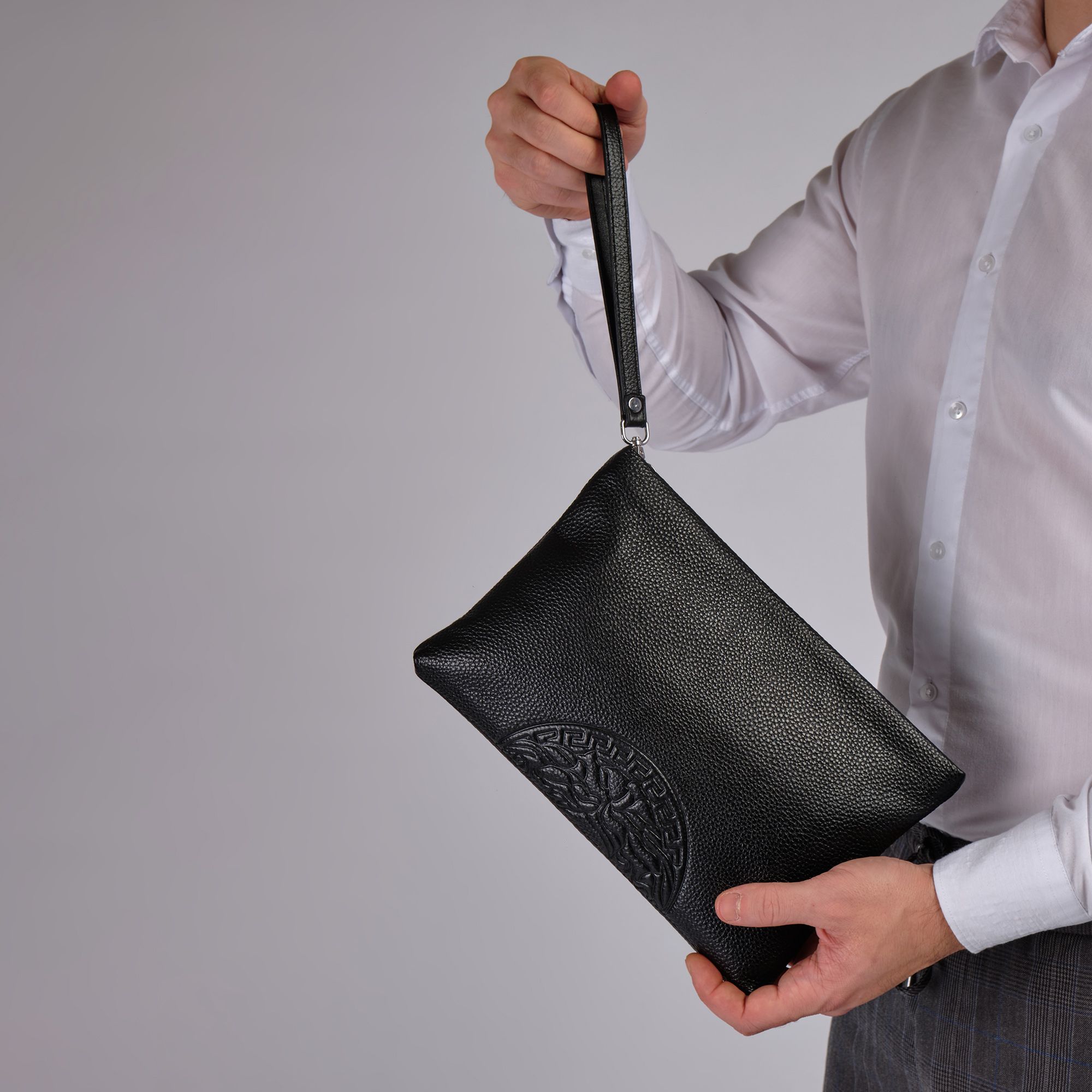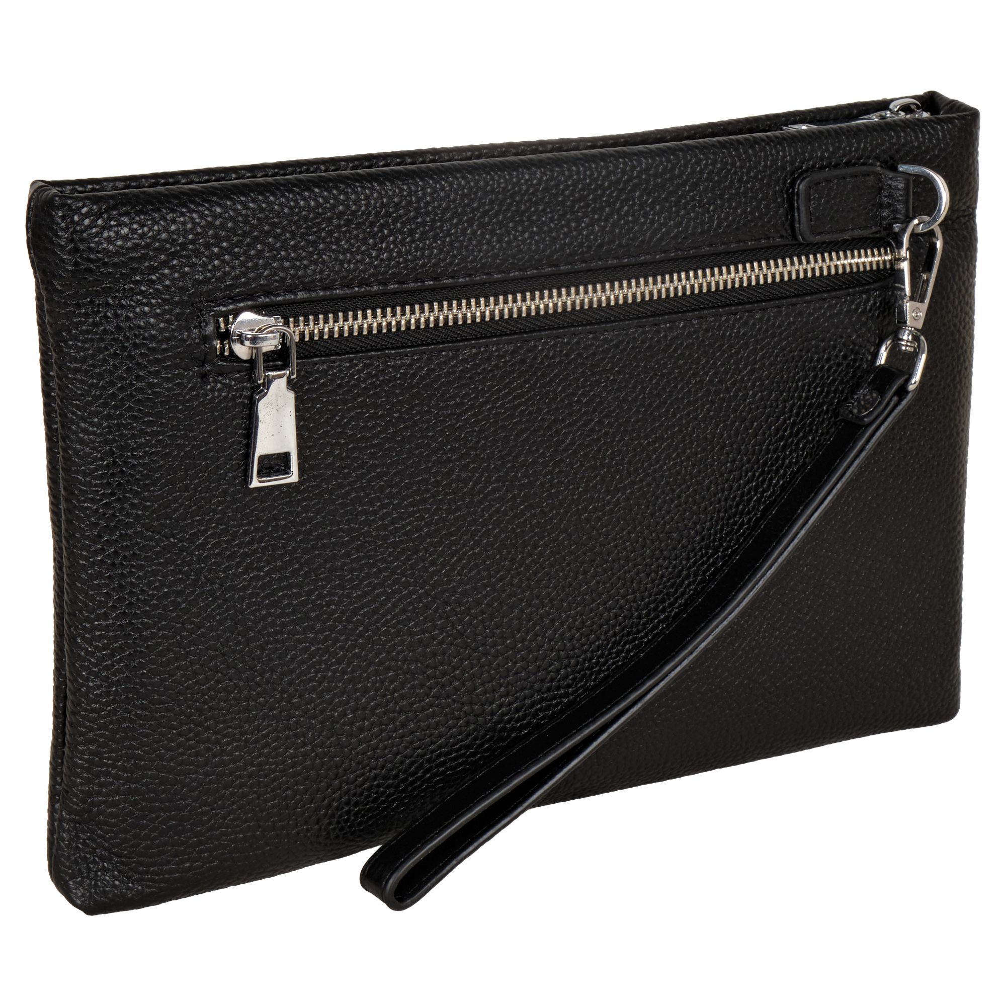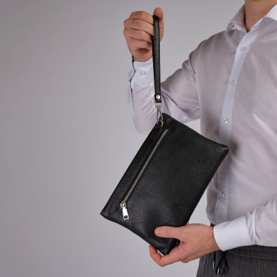 Мужской черный клатч Polar из высококачественной натуральной кожи. Барсетка – основное отделение, закрывается на металлическую молнию. Внутри один карман на молнии, и 6 отсеков для пластиковых карт, визиток, документов и телефона. Сзади сумки небольшой кармашек на молнии. Изготовлено и произведено в России. Данный кошелек - унисекс, с ремнем на руку. Подойдет как для женщин, так и для мужчин. Цвет фурнитуры-серебро.