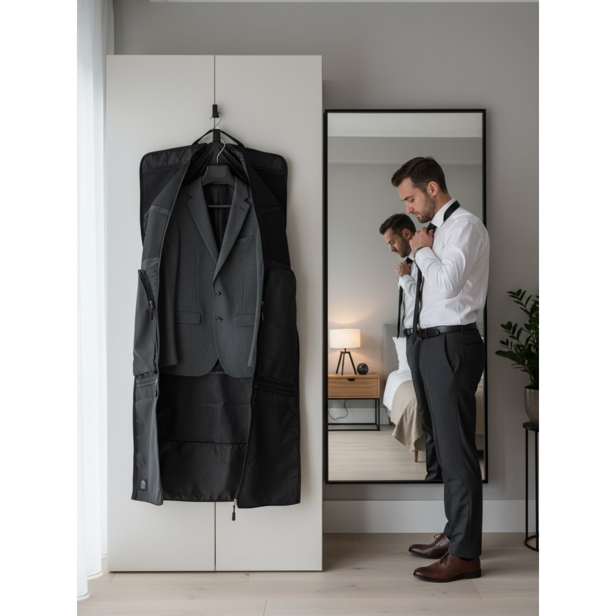 Портплед–чехол для одежды фирмы Polar изготовлен из легкого, прочного полиэстера . Для бережного хранения костюмов, платьев, рубашек или других вещей, которых надо уберечь от сминания. В верхней части чехла находится застежка фастекс, благодаря которому две половинки будут всегда вместе. Фастекс прочно закреплен окантовкой. Отверстие для вешалки находится в верхней части чехла. Внутри чехол застегивается на молнию. Множество карманов, чтобы разместить все необходимое в поездке. Максимальная длина чехла в разложенном виде 120 см. Ручка для переноски 9см.