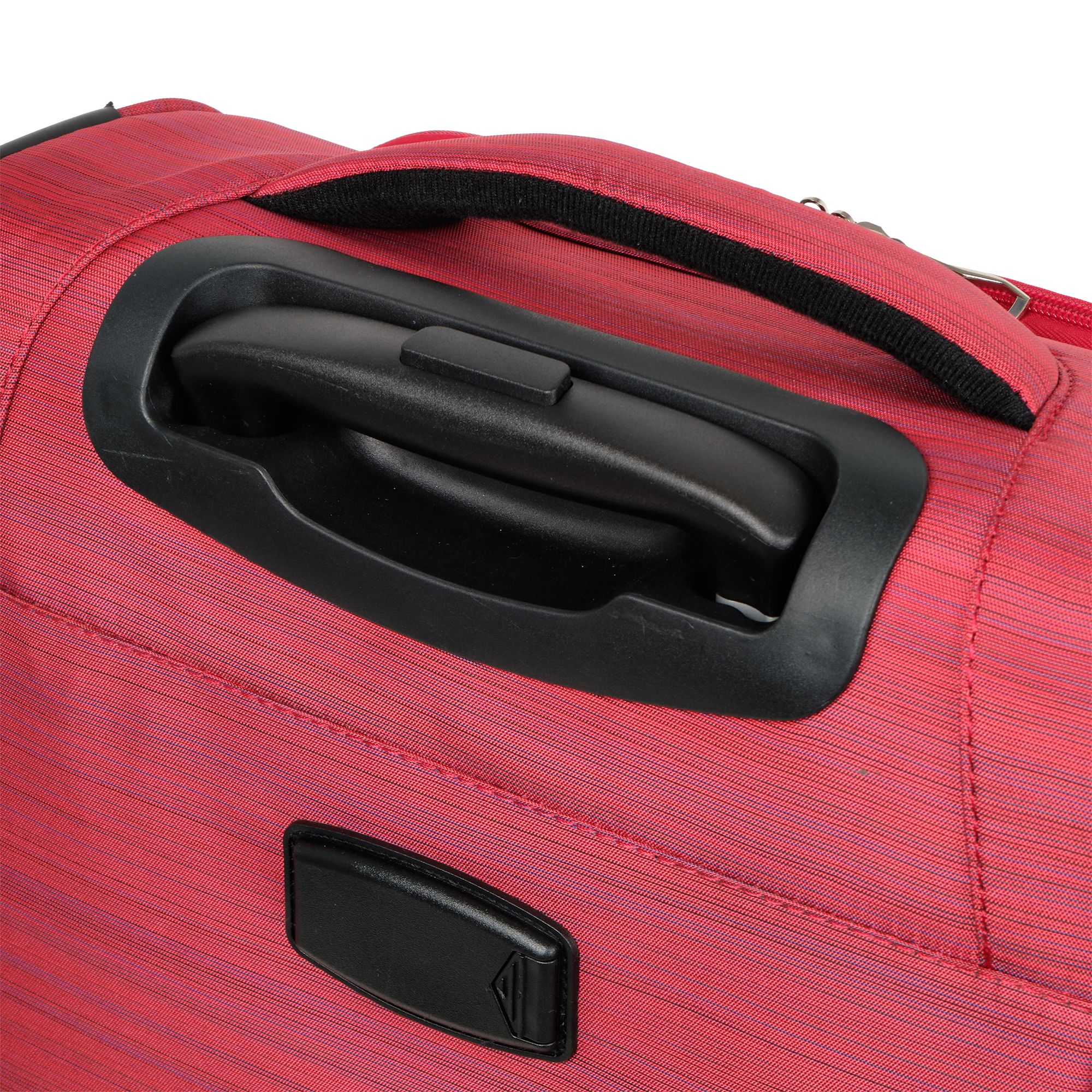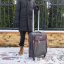 Стильный чемодан модной расцветки имеет в наличии две ручки для переноски сбоку и сверху чемодана, а также выдвижную ручку, максимальная высота которой составляет 50 см.