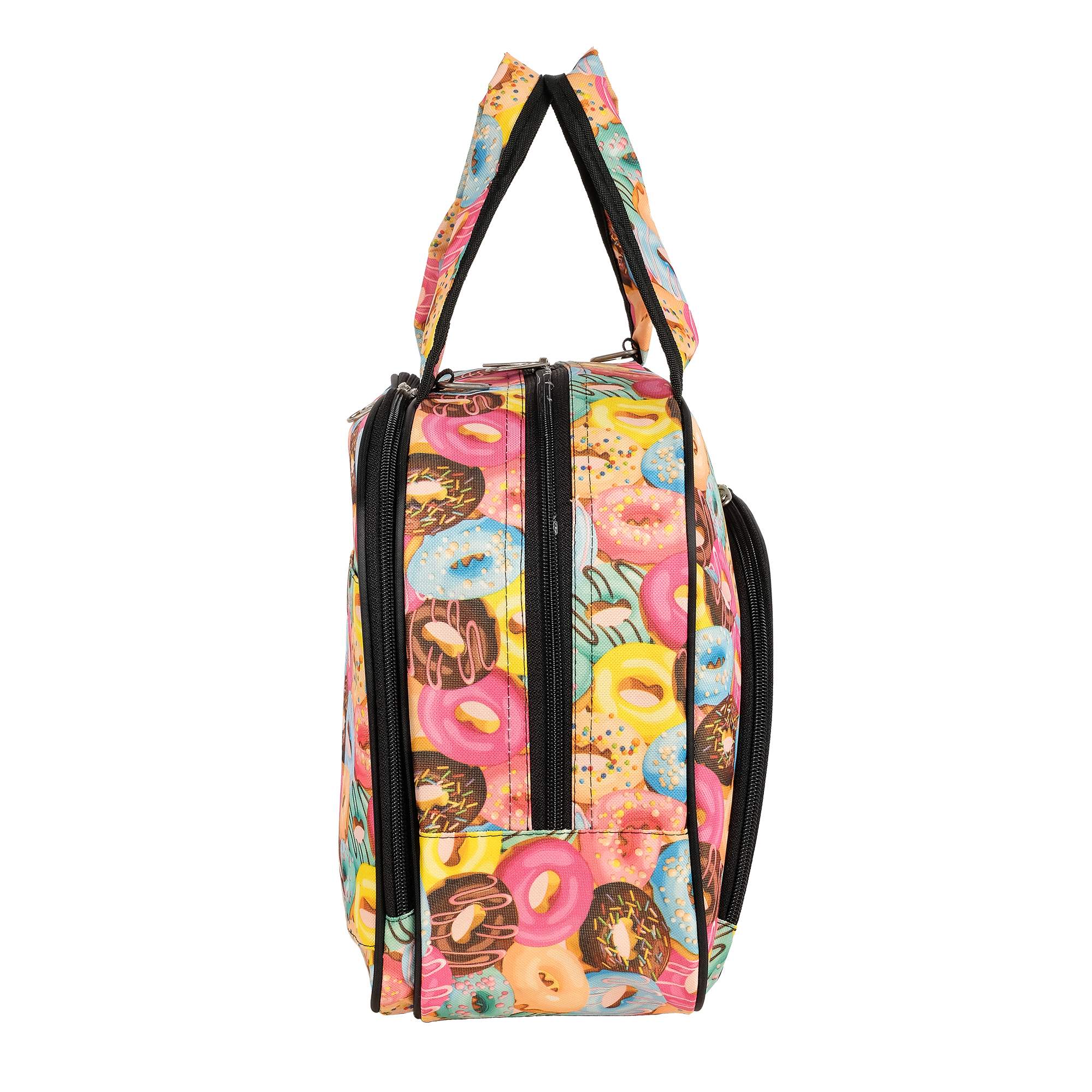Сумка выполнена из прочной ткани красивых расцветок. Модель отлично держит форму, ткань устойчива к загрязнениям и при необходимости легко чистится.