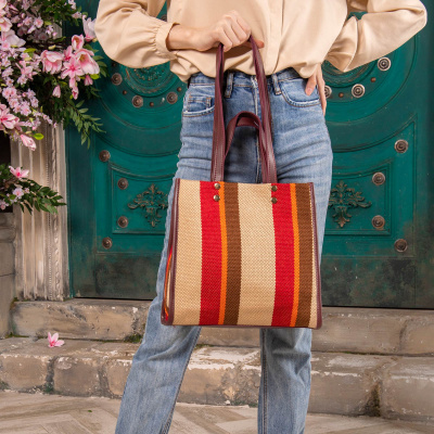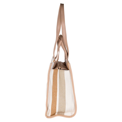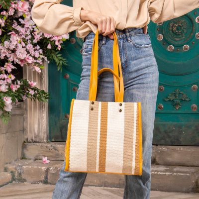 Современная оригинальная сумка фирмы Pola несомненно дополнит ваш образ. Выполнена из текстильного материала с вставками из искусственной кожи, внутри текстильная подкладка. Модель ярких цветов, жёсткой формы с широким дном, имеет четыре ручки для переноски. Высота ручек 18 см и 34 см. Сумка с одним отделением на молнии, внутри дополнительные кармашки один на молнии и один открытый. Цвет фурнитуры-золото.