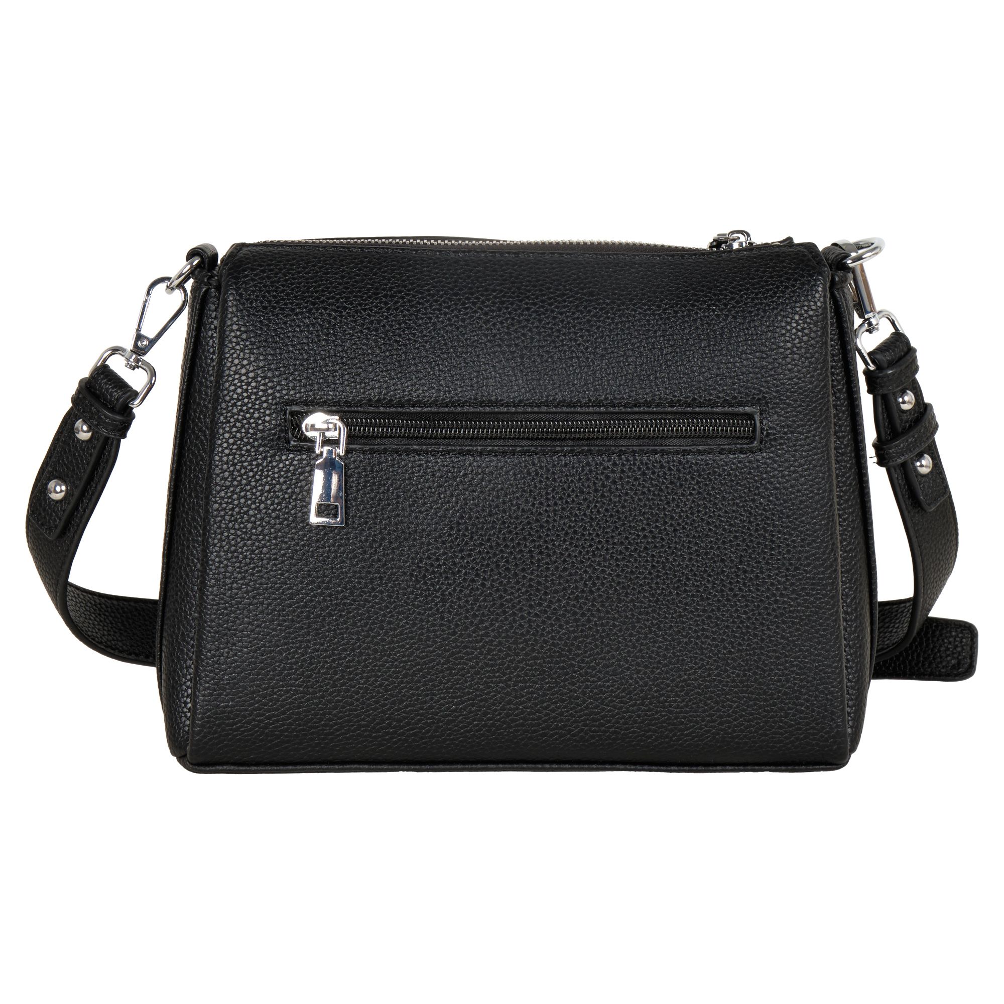 Стильная сумка бренда POLA выполнена из мягкой и приятной на ощупь экокожи. Прямоугольная форма смотрится элегантно, подчеркивает солидность образа и безупречный вкус обладательницы. Сумочка среднего размера, состоит из одного отделения посередине и двух отделений по бокам. В основном отделении два кармашка, один на молнии, для удобного хранения мелочей и один без молнии. Практичная молния сверху защищает содержимое от влаги. Удобный регулируемый ремень (115 см). Форма квадрата добавляют изделию оригинальности и утонченности. На задней части сумки есть карман на молнии. Цвет фурнитуры-серебро.