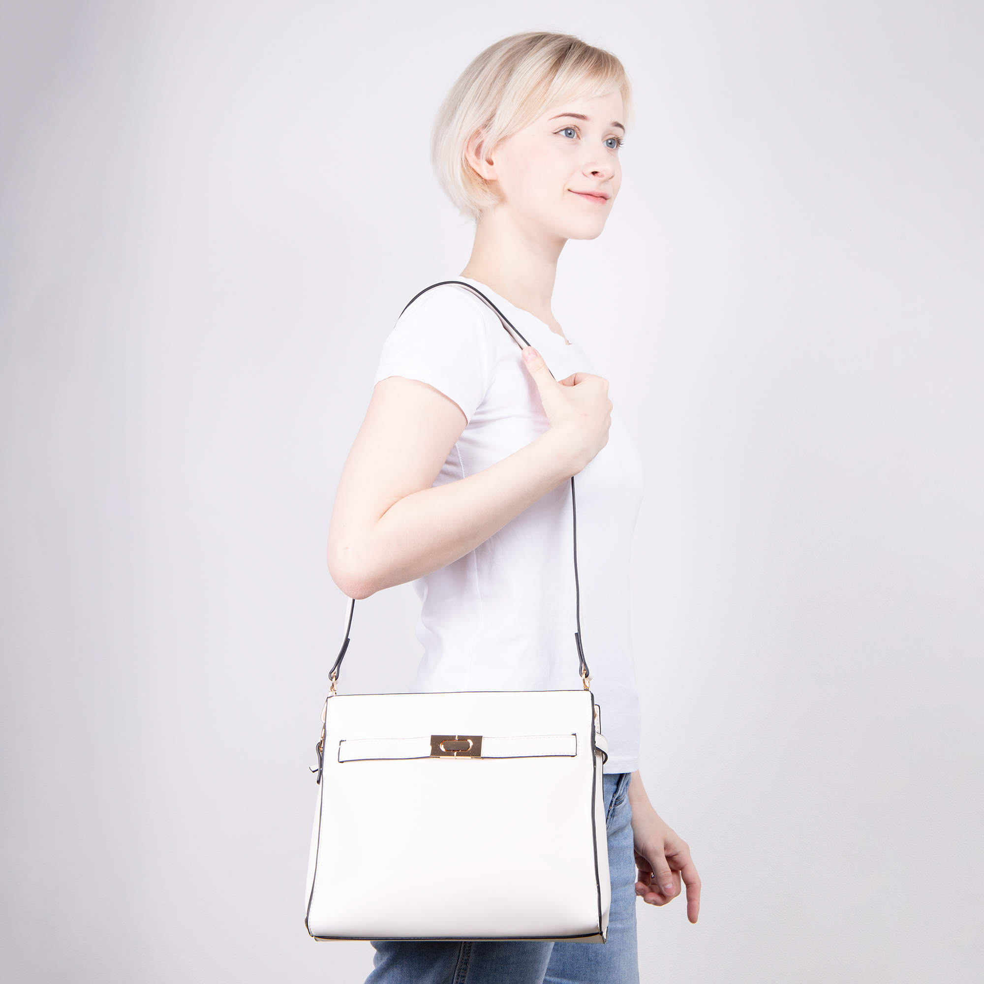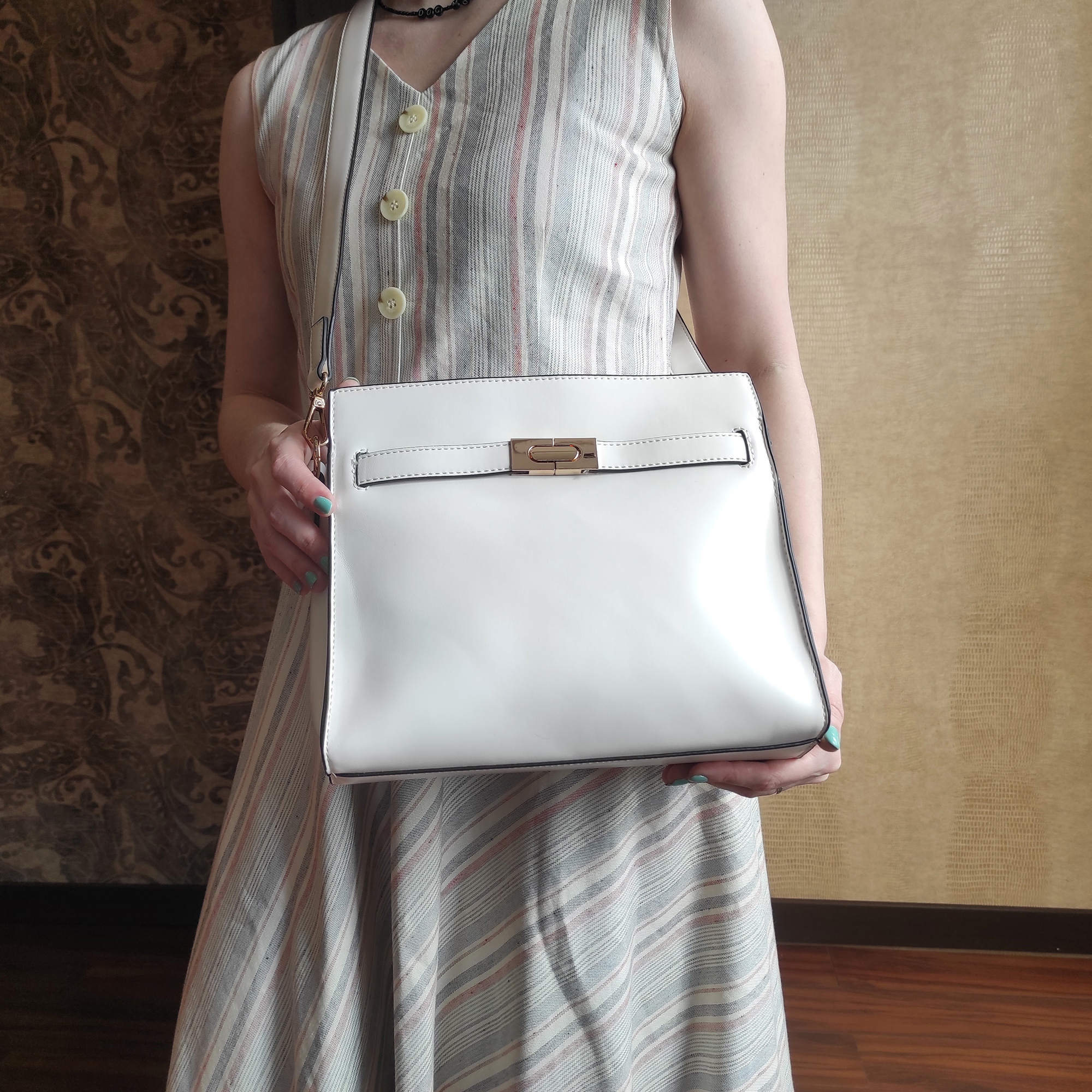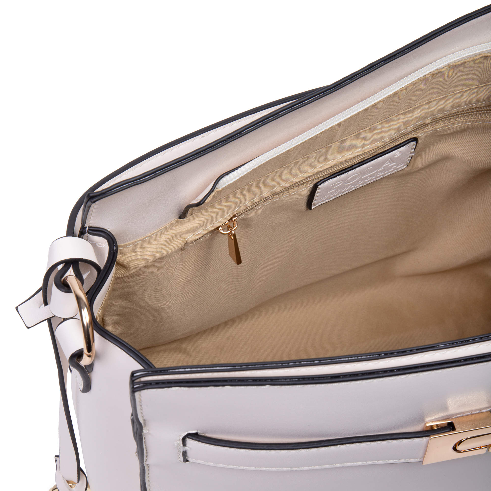 Стильная классическая сумка фирмы Pola выполнена из экокожи. Спереди есть карман закрывается на металлический замок. Основное отделение закрывается на молнию, внутри есть один карман на молнии и один открытый кармашек. Сумка прекрасно подойдёт женщинам, которые предпочитают деловой стиль. У сумки есть ручка для переноски, высота которой 13 см и съёмный, нерегулируемый плечевой ремень, максимальная длина которого 96 см. Цвет фурнитуры-золото.