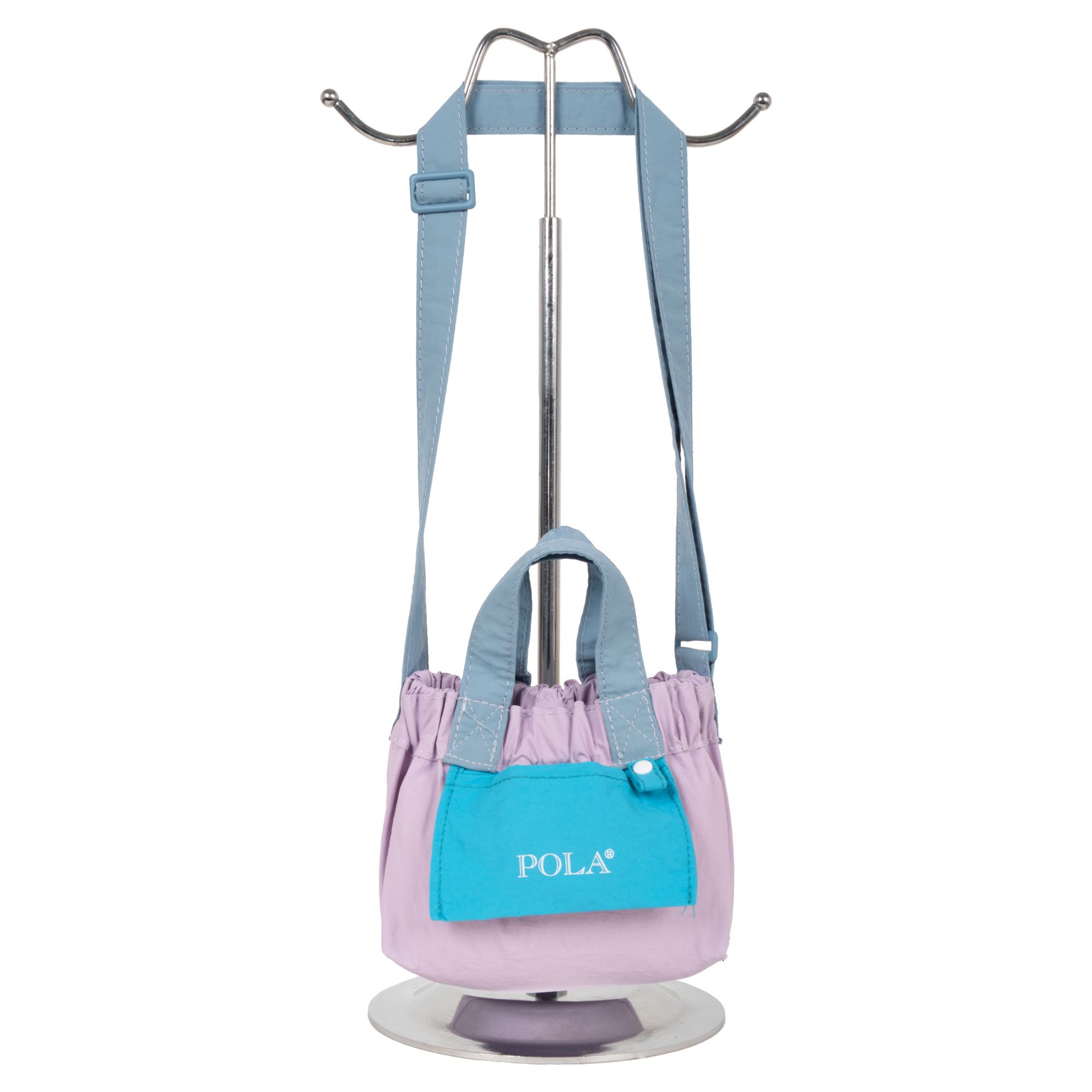 Сумка-шоппер фирмы POLA выполнена из текстиля. Основное отделение закрывается на металлическую кнопку. Внутри одно отделение. Спереди маленький карман для мелочей. Длина ручек 14 см. Сумку можно носить на плече за счет регулируемого ремня максимальная длина 97 см.