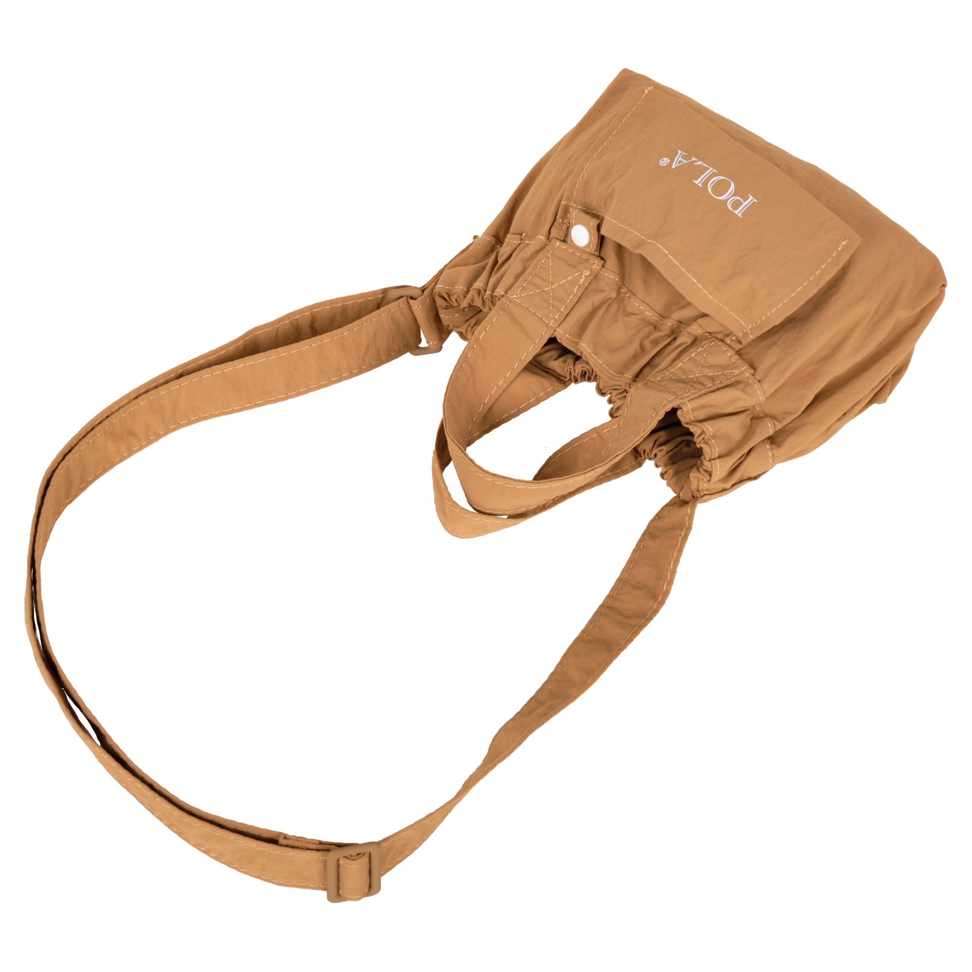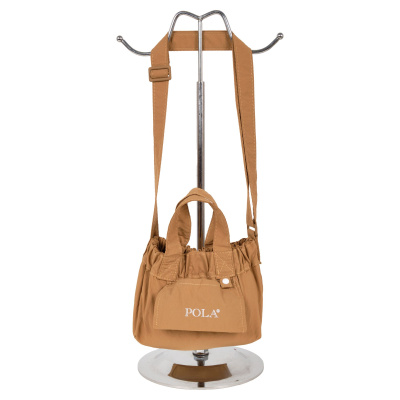Сумка-шоппер фирмы POLA выполнена из текстиля. Основное отделение закрывается на металлическую кнопку. Внутри одно отделение. Спереди маленький карман для мелочей. Длина ручек 14 см. Сумку можно носить на плече за счет регулируемого ремня максимальная длина 97 см.