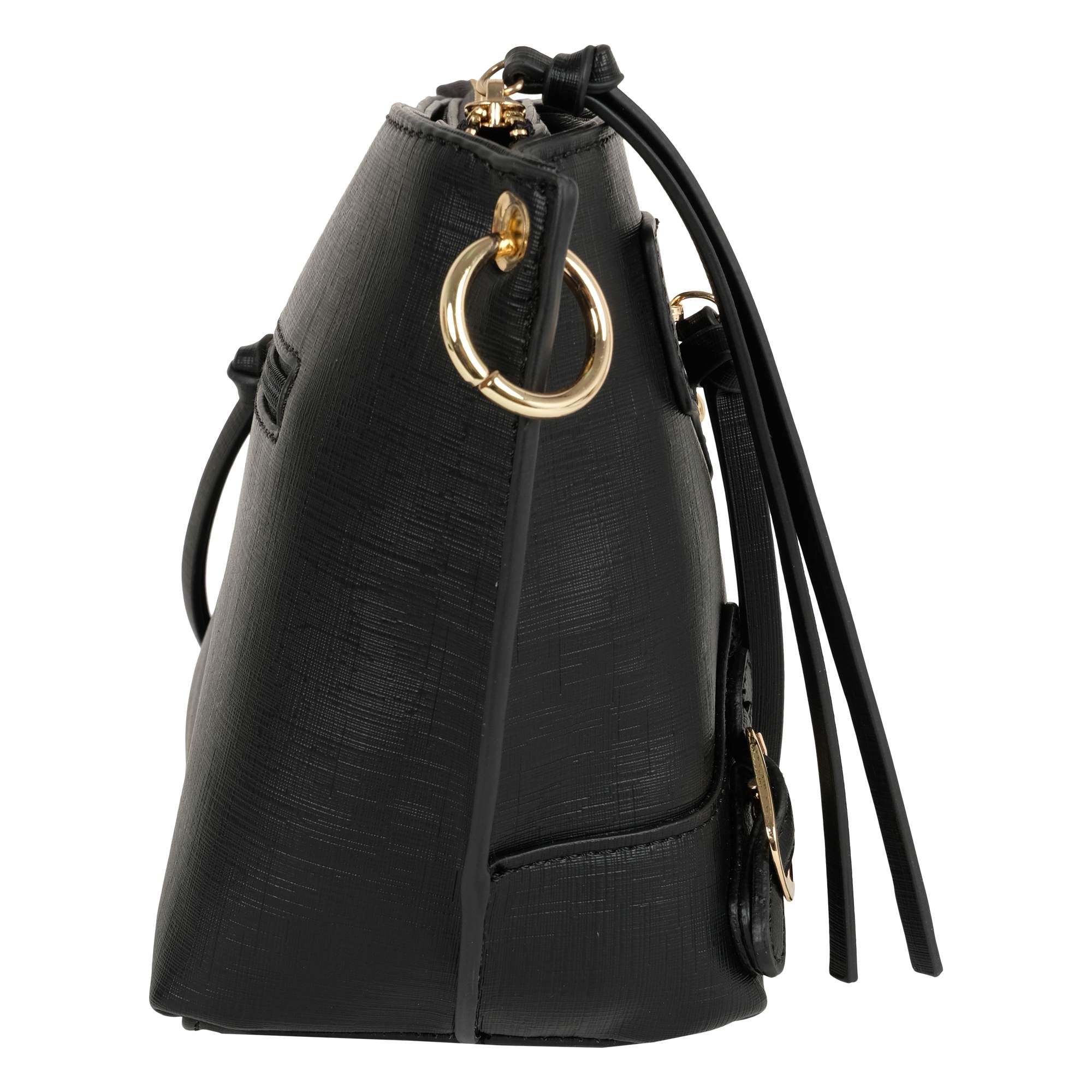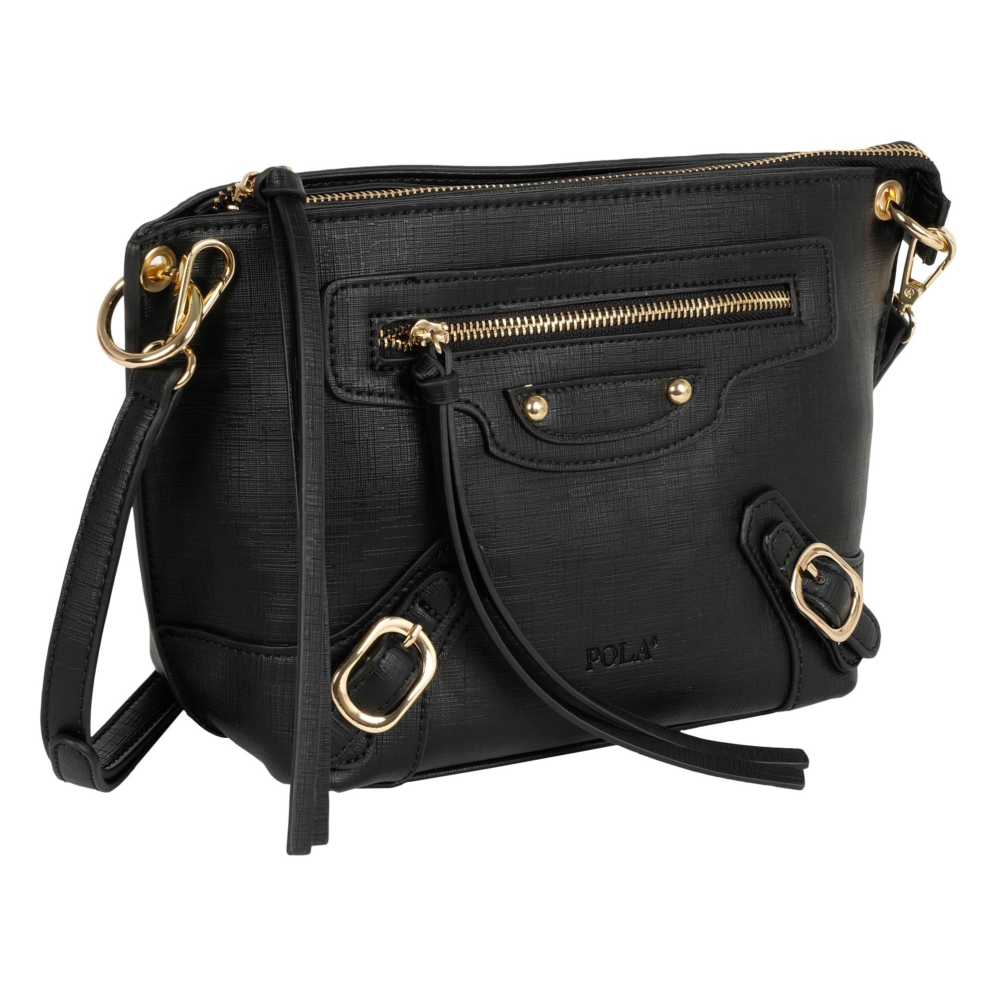 Женская сумка кросс-боди Pola выполнена из экокожи и прекрасно подходит для повседневного использования. Основное отделение закрывается на металлическую молнию. Внутри основного отделения есть два открытых кармана и карман на молнии. Сзади сумки также имеется карман на молнии. Спереди модель украшена короткими ремешками с пряжками заклепками, есть накладной карман на молнии для мелочей. У модели есть съёмный регулируемый ремень, длина которого составляет 137 см. Цвет фурнитуры-золото.