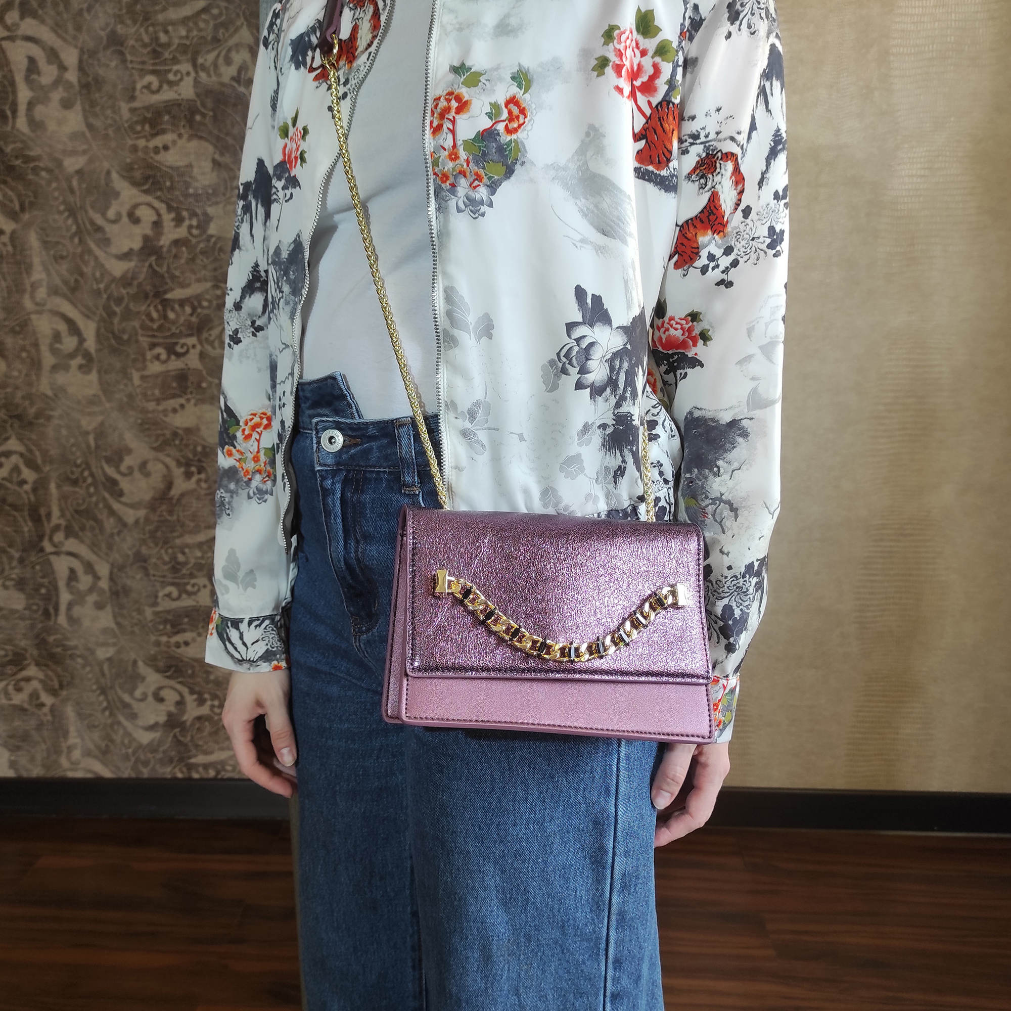 Модная, изысканная сумка фирмы Pola выполнена из экокожи и великолепно подходит стильным женщинам со вкусом. Изюминкой данной модели является наличие металлической цепочкой. Основное отделение закрывается магнитным клапаном. Внутри карман на молнии и открытый кармашек. Сзади сумки открытый карман. Ремень-цепочка, максимальная высота 54 см. Цвет фурнитуры-золото.