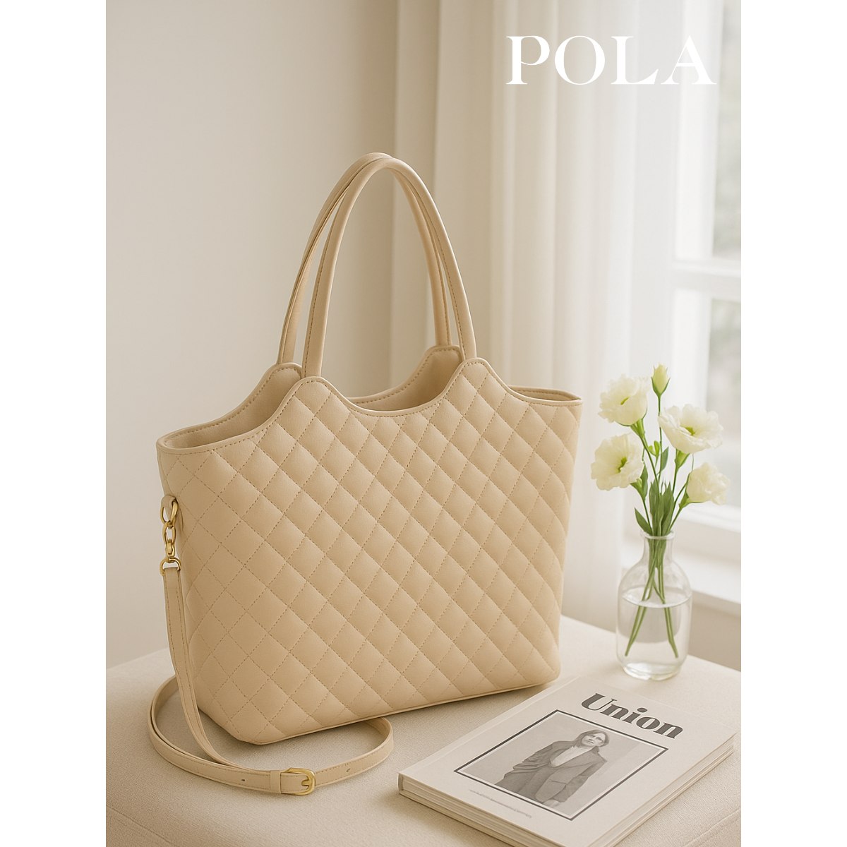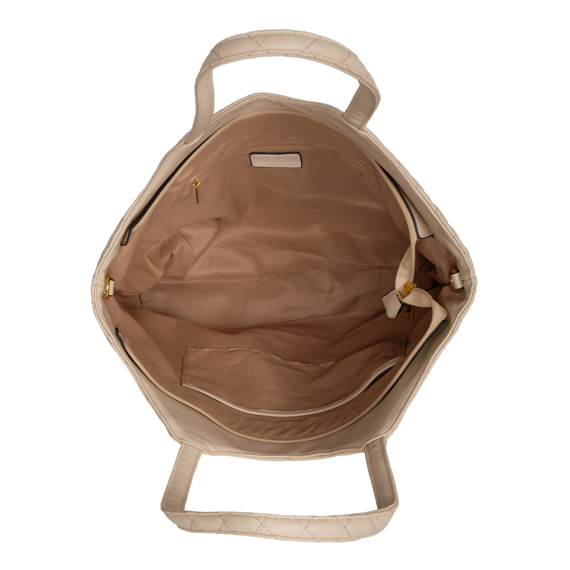 Вместительная стеганая женская сумка Pola выполнена из экокожи. Данная модель продолжает удерживать лидирующие позиции среди трендов! Данную модель можно классифицировать как-сумка тоут, сумка шоппер, сумка хобо. Основное отделение закрывается на молнию. Внутри два кармана на молнии и открытый кармашек. Вмещает формат А4. Сумку можно переносить с помощью двух ручек, высота которых составляет 26 см, а также на плече с помощью съёмного регулируемого ремня, длина которого составляет 134 см. Цвет фурнитуры-золото.